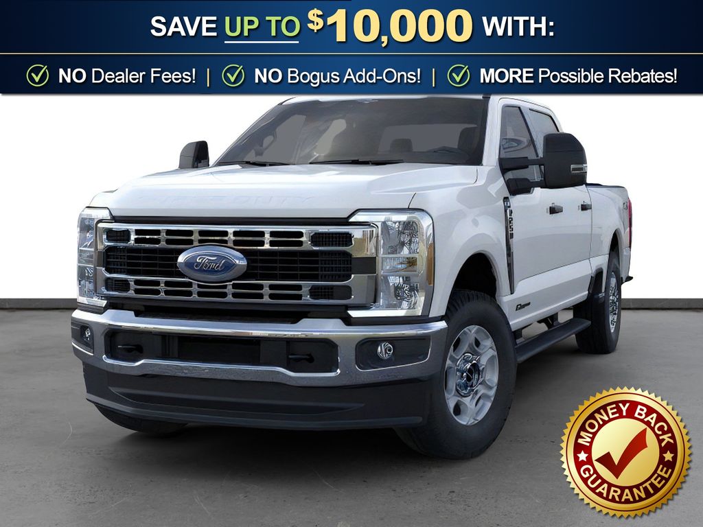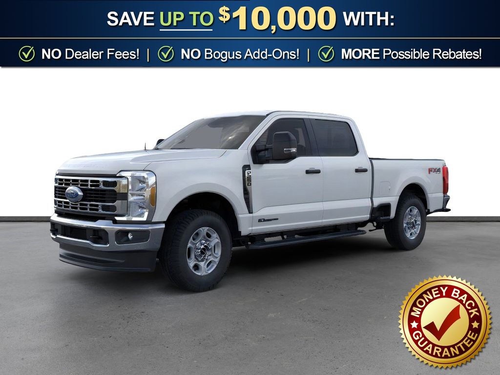 Oxford White 2026 Ford F-250SD XLT NFT 4WD 10-Speed Automatic Power Stroke 6.7L V8 DI 32V OHV Turbodiesel 4WD, 4-Wheel Disc Brakes, 6 Speakers, ABS brakes, Air Conditioning, Alloy wheels, AM/FM radio, Auto High-beam Headlights, Brake assist, Bumpers: chrome, Cloth 40/20/40 Split Bench Seat, Compass, Delay-off headlights, Driver door bin, Driver vanity mirror, Dual AGM 68 AH Battery, Dual front impact airbags, Dual front side impact airbags, Electronic Stability Control, Emergency communication system: SYNC 4 911 Assist, Exterior Parking Camera Rear, Fixed Rear Window with Privacy Glass and Defrost, Front anti-roll bar, Front Center Armrest w/Storage, Front fog lights, Front reading lights, Fully automatic headlights, FX4 Off-Road Package, GVWR: 10,000 Lb Payload Package, Heated door mirrors, Hill Descent Control, Illuminated entry, Internet access capable: 5G Modem - Ford Connectivity Package, Low tire pressure warning, Off-Road Specifically Tuned Shock Absorbers, Outside temperature display, Overhead airbag, Overhead console, Panic alarm, Passenger door bin, Passenger vanity mirror, Platform Running Boards, Power door mirrors, Power driver seat, Power steering, Power windows, Privacy Glass, Radio: AM/FM Stereo with MP3 Player, Rear reading lights, Rear step bumper, Remote keyless entry, Security system, Speed control, Split folding rear seat, Steering wheel mounted audio controls, SYNC 4, Tachometer, Telescoping steering wheel, Tilt steering wheel, Traction control, Trip computer, Turn signal indicator mirrors, Unique FX4 Off-Road Box Decal, Upfitter Switches (6), Variably intermittent wipers, Wheels: 18" Sparkle Silver Painted Cast Aluminum, 4WD.