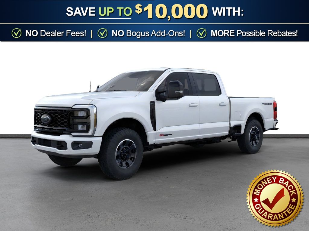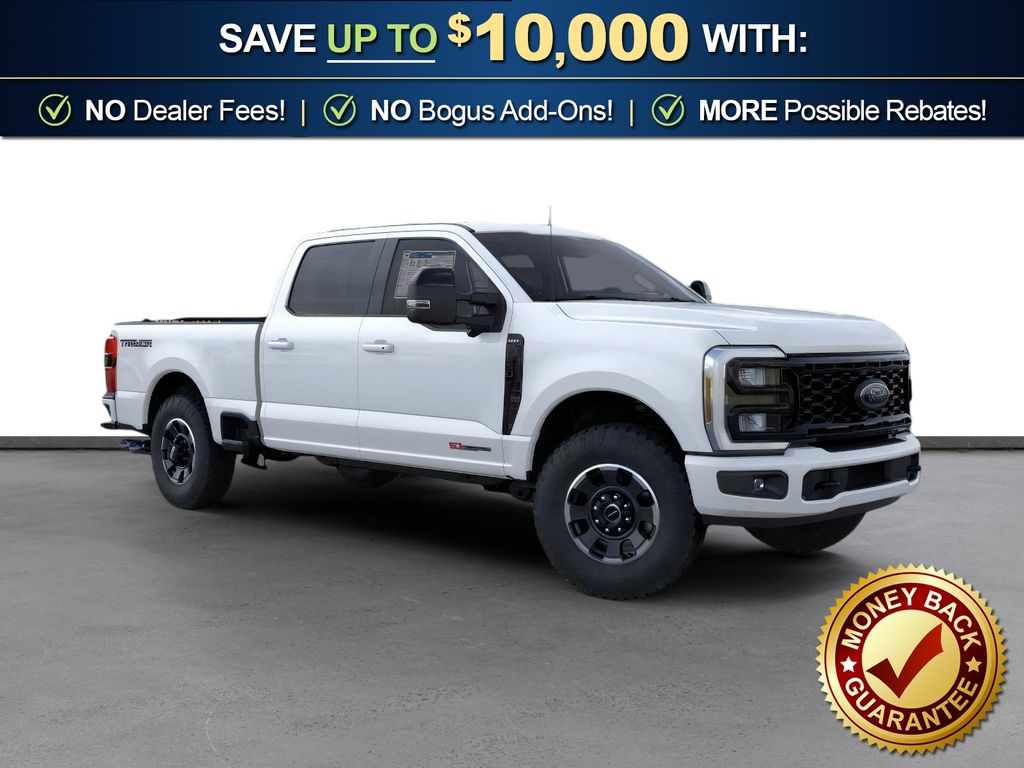 Star White Metallic Tri-Coat 2026 Ford F-250SD Lariat NFT 4WD 10-Speed Automatic 6.7L High Output Power Stroke V8 Diesel 4WD, 4-Way Adjustable Headrests, 4-Wheel Disc Brakes, 410 Amp Dual Alternators, 6" Ebony Black Angular Running Boards, 8 Speakers, ABS brakes, Adaptive Cruise Control with Stop-and-Go, Adjustable pedals, Air Conditioning, Alloy wheels, AM/FM radio: SiriusXM with 360L, Auto High-beam Headlights, Auto-dimming Rear-View mirror, Automatic High Beam, Automatic temperature control, Black Appearance Package, Black Painted Front Grille Surround, BLIS with Cross-Traffic Alert, Body Color Front and Rear Bumpers, Brake assist, Bumpers: chrome, Compass, Delay-off headlights, Driver door bin, Driver vanity mirror, Dual AGM 68 AH Battery, Dual front impact airbags, Dual front side impact airbags, Ebony Black Painted Mirror Caps, Electronic Stability Control, Emergency communication system: SYNC 4 911 Assist, Engine Block Heater, Flow-Through Console, Ford Connectivity Package (1-Year Included), Front ActiveX Trimmed 40/Console/40 Seats, Front and Rear Parking Sensors, Front anti-roll bar, Front Bucket Seats, Front Center Armrest, Front dual zone A/C, Front fog lights, Front reading lights, Fully automatic headlights, Garage door transmitter, GVWR: F-250 >10K Package, Head-Up Display, Heated door mirrors, Heated front seats, Heated rear seats, Heated steering wheel, High Capacity 11.6" Axle Upgrade Package, Illuminated entry, Internet access capable: 5G Modem - Ford Connectivity Package, Lane-Keeping System, Lariat Premium Package, Lariat Ultimate Package, Low tire pressure warning, Memory seat, Navigation system: Connected Navigation, Outside temperature display, Overhead airbag, Overhead console, Panic alarm, Passenger door bin, Passenger vanity mirror, Pedal memory, Post-Collision Braking, Power door mirrors, Power driver seat, Power passenger seat, Power steering, Power windows, Power-Deployable Running Boards, Power-Sliding Rear-Window with Defrost, Pre-Collision Assist, Privacy Glass, Pro Trailer Backup Assist, Pro Trailer Hitch Assist, Radio: B&O Sound System by Bang and Olufsen, Radio: B&O Unleashed Sound System by Bang & Olufsen, Rain sensing wipers, Rapid-Heat Supplemental Cab Heater, Rear Parking Sensors, Rear reading lights, Rear seat center armrest, Rear step bumper, Rear window defroster, Remote keyless entry, Security system, SiriusXM with 360L, Speed control, Split folding rear seat, Steering wheel mounted audio controls, SYNC 4 with Enhanced Voice Recognition, Tachometer, Tailgate Step and Handle, Telescoping steering wheel, Tilt steering wheel, Traction control, Trip computer, Turn signal indicator mirrors, Twin Panel Power Moonroof, Upfitter Switches (6), Variably intermittent wipers, Ventilated front seats, Wheels: 18" Bright Machined and Carbonized Gray Aluminum, 4WD.