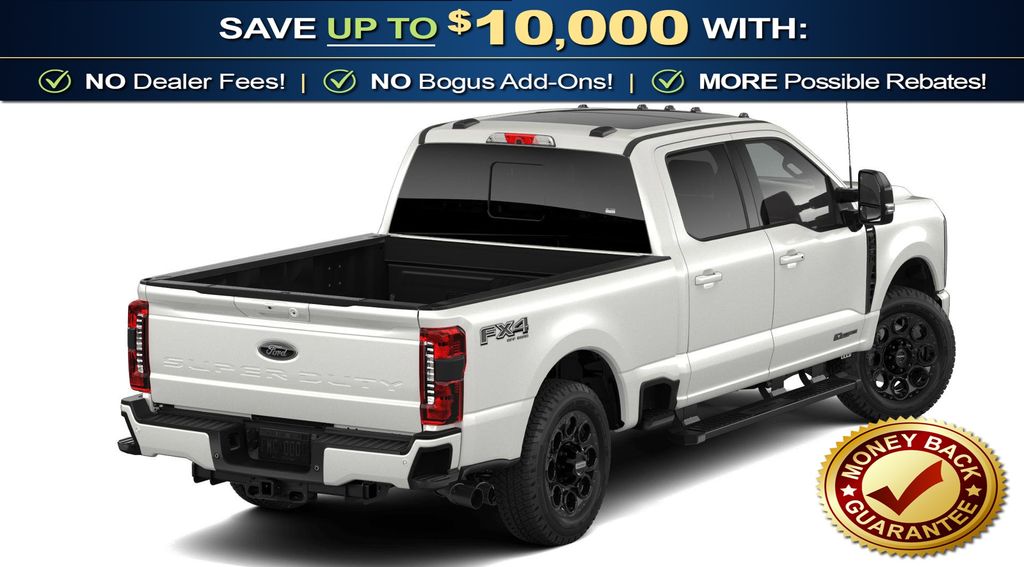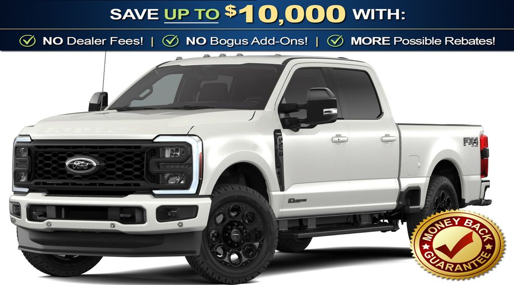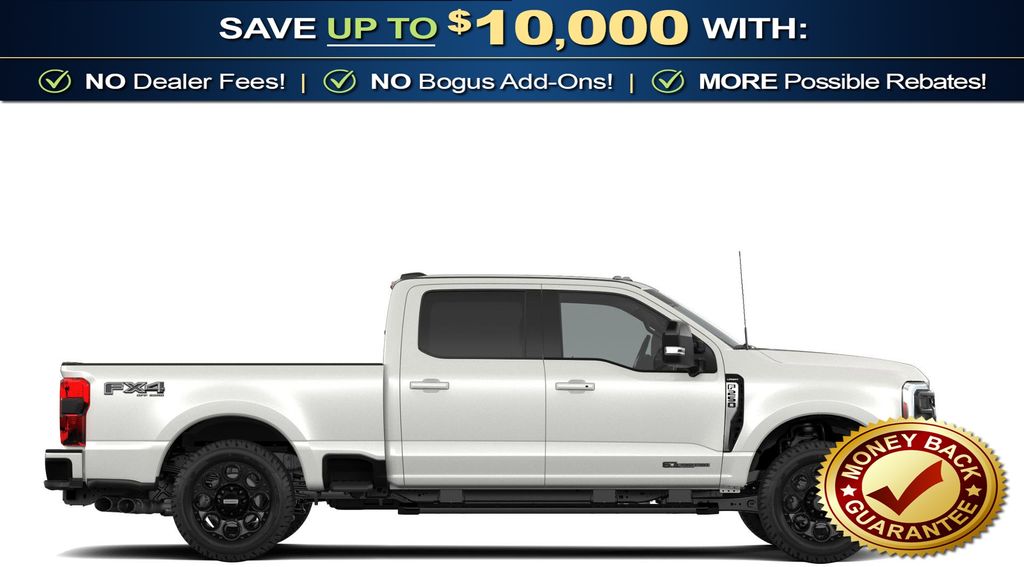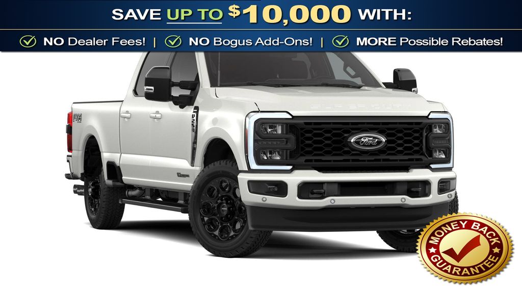 Star White Metallic Tri-Coat 2026 Ford F-250SD Lariat NFT 4WD 10-Speed Automatic Power Stroke 6.7L V8 DI 32V OHV Turbodiesel 4WD, 4-Way Adjustable Headrests, 4-Wheel Disc Brakes, 410 Amp Dual Alternators, 5th Wheel/Gooseneck Hitch Prep Package, 6" Ebony Black Angular Running Boards, 8 Speakers, ABS brakes, Adaptive Cruise Control with Stop-and-Go, Adjustable pedals, Air Conditioning, Alloy wheels, AM/FM radio: SiriusXM with 360L, Auto High-beam Headlights, Auto-dimming Rear-View mirror, Automatic High Beam, Automatic temperature control, Black Appearance Package, Black Painted Front Grille Surround, BLIS with Cross-Traffic Alert, Body Color Front and Rear Bumpers, Brake assist, Bumpers: chrome, Compass, Delay-off headlights, Driver door bin, Driver vanity mirror, Dual AGM 68 AH Battery, Dual front impact airbags, Dual front side impact airbags, Ebony Black Painted Mirror Caps, Electronic Stability Control, Emergency communication system: SYNC 4 911 Assist, Engine Block Heater, Flow-Through Console, Ford Connectivity Package (1-Year Included), Front ActiveX Trimmed 40/Console/40 Seats, Front and Rear Parking Sensors, Front anti-roll bar, Front Bucket Seats, Front Center Armrest, Front dual zone A/C, Front fog lights, Front reading lights, Fully automatic headlights, FX4 Off-Road Package, Garage door transmitter, GVWR: F-250 >10K Package, Head-Up Display, Heated door mirrors, Heated front seats, Heated rear seats, Heated steering wheel, High Capacity 11.6" Axle Upgrade Package, Hill Descent Control, Illuminated entry, Internet access capable: 5G Modem - Ford Connectivity Package, Lane-Keeping System, Lariat Premium Package, Lariat Ultimate Package, LED Roof Clearance Lights, Low tire pressure warning, Memory seat, Navigation system: Connected Navigation, Off-Road Specifically Tuned Shock Absorbers, Outside temperature display, Overhead airbag, Overhead console, Panic alarm, Passenger door bin, Passenger vanity mirror, Pedal memory, Post-Collision Braking, Power door mirrors, Power driver seat, Power passenger seat, Power steering, Power windows, Power-Deployable Running Boards, Power-Sliding Rear-Window with Defrost, Pre-Collision Assist, Privacy Glass, Pro Trailer Backup Assist, Pro Trailer Hitch Assist, Radio: B&O Sound System by Bang and Olufsen, Radio: B&O Unleashed Sound System by Bang & Olufsen, Rain sensing wipers, Rapid-Heat Supplemental Cab Heater, Rear Parking Sensors, Rear reading lights, Rear seat center armrest, Rear step bumper, Rear window defroster, Remote keyless entry, Security system, SiriusXM with 360L, Speed control, Split folding rear seat, Steering wheel mounted audio controls, SYNC 4 with Enhanced Voice Recognition, Tachometer, Tailgate Step and Handle, Telescoping steering wheel, Tilt steering wheel, Traction control, Trip computer, Turn signal indicator mirrors, Twin Panel Power Moonroof, Unique FX4 Off-Road Box Decal, Upfitter Switches (6), Variably intermittent wipers, Ventilated front seats, Wheels: 18" Bright Machined and Carbonized Gray Aluminum, 4WD.