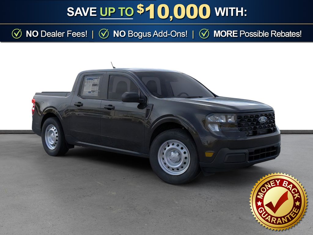 Shadow Black 2026 Ford Maverick XL NFT FWD CVT 2.5L I-4 Hybrid 2.5L I-4 Hybrid, 2.91 Axle Ratio, 2K Trailer Hitch Receiver with 4-Pin Connector, 4-Wheel Disc Brakes, 6 Speakers, ABS brakes, Air Conditioning, AM/FM radio: SiriusXM with 360L, Apple CarPlay/Android Auto, Auto High Beams, Auto High-beam Headlights, Automatic temperature control, Brake assist, Bumpers: body-color, Compass, Delay-off headlights, Driver door bin, Driver vanity mirror, Dual front impact airbags, Dual front side impact airbags, Electronic Stability Control, Emergency communication system: SYNC 4 911 Assist, Exterior Parking Camera Rear, Ford Connectivity Package (1-Year Included), Front anti-roll bar, Front Bucket Seats, Front Center Armrest, Front Cloth Bucket Seats, Front reading lights, Front wheel independent suspension, Fully automatic headlights, Illuminated entry, Internet access capable: 5G Modem - Ford Connectivity Package, Intersection Assist, Knee airbag, Lane-Keeping System, Low tire pressure warning, Occupant sensing airbag, Outside temperature display, Overhead airbag, Overhead console, Panic alarm, Passenger door bin, Passenger vanity mirror, Power steering, Power windows, Pre-Collision Assist with Automatic Emergency Braking, Radio data system, Radio: AM/FM Stereo with 6 Speakers, Rear anti-roll bar, Rear step bumper, Rear-View Camera, Remote keyless entry, SiriusXM with 360L, Speed control, Speed-sensing steering, Steering wheel mounted audio controls, SYNC 4 with Enhanced Voice Recognition, Telescoping steering wheel, Tilt steering wheel, Traction control, Trip computer, Wheels: 17" Steel with Sparkle Silver Painted Cover, 2.5L I-4 Hybrid.