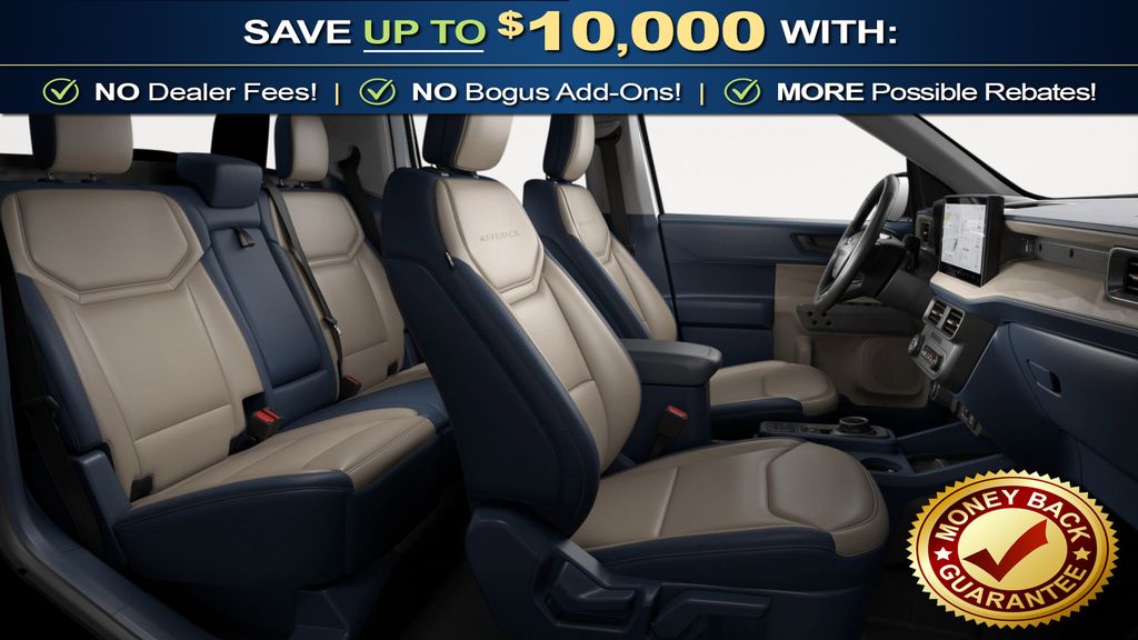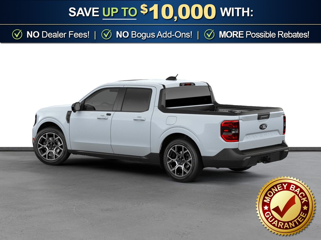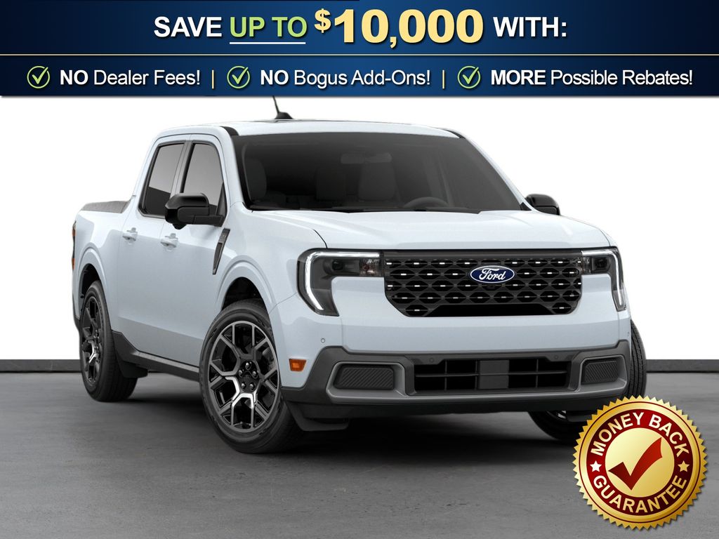 Space White Metallic 2026 Ford Maverick Lariat NFT AWD CVT 2.5L I-4 Hybrid 2.5L I-4 Hybrid, 2.91 Axle Ratio, 4-Wheel Disc Brakes, 4K Tow Package, 8 Speakers, ABS brakes, ActiveX Trimmed Heated Front Bucket Seats, Air Conditioning, Alloy wheels, AM/FM radio: SiriusXM with 360L, Apple CarPlay/Android Auto, Auto High-beam Headlights, Automatic temperature control, Brake assist, Bumpers: body-color, Compass, Delay-off headlights, Driver door bin, Driver vanity mirror, Dual front impact airbags, Dual front side impact airbags, Electronic Stability Control, Emergency communication system: SYNC 4 911 Assist, Exterior Parking Camera Rear, Ford Connectivity Package (1-Year Included), Four wheel independent suspension, Front anti-roll bar, Front Bucket Seats, Front Center Armrest, Front dual zone A/C, Front reading lights, Fully automatic headlights, Heated door mirrors, Heated front seats, Heated steering wheel, Illuminated entry, Internet access capable: 5G Modem - Ford Connectivity Package, Knee airbag, Low tire pressure warning, Navigation system: Connected Navigation, Occupant sensing airbag, Outside temperature display, Overhead airbag, Overhead console, Panic alarm, Passenger door bin, Passenger vanity mirror, Power door mirrors, Power driver seat, Power Moonroof, Power steering, Power windows, Radio data system, Radio: B&O Sound System by Bang and Olufsen, Rear anti-roll bar, Rear seat center armrest, Rear step bumper, Remote keyless entry, Security system, SiriusXM with 360L, Speed control, Speed-sensing steering, Steering wheel mounted audio controls, SYNC 4 with Enhanced Voice Recognition, Telescoping steering wheel, Tilt steering wheel, Traction control, Trailer Brake Controller, Trailer Hitch (class III) 2" Receiver, Trip computer, Upgraded Cooling Fan, Wheels: 19" Machined Aluminum Painted, 2.5L I-4 Hybrid.