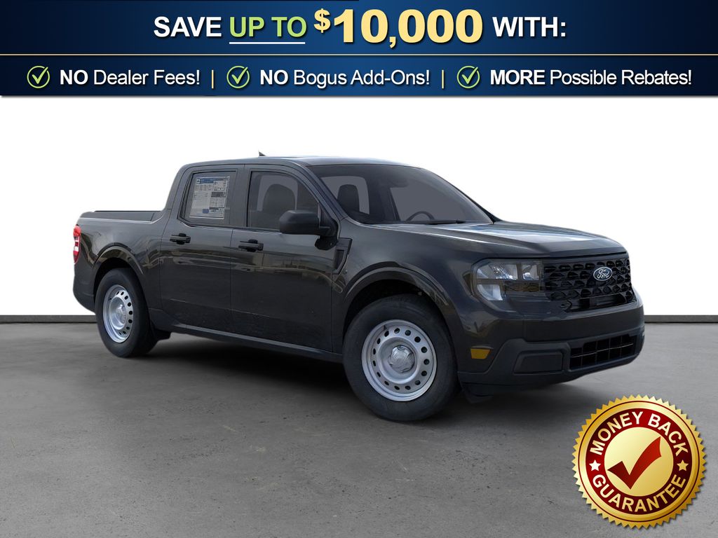 Shadow Black 2026 Ford Maverick XL NFT FWD CVT 2.5L I-4 Hybrid 2.5L I-4 Hybrid, 2.91 Axle Ratio, 2K Trailer Hitch Receiver with 4-Pin Connector, 4-Wheel Disc Brakes, 6 Speakers, ABS brakes, Air Conditioning, AM/FM radio: SiriusXM with 360L, Apple CarPlay/Android Auto, Auto High Beams, Auto High-beam Headlights, Automatic temperature control, BLIS with Cross-Traffic Alert and Trailer Coverage, Brake assist, Bumpers: body-color, Compass, Delay-off headlights, Driver door bin, Driver vanity mirror, Dual front impact airbags, Dual front side impact airbags, Electronic Stability Control, Emergency communication system: SYNC 4 911 Assist, Exit Warning, Exterior Parking Camera Rear, Ford Co-Pilot360, Ford Connectivity Package (1-Year Included), Front anti-roll bar, Front Bucket Seats, Front Center Armrest, Front Cloth Bucket Seats, Front reading lights, Front wheel independent suspension, Fully automatic headlights, Illuminated entry, Internet access capable: 5G Modem - Ford Connectivity Package, Intersection Assist, Knee airbag, Lane-Keeping System, Low tire pressure warning, Occupant sensing airbag, Outside temperature display, Overhead airbag, Overhead console, Panic alarm, Passenger door bin, Passenger vanity mirror, Power Glass Manual-Folding Mirrors, Power steering, Power windows, Pre-Collision Assist with Automatic Emergency Braking, Radio data system, Radio: AM/FM Stereo with 6 Speakers, Rear anti-roll bar, Rear Cross Traffic Braking, Rear Parking Sensors, Rear step bumper, Rear-View Camera, Remote keyless entry, SiriusXM with 360L, Speed control, Speed-sensing steering, Steering wheel mounted audio controls, SYNC 4 with Enhanced Voice Recognition, Telescoping steering wheel, Tilt steering wheel, Traction control, Trip computer, Wheels: 17" Steel with Sparkle Silver Painted Cover, 2.5L I-4 Hybrid.