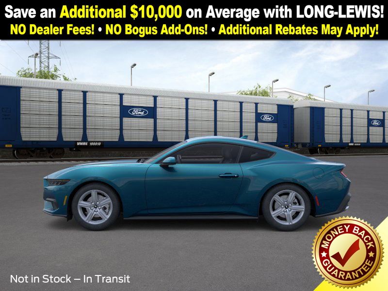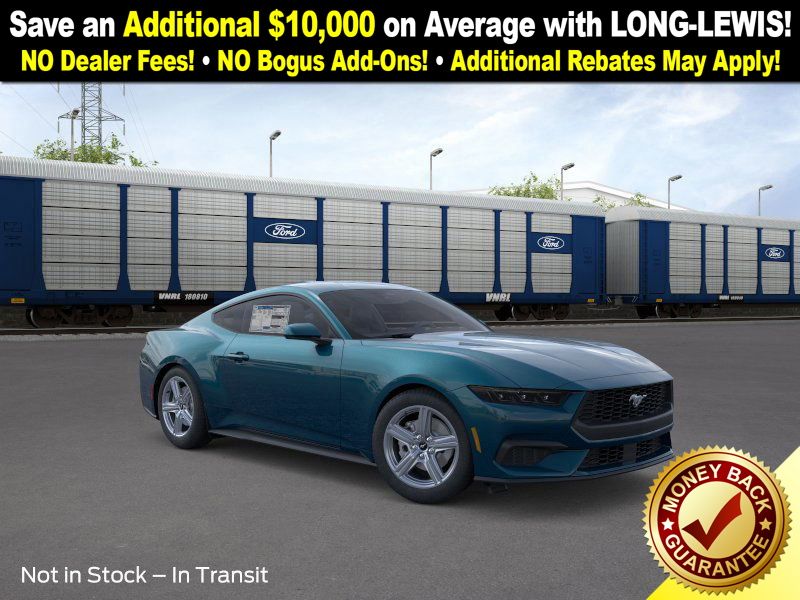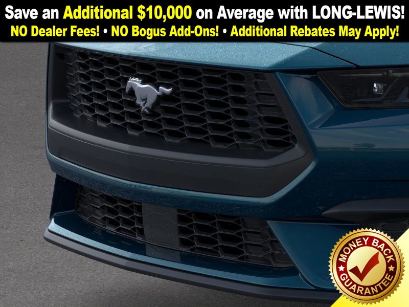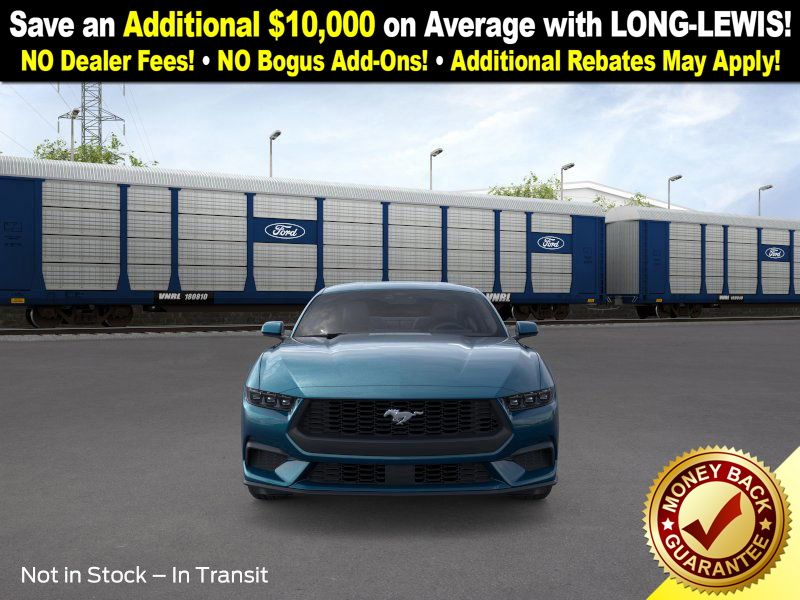 Adriatic Blue Metallic 2026 Ford Mustang EcoBoost NFC RWD 10-Speed Automatic EcoBoost 2.3L I4 GTDi DOHC Turbocharged VCT ABS brakes, Alloy wheels, Compass, Electronic Stability Control, Front dual zone A/C, Illuminated entry, Low tire pressure warning, Remote keyless entry, Traction control, 4-Wheel Disc Brakes, 6 Speakers, Air Conditioning, AM/FM radio, AM/FM Stereo, Auto High-beam Headlights, Automatic temperature control, Brake assist, Bumpers: body-color, Cloth Bucket Seats, Delay-off headlights, Driver door bin, Driver vanity mirror, Dual front impact airbags, Dual front side impact airbags, Emergency communication system: 911 Assist, Exterior Parking Camera Rear, Four wheel independent suspension, Front anti-roll bar, Front Bucket Seats, Front Center Armrest, Front reading lights, Fully automatic headlights, Knee airbag, Leather Shift Knob, Occupant sensing airbag, Outside temperature display, Overhead airbag, Overhead console, Panic alarm, Passenger door bin, Passenger vanity mirror, Power door mirrors, Power steering, Power windows, Radio data system, Rain sensing wipers, Rear anti-roll bar, Rear Parking Sensors, Rear window defroster, Speed control, Speed-sensing steering, Speed-Sensitive Wipers, Split folding rear seat, Sport steering wheel, Steering wheel mounted audio controls, SYNC 4, Tachometer, Telescoping steering wheel, Tilt steering wheel, Trip computer, Variably intermittent wipers, Voltmeter, Wheels: 18" x 8" Painted Shadow Silver Cast Alum, ABS brakes, Alloy wheels, Compass, Electronic Stability Control, Front dual zone A/C, Illuminated entry, Low tire pressure warning, Remote keyless entry, Traction control.