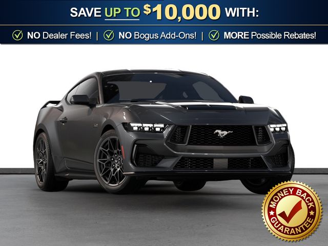 2026 Ford Mustang GT Premium NFC Carbonized Gray Metallic GT Premium NFC RWD 10-Speed Automatic 5.0L V8 Ti-VCT 1st Row Carpeted Black Floor Mats, 4-Wheel Disc Brakes, ABS brakes, Active Anti-Theft System, Active Valve Performance Exhaust, Air Conditioning, Alloy wheels, AM/FM Stereo, Anti-Theft Package, Auto High-beam Headlights, Automatic temperature control, Brake assist, Brembo Brake System with Performance Linings, Bumpers: body-color, Compass, Delay-off headlights, Driver door bin, Driver vanity mirror, Dual front impact airbags, Dual front side impact airbags, Electronic Stability Control, Emergency communication system: 911 Assist, Exterior Parking Camera Rear, Four wheel independent suspension, Front anti-roll bar, Front Bucket Seats, Front Center Armrest, Front dual zone A/C, Front reading lights, Fully automatic headlights, GT Performance Package, Illuminated entry, Knee airbag, Leather Shift Knob, Leather steering wheel, Leather-Trimmed Bucket Seats with Color Accents, Locking Center Console, Low tire pressure warning, Occupant sensing airbag, Outside temperature display, Overhead airbag, Overhead console, Painted High Gloss Black/Carbon Black Grille, Panic alarm, Passenger door bin, Passenger vanity mirror, Power door mirrors, Power steering, Power windows, Radio data system, Rain sensing wipers, Rear anti-roll bar, Rear Parking Sensors, Rear window defroster, RECARO Leather-Trimmed Sport Seats, Remote keyless entry, Speed control, Speed-sensing steering, Speed-Sensitive Wipers, Split folding rear seat, Sport steering wheel, Steering wheel mounted audio controls, SYNC 4, Tachometer, Telescoping steering wheel, Tilt steering wheel, Traction control, Trip computer, Unique Chassis Tuning, Variably intermittent wipers, Voltmeter.