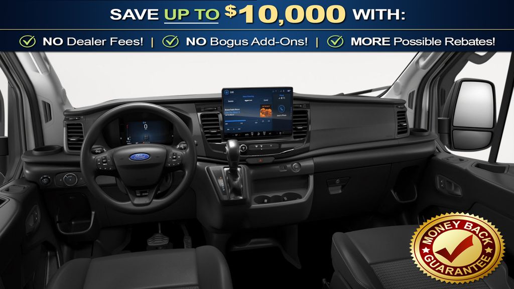 Oxford White 2026 Ford Transit-250 NFT RWD 10-Speed Automatic with Overdrive 3.5L V6 Flex Fuel 2 Additional Keys (4 Total), 3.73 Axle Ratio, 4 Speakers, 4-Wheel Disc Brakes, ABS brakes, Air Conditioning, AM/FM radio, AM/FM Stereo, Apple CarPlay/Android Auto, Auto High-beam Headlights, Brake assist, Cloth Front Bucket Seats, Dark Palazzo Gray Vinyl Bucket Seats, Delay-off headlights, Driver door bin, Driver's Seat Mounted Armrest, Dual front impact airbags, Dual front side impact airbags, Electronic Stability Control, Emergency communication system: 911 Assist, Exterior Parking Camera Rear, Ford Connectivity Package (1-Year Included), Front and Rear Vinyl Floor Covering, Front anti-roll bar, Front Bucket Seats, Front License Plate Bracket, Front reading lights, Front wheel independent suspension, Full Rear Compartment Lighting, Fully automatic headlights, Illuminated entry, Keyless Entry Keypad, Load Area Protection Package, Low tire pressure warning, Navigation system: Connected Navigation, Occupant sensing airbag, Overhead airbag, Panic alarm, Passenger cancellable airbag, Passenger door bin, Power door mirrors, Power steering, Power windows, Rain sensing wipers, Remote keyless entry, Speed control, Steering wheel mounted audio controls, SYNC 4, Tachometer, Telescoping steering wheel, Tilt steering wheel, Traction control, Variably intermittent wipers, Vinyl Front Bucket Seats, Wheels: 16" Silver Steel with Black Hubcap.