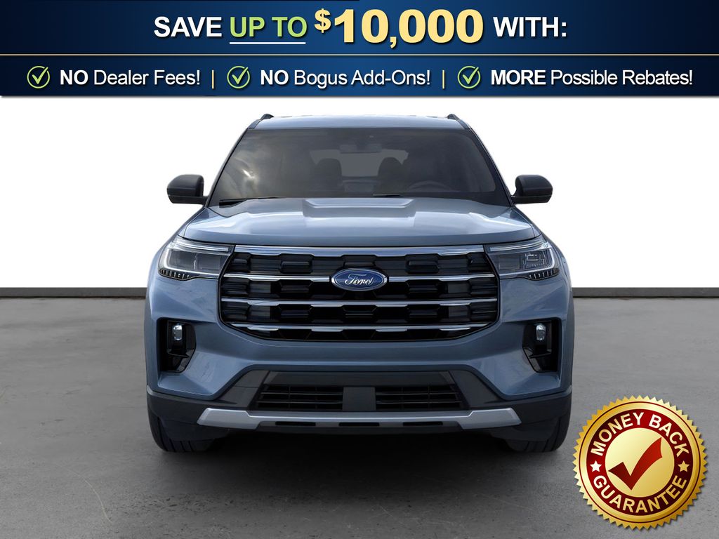 Vapor Blue Metallic 2026 Ford Explorer Active NFT RWD 10-Speed Automatic 2.3L EcoBoost I-4 3rd row seats: bench, 4-Wheel Disc Brakes, 6 Speakers, ABS brakes, Air Conditioning, Alloy wheels, AM/FM radio: SiriusXM with 360L, AM/FM Stereo, Apple CarPlay/Android Auto, Auto High-beam Headlights, Automatic temperature control, Brake assist, Bumpers: body-color, Compass, Delay-off headlights, Driver door bin, Driver vanity mirror, Dual front impact airbags, Dual front side impact airbags, Electronic Stability Control, Emergency communication system: 911 Assist, Exterior Parking Camera Rear, Four wheel independent suspension, Front anti-roll bar, Front Bucket Seats, Front Center Armrest, Front dual zone A/C, Front License Plate Bracket, Front reading lights, Fully automatic headlights, Heated door mirrors, Illuminated entry, Knee airbag, Low tire pressure warning, Navigation System, Occupant sensing airbag, Outside temperature display, Overhead airbag, Overhead console, Panic alarm, Passenger door bin, Passenger vanity mirror, Power door mirrors, Power driver seat, Power steering, Power windows, Rear air conditioning, Rear anti-roll bar, Rear reading lights, Rear window defroster, Rear window wiper, Remote keyless entry, Security system, Speed control, Speed-sensing steering, Speed-Sensitive Wipers, Split folding rear seat, Spoiler, Steering wheel mounted audio controls, Tachometer, Telescoping steering wheel, Tilt steering wheel, Traction control, Trip computer, Variably intermittent wipers, Wheels: 18" Sparkle Silver-Painted Aluminum.