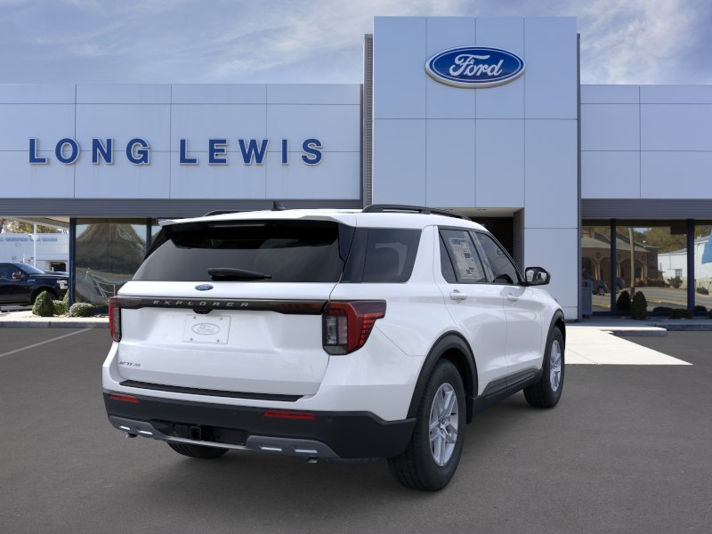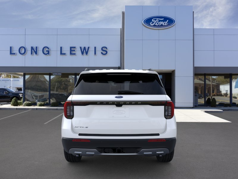 Star White Metallic Tri-Coat 2026 Ford Explorer Active NFT RWD 10-Speed Automatic 2.3L EcoBoost I-4 3rd row seats: bench, 4-Wheel Disc Brakes, 6 Speakers, ABS brakes, Air Conditioning, Alloy wheels, AM/FM radio: SiriusXM with 360L, AM/FM Stereo, Apple CarPlay/Android Auto, Auto High-beam Headlights, Automatic temperature control, Brake assist, Bumpers: body-color, Compass, Delay-off headlights, Driver door bin, Driver vanity mirror, Dual front impact airbags, Dual front side impact airbags, Electronic Stability Control, Emergency communication system: 911 Assist, Exterior Parking Camera Rear, Ford Connectivity Package (one-Time Purchase - 7 Years), Four wheel independent suspension, Front anti-roll bar, Front Bucket Seats, Front Center Armrest, Front dual zone A/C, Front License Plate Bracket, Front reading lights, Fully automatic headlights, Heated door mirrors, Illuminated entry, Knee airbag, Low tire pressure warning, Navigation System, Occupant sensing airbag, Outside temperature display, Overhead airbag, Overhead console, Panic alarm, Passenger door bin, Passenger vanity mirror, Power door mirrors, Power driver seat, Power steering, Power windows, Rear air conditioning, Rear anti-roll bar, Rear reading lights, Rear window defroster, Rear window wiper, Remote keyless entry, Security system, Speed control, Speed-sensing steering, Speed-Sensitive Wipers, Split folding rear seat, Spoiler, Steering wheel mounted audio controls, Tachometer, Telescoping steering wheel, Tilt steering wheel, Traction control, Trip computer, Variably intermittent wipers, Wheels: 18" Sparkle Silver-Painted Aluminum.