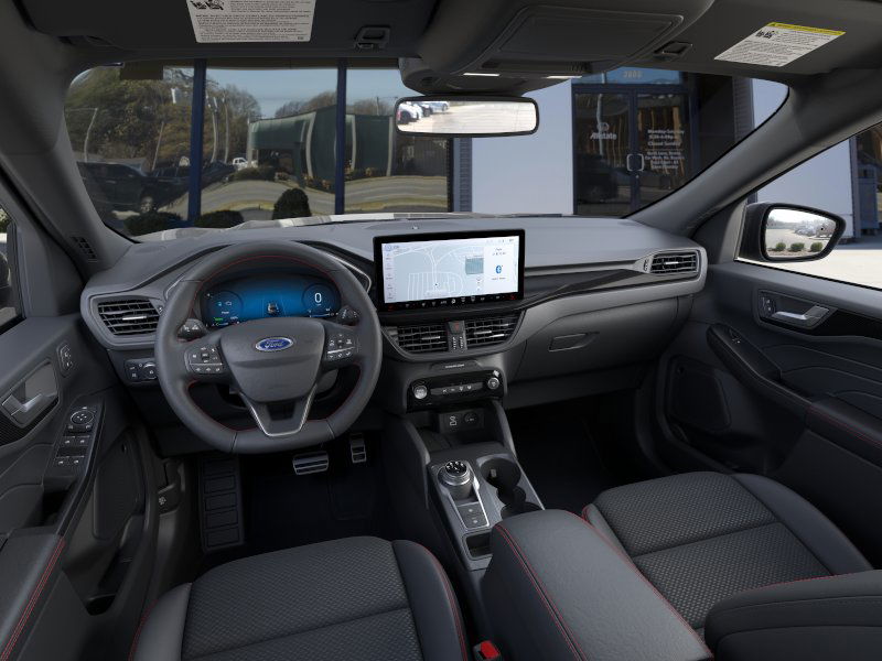 Carbonized Gray Metallic 2024 Ford Escape Hybrid ST-Line Elite NFT AWD eCVT 2.5L iVCT 2.5L iVCT, 2.91 Axle Ratio, 4-Wheel Disc Brakes, 6 Speakers, ABS brakes, Air Conditioning, Alloy wheels, AM/FM radio: SiriusXM, AM/FM Stereo, Auto High-beam Headlights, Auto-dimming Rear-View mirror, Automatic temperature control, Brake assist, Bumpers: body-color, Compass, Delay-off headlights, Driver door bin, Driver vanity mirror, Dual front impact airbags, Dual front side impact airbags, Electronic Fuel Door Release, Electronic Stability Control, Emergency communication system: SYNC 4 911 Assist, Equipment Group 500A, Exterior Parking Camera Rear, FordPass Connect, Four wheel independent suspension, Front anti-roll bar, Front Bucket Seats, Front Center Armrest, Front dual zone A/C, Front fog lights, Front License Plate Bracket, Front reading lights, Fully automatic headlights, Garage door transmitter, Heated door mirrors, Heated front seats, Heated steering wheel, Heated Vinyl/Cloth Front Sport Contour Bucket Seats, Illuminated entry, Knee airbag, Low tire pressure warning, Memory seat, Navigation system: Connected Navigation, Neutral Towing Capability, Occupant sensing airbag, Outside temperature display, Overhead airbag, Overhead console, Panic alarm, Passenger door bin, Passenger vanity mirror, Pedestrian Alert Sounder, Power door mirrors, Power driver seat, Power Liftgate, Power passenger seat, Power steering, Power windows, Radio data system, Rain sensing wipers, Rear anti-roll bar, Rear reading lights, Rear seat center armrest, Rear window defroster, Rear window wiper, Remote keyless entry, Roof rack: rails only, Security system, Speed control, Speed-sensing steering, Speed-Sensitive Wipers, Split folding rear seat, Spoiler, Sport steering wheel, Steering wheel mounted audio controls, SYNC 4 w/Enhanced Voice Recognition, Tachometer, Telescoping steering wheel, Tilt steering wheel, Traction control, Trip computer, Variably intermittent wipers, Wheels: 19" Machined-Face Ebony-Painted Aluminum, 2.5L iVCT.