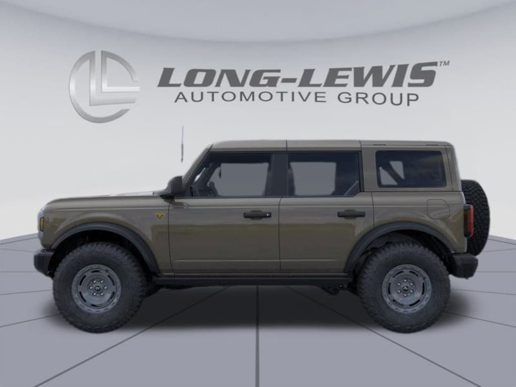 Marsh Gray 2025 Ford Bronco Badlands 4WD 10-Speed Automatic 2.7L EcoBoost V6 4-Wheel Disc Brakes, 4.7 Axle Ratio, 4.7 Final Drive Ratio, 7 Speakers, ABS brakes, Air Conditioning, Alloy wheels, AM/FM radio: SiriusXM with 360L, AM/FM Stereo, Auto High-beam Headlights, Auto-dimming Rear-View mirror, Body Color-Painted Hard Top, Brake assist, Compass, Connected Navigation, Delay-off headlights, Driver door bin, Driver vanity mirror, Dual front impact airbags, Dual front side impact airbags, Electronic Stability Control, Emergency communication system: 911 Assist, Exterior Parking Camera Rear, Front anti-roll bar, Front Bucket Seats, Front Center Armrest, Front fog lights, Front License Plate Bracket, Front reading lights, Front wheel independent suspension, Fully automatic headlights, Hard Top Sound Deadening Headliner, Heated door mirrors, Heated front seats, Heated steering wheel, High Clearance Fender Flares, High Clearance Suspension, Illuminated entry, Integrated roll-over protection, Leather Shift Knob, Low tire pressure warning, Marine Grade Vinyl Heated Bucket Seats, Occupant sensing airbag, Outside temperature display, Overhead airbag, Overhead console, Panic alarm, Passenger door bin, Passenger vanity mirror, Position-Sensitive Bilstein Shock Absorbers, Power door mirrors, Power steering, Power windows, Radio data system, Rear-Window Defroster & Washer, Remote keyless entry, Sasquatch Package, Security system, SiriusXM w/360L, Speed control, Split folding rear seat, Steering wheel mounted audio controls, SYNC 4, Tachometer, Telescoping steering wheel, Tilt steering wheel, Traction control, Trip computer, Variably intermittent wipers, Voltmeter.
