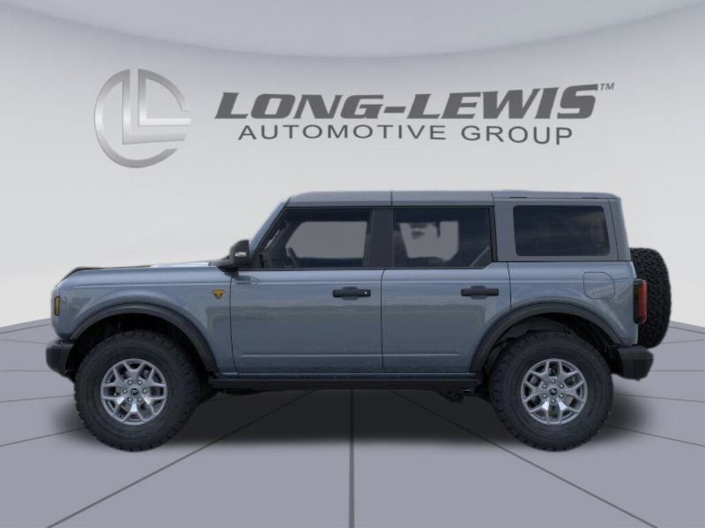 Azure Gray Metallic Tri-Coat 2025 Ford Bronco Badlands 4WD 10-Speed Automatic 2.7L EcoBoost V6 4-Wheel Disc Brakes, 4.7 Axle Ratio, 7 Speakers, ABS brakes, Air Conditioning, Alloy wheels, AM/FM radio: SiriusXM with 360L, AM/FM Stereo, Auto High-beam Headlights, Auto-dimming Rear-View mirror, Brake assist, Carbonized Gray Molded-In-Color Hard Top, Compass, Connected Navigation, Delay-off headlights, Driver door bin, Driver vanity mirror, Dual front impact airbags, Dual front side impact airbags, Electronic Stability Control, Emergency communication system: 911 Assist, Exterior Parking Camera Rear, Front anti-roll bar, Front Bucket Seats, Front Center Armrest, Front fog lights, Front License Plate Bracket, Front reading lights, Front wheel independent suspension, Fully automatic headlights, Hard Top Sound Deadening Headliner, Heated door mirrors, Heated front seats, Heated steering wheel, Illuminated entry, Integrated roll-over protection, Leather Shift Knob, Low tire pressure warning, Marine Grade Vinyl Heated Bucket Seats, Occupant sensing airbag, Outside temperature display, Overhead airbag, Overhead console, Panic alarm, Passenger door bin, Passenger vanity mirror, Power door mirrors, Power steering, Power windows, Radio data system, Rear-Window Defroster & Washer, Remote keyless entry, Security system, SiriusXM w/360L, Speed control, Split folding rear seat, Steering wheel mounted audio controls, SYNC 4, Tachometer, Telescoping steering wheel, Tilt steering wheel, Traction control, Trip computer, Variably intermittent wipers, Voltmeter.