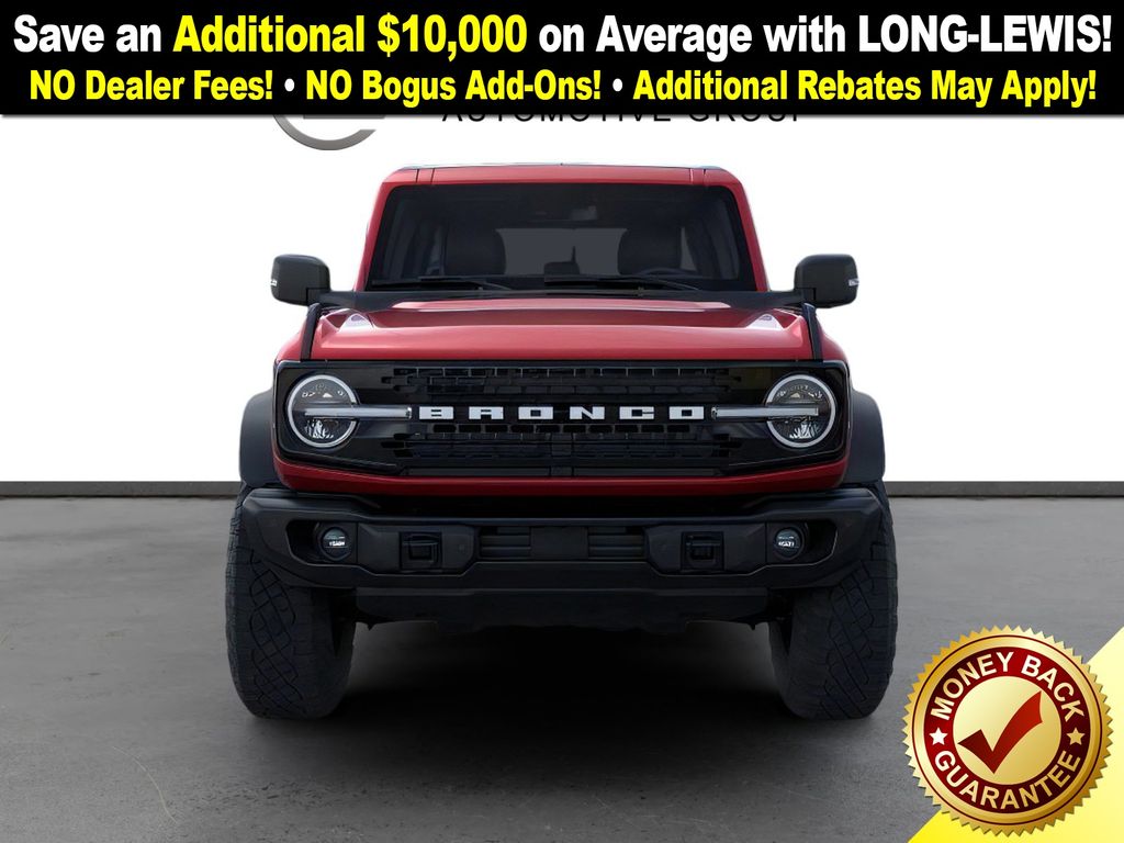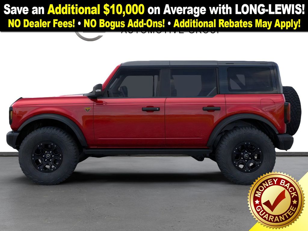 Ruby Red Metallic Tinted Clearcoat 2025 Ford Bronco Badlands FCT 4WD 10-Speed Automatic 2.7L EcoBoost V6 4-Wheel Disc Brakes, 7 Speakers, ABS brakes, Air Conditioning, Alloy wheels, AM/FM radio: SiriusXM with 360L, AM/FM Stereo, Auto High-beam Headlights, Auto-dimming Rear-View mirror, Black Appearance Package, Black Molded-In-Color Door Handles, Black Molded-In-Color Fender Flares, Black Molded-In-Color Sideview Mirror Caps, Black-Painted Molded-In-Color Grille, Brake assist, Compass, Delay-off headlights, Driver door bin, Driver vanity mirror, Dual front impact airbags, Dual front side impact airbags, Electronic Stability Control, Emergency communication system: 911 Assist, Exterior Parking Camera Rear, Front anti-roll bar, Front Bucket Seats, Front Center Armrest, Front fog lights, Front License Plate Bracket, Front reading lights, Front wheel independent suspension, Fully automatic headlights, Hard Top Sound Deadening Headliner, Heated door mirrors, Heated front seats, Heated steering wheel, High Clearance Fender Flares, High Clearance Suspension, HOSS 3.0 w/FOX Internal Bypass Dampers, Illuminated entry, Integrated roll-over protection, Leather Shift Knob, Leather-Trimmed/Vinyl Bucket Seats, Low tire pressure warning, Marine Grade Vinyl Heated Bucket Seats, Occupant sensing airbag, Outside temperature display, Overhead airbag, Overhead console, Panic alarm, Passenger door bin, Passenger vanity mirror, Position-Sensitive Bilstein Shock Absorbers, Power door mirrors, Power steering, Power windows, Radio data system, Rear-Window Defroster & Washer, Remote keyless entry, Sasquatch Package, Security system, Shadow Black Painted Hard Top, SiriusXM w/360L, Speed control, Split folding rear seat, Steering wheel mounted audio controls, SYNC 4, Tachometer, Telescoping steering wheel, Tilt steering wheel, Traction control, Trip computer, Variably intermittent wipers, Voltmeter, Wheels: 17" Carbonized Gray Painted Aluminum, Wheels: 17" Carbonized Gray-Painted Aluminum.