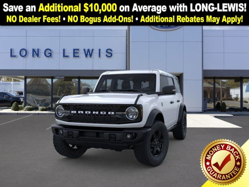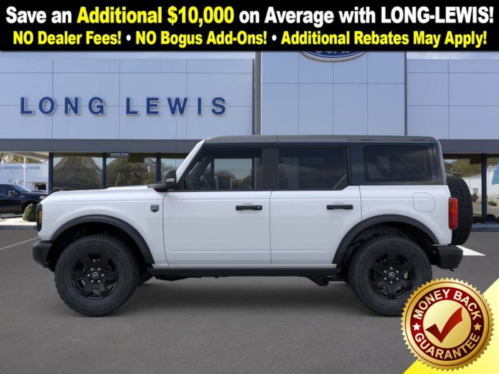 Oxford White 2025 Ford Bronco Big Bend FCT 4WD 7-Speed Manual 2.3L EcoBoost I-4 4-Wheel Disc Brakes, 7 Speakers, ABS brakes, Air Conditioning, Alloy wheels, AM/FM radio: SiriusXM with 360L, AM/FM Stereo, Auto High-beam Headlights, Auxiliary Switches, Black Appearance Package, Black Diamond Package, Black Molded-In-Color Door Handles, Black Molded-In-Color Fender Flares, Black Molded-In-Color Sideview Mirror Caps, Black-Painted Molded-In-Color Grille, Brake assist, Cloth Bucket Seats, Compass, Delay-off headlights, Driver door bin, Driver vanity mirror, Dual front impact airbags, Dual front side impact airbags, Electronic Stability Control, Emergency communication system: 911 Assist, Exterior Parking Camera Rear, Front anti-roll bar, Front Bucket Seats, Front Center Armrest, Front License Plate Bracket, Front reading lights, Front wheel independent suspension, Fully automatic headlights, Hard Top Sound Deadening Headliner, Heated door mirrors, Illuminated entry, Integrated roll-over protection, Leather Shift Knob, LED Fog Lamps, Low tire pressure warning, Occupant sensing airbag, Outside temperature display, Overhead airbag, Overhead console, Panic alarm, Passenger door bin, Passenger vanity mirror, Powder Coated Steel Front & Rear Bumpers, Power door mirrors, Power steering, Power windows, Radio data system, Rear-Window Defroster & Washer, Remote keyless entry, Rock Rails, Security system, Shadow Black Painted Hard Top, SiriusXM w/360L, Speed control, Split folding rear seat, Steering wheel mounted audio controls, SYNC 4, Tachometer, Telescoping steering wheel, Tilt steering wheel, Traction control, Trip computer, Variably intermittent wipers, Washout Capable Rubberized Flooring, Wheels: 17" Black High Gloss Painted Aluminum, Wheels: 17" Carbonized Gray-Painted Aluminum.