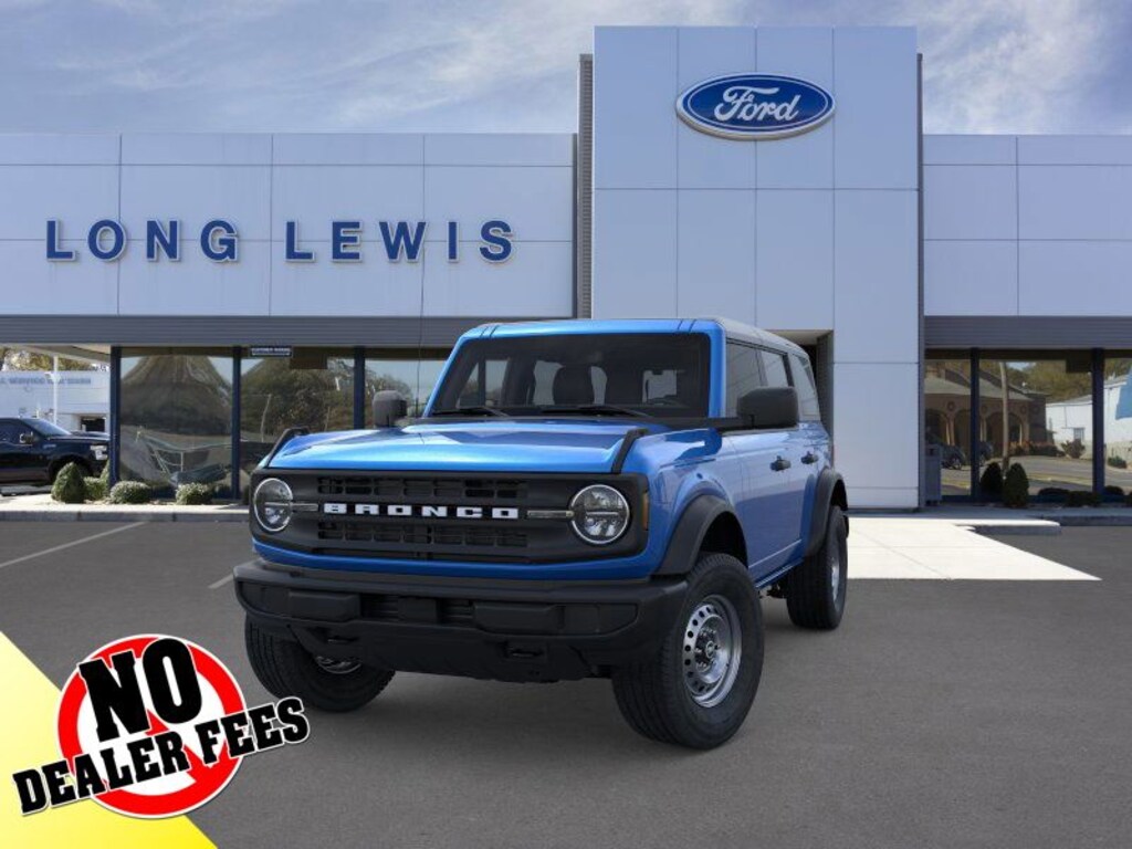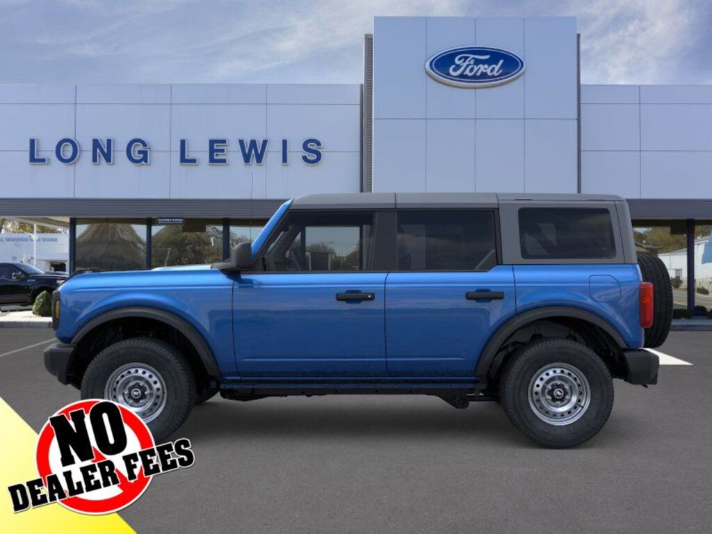 Velocity Blue Metallic 2025 Ford Bronco fctp 4WD 10-Speed Automatic 2.3L EcoBoost I-4 4-Wheel Disc Brakes, 4.46 Axle Ratio, 7 Speakers, ABS brakes, Air Conditioning, AM/FM radio: SiriusXM with 360L, AM/FM Stereo, Auto High-beam Headlights, Brake assist, Carbonized Gray Molded-In-Color Hard Top, Cloth Bucket Seats, Compass, Delay-off headlights, Driver door bin, Driver vanity mirror, Dual front impact airbags, Dual front side impact airbags, Electronic Stability Control, Emergency communication system: 911 Assist, Exterior Parking Camera Rear, Front anti-roll bar, Front Bucket Seats, Front Center Armrest, Front License Plate Bracket, Front reading lights, Front wheel independent suspension, Fully automatic headlights, Hard Top Sound Deadening Headliner, Heated door mirrors, Illuminated entry, Integrated roll-over protection, Low tire pressure warning, Occupant sensing airbag, Outside temperature display, Overhead airbag, Overhead console, Panic alarm, Passenger door bin, Passenger vanity mirror, Power door mirrors, Power steering, Power windows, Radio data system, Rear-Window Defroster & Washer, Remote keyless entry, Security system, SiriusXM w/360L, Speed control, Split folding rear seat, Steering wheel mounted audio controls, SYNC 4, Tachometer, Telescoping steering wheel, Tilt steering wheel, Traction control, Trip computer, Variably intermittent wipers, Wheels: 16" Bright Polished Silver-Painted Steel.