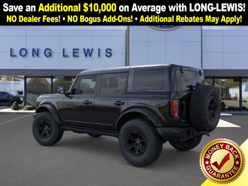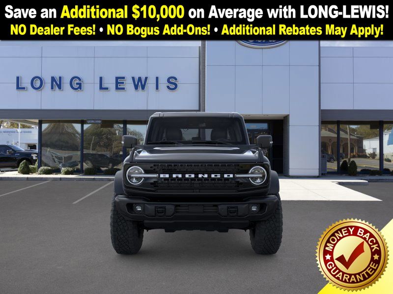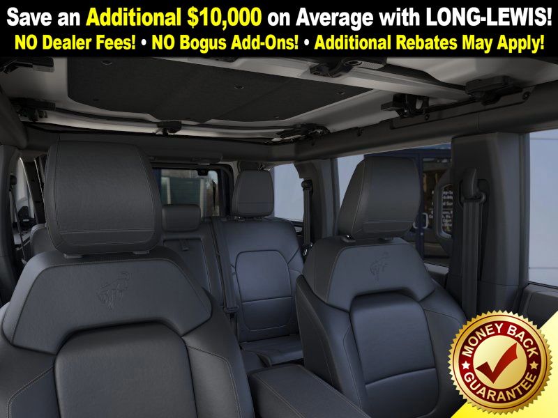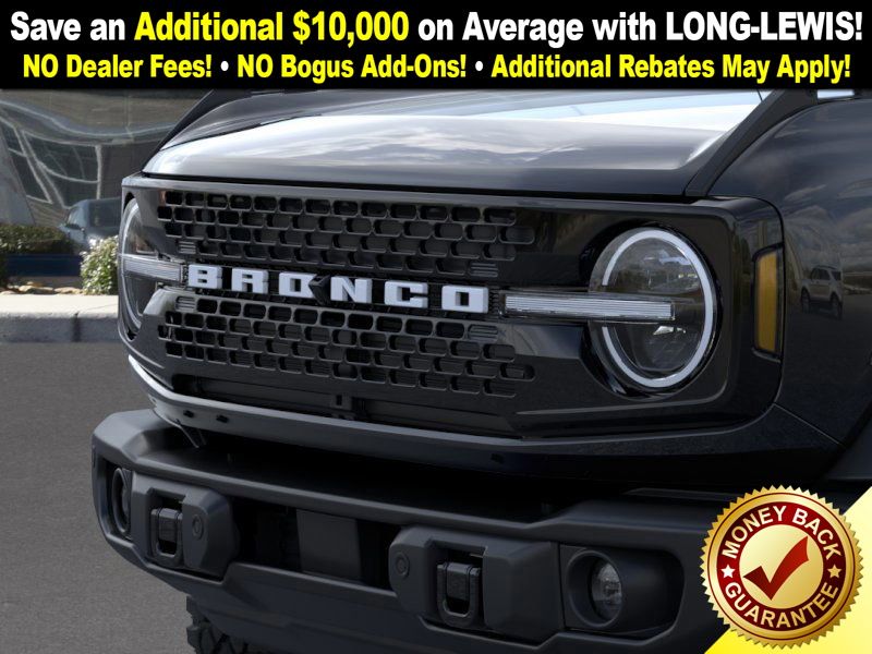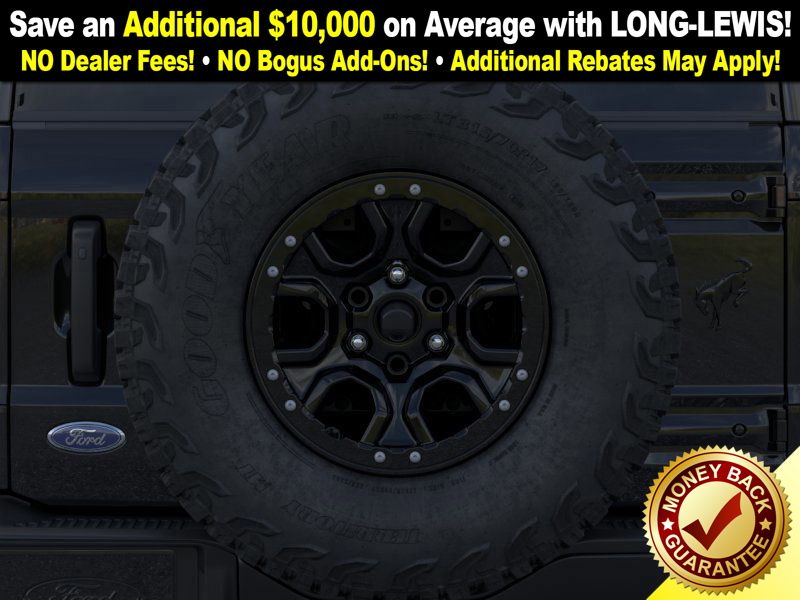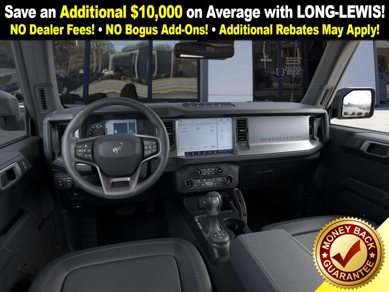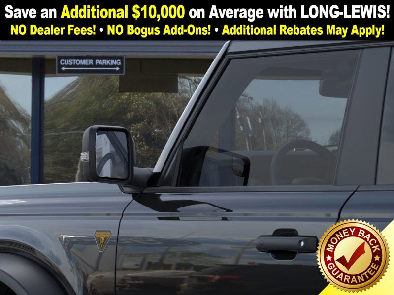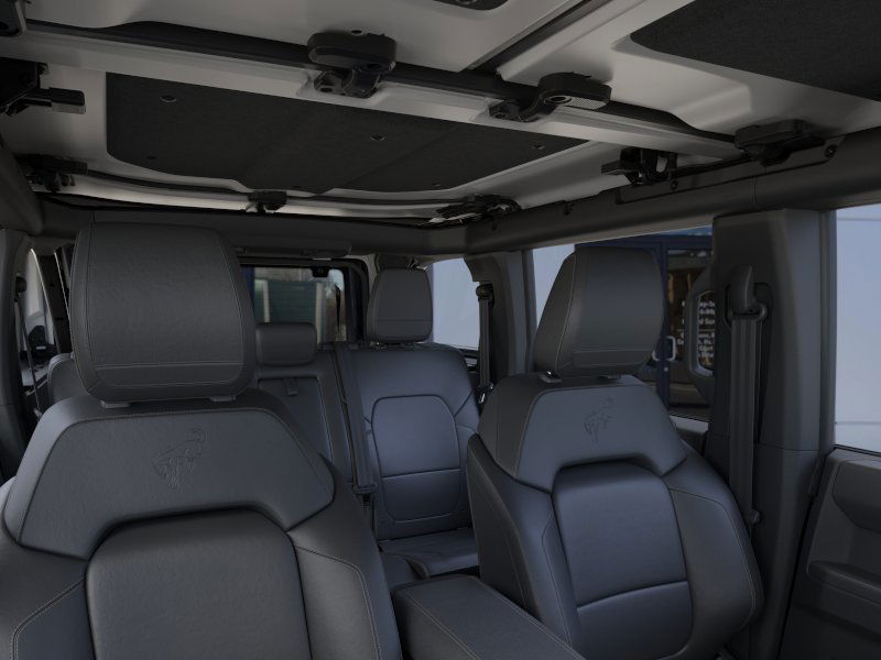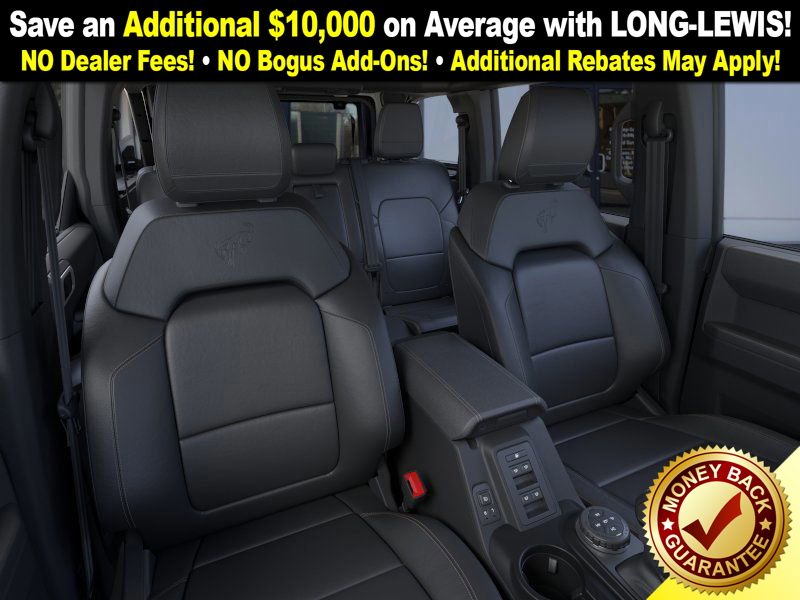 Shadow Black 2025 Ford Bronco Badlands FCT 4WD 10-Speed Automatic 2.7L EcoBoost V6 4-Wheel Disc Brakes, 4.7 Axle Ratio, 4.7 Final Drive Ratio, 7 Speakers, ABS brakes, Air Conditioning, Alloy wheels, AM/FM radio: SiriusXM with 360L, AM/FM Stereo, Auto High-beam Headlights, Auto-dimming Rear-View mirror, Black Appearance Package, Black Molded-In-Color Door Handles, Black Molded-In-Color Fender Flares, Black Molded-In-Color Sideview Mirror Caps, Black-Painted Molded-In-Color Grille, Brake assist, Compass, Connected Navigation, Delay-off headlights, Driver door bin, Driver vanity mirror, Dual front impact airbags, Dual front side impact airbags, Electronic Stability Control, Emergency communication system: 911 Assist, Exterior Parking Camera Rear, Front anti-roll bar, Front Bucket Seats, Front Center Armrest, Front fog lights, Front License Plate Bracket, Front reading lights, Front wheel independent suspension, Fully automatic headlights, Hard Top Sound Deadening Headliner, Heated door mirrors, Heated front seats, Heated steering wheel, High Clearance Fender Flares, High Clearance Suspension, HOSS 3.0 w/FOX Internal Bypass Dampers, Illuminated entry, Integrated roll-over protection, Leather Shift Knob, Leather-Trimmed/Vinyl Bucket Seats, Low tire pressure warning, Marine Grade Vinyl Heated Bucket Seats, Occupant sensing airbag, Outside temperature display, Overhead airbag, Overhead console, Panic alarm, Passenger door bin, Passenger vanity mirror, Position-Sensitive Bilstein Shock Absorbers, Power door mirrors, Power steering, Power windows, Radio data system, Rear-Window Defroster & Washer, Remote keyless entry, Sasquatch Package, Security system, Shadow Black Painted Hard Top, SiriusXM w/360L, Speed control, Split folding rear seat, Steering wheel mounted audio controls, SYNC 4, Tachometer, Telescoping steering wheel, Tilt steering wheel, Traction control, Trip computer, Variably intermittent wipers, Voltmeter.