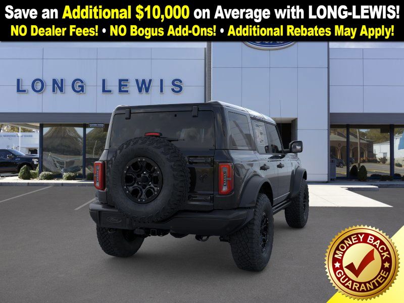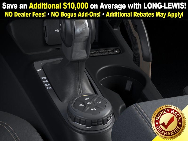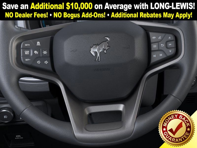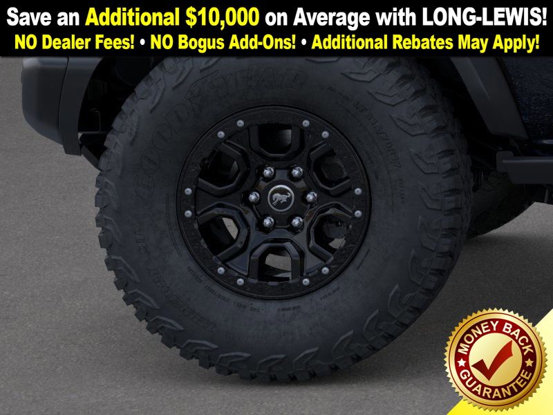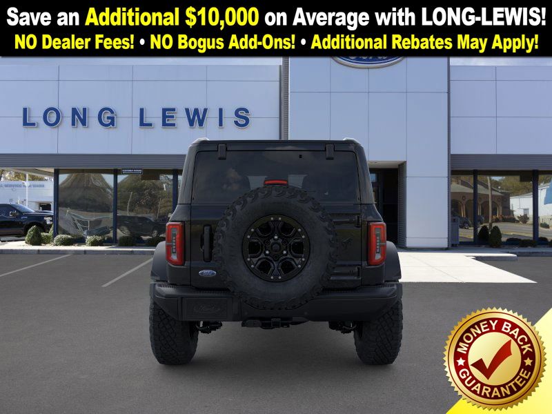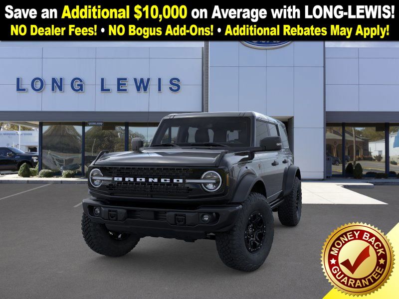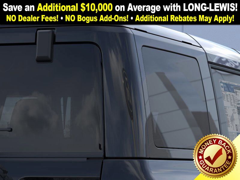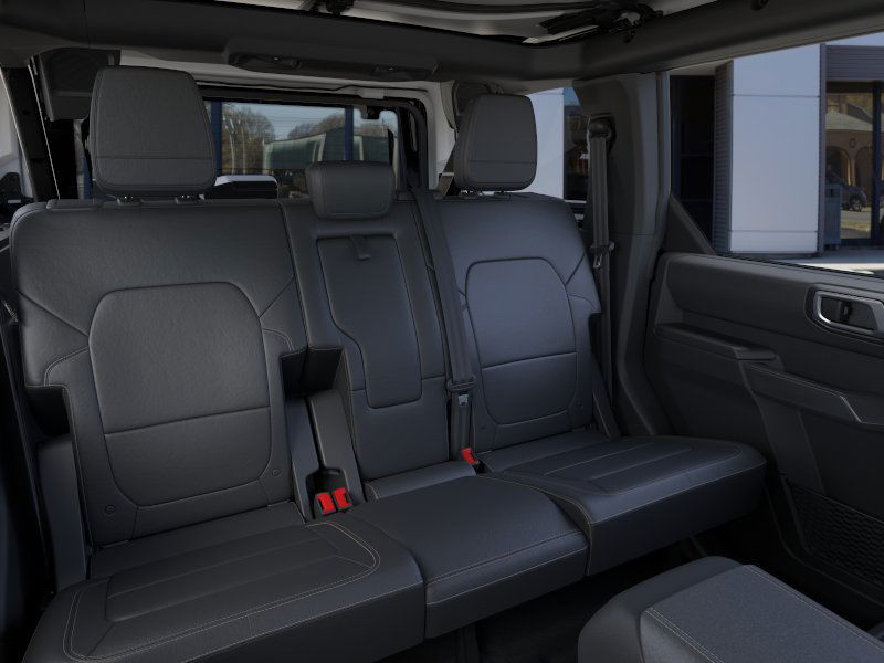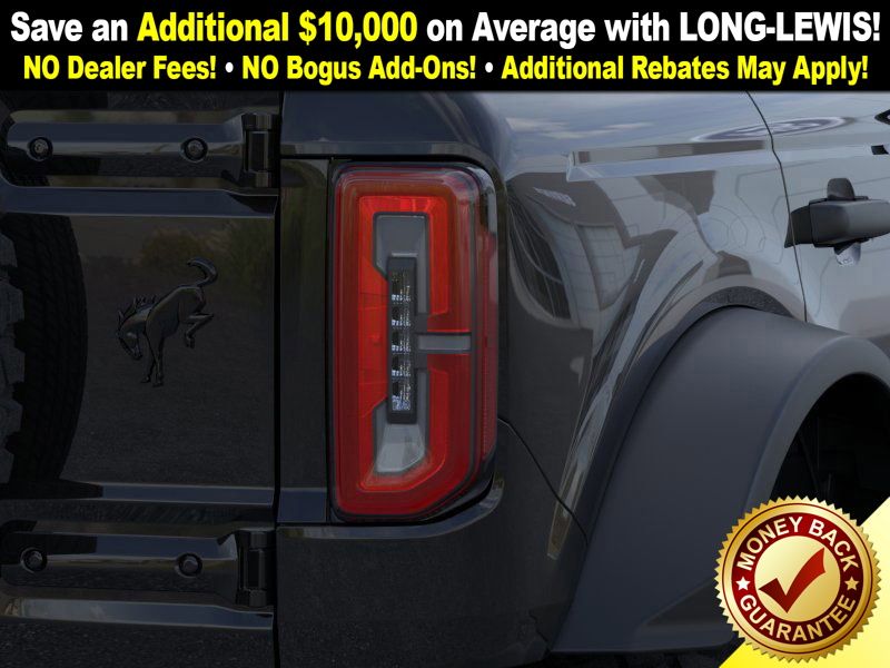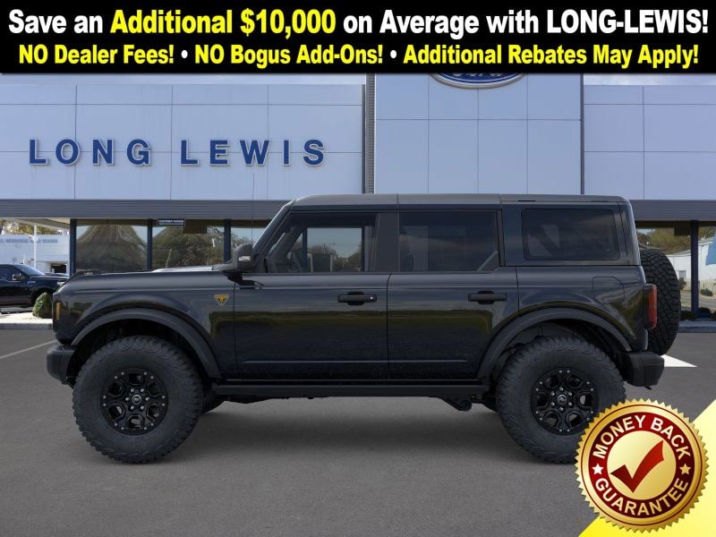 Shadow Black 2025 Ford Bronco Badlands FCT 4WD 10-Speed Automatic 2.7L EcoBoost V6 4-Wheel Disc Brakes, 4.7 Axle Ratio, 4.7 Final Drive Ratio, 7 Speakers, ABS brakes, Air Conditioning, Alloy wheels, AM/FM radio: SiriusXM with 360L, AM/FM Stereo, Auto High-beam Headlights, Auto-dimming Rear-View mirror, Black Appearance Package, Black Molded-In-Color Door Handles, Black Molded-In-Color Fender Flares, Black Molded-In-Color Sideview Mirror Caps, Black-Painted Molded-In-Color Grille, Brake assist, Compass, Connected Navigation, Delay-off headlights, Driver door bin, Driver vanity mirror, Dual front impact airbags, Dual front side impact airbags, Electronic Stability Control, Emergency communication system: 911 Assist, Exterior Parking Camera Rear, Front anti-roll bar, Front Bucket Seats, Front Center Armrest, Front fog lights, Front License Plate Bracket, Front reading lights, Front wheel independent suspension, Fully automatic headlights, Hard Top Sound Deadening Headliner, Heated door mirrors, Heated front seats, Heated steering wheel, High Clearance Fender Flares, High Clearance Suspension, HOSS 3.0 w/FOX Internal Bypass Dampers, Illuminated entry, Integrated roll-over protection, Leather Shift Knob, Leather-Trimmed/Vinyl Bucket Seats, Low tire pressure warning, Marine Grade Vinyl Heated Bucket Seats, Occupant sensing airbag, Outside temperature display, Overhead airbag, Overhead console, Panic alarm, Passenger door bin, Passenger vanity mirror, Position-Sensitive Bilstein Shock Absorbers, Power door mirrors, Power steering, Power windows, Radio data system, Rear-Window Defroster & Washer, Remote keyless entry, Sasquatch Package, Security system, Shadow Black Painted Hard Top, SiriusXM w/360L, Speed control, Split folding rear seat, Steering wheel mounted audio controls, SYNC 4, Tachometer, Telescoping steering wheel, Tilt steering wheel, Traction control, Trip computer, Variably intermittent wipers, Voltmeter.