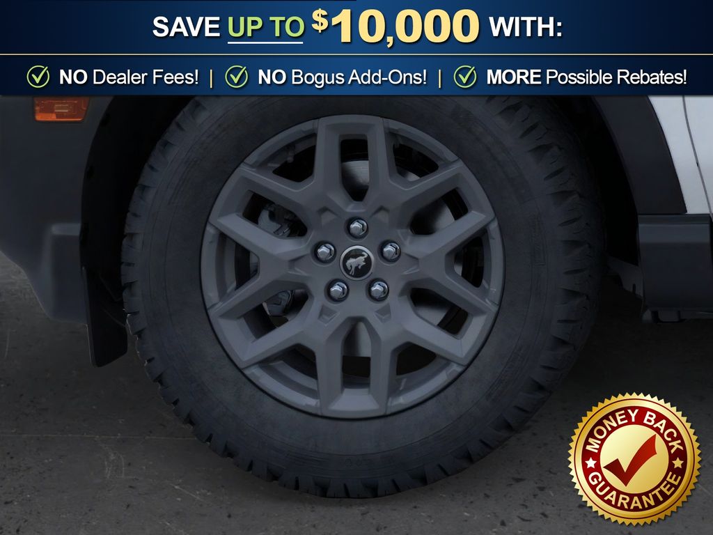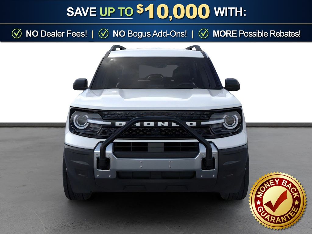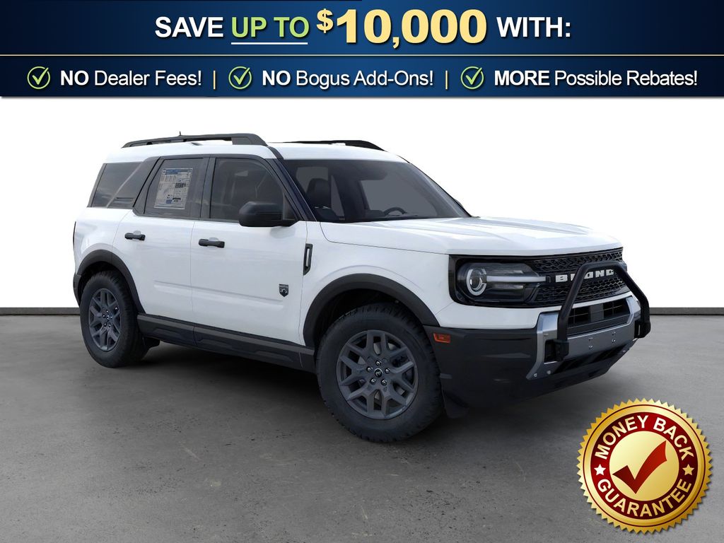 Oxford White 2025 Ford Bronco Sport Big Bend NFT 4WD 8-Speed Automatic 1.5L EcoBoost 110V/400W AC Power Outlet, 2nd Row Carpeted Seatback, 4-Wheel Disc Brakes, 6 Speakers, ABS brakes, Air Conditioning, Alloy wheels, AM/FM radio: SiriusXM, AM/FM Stereo, Auto High-beam Headlights, Automatic temperature control, Auxiliary Switches & Wiring, Black Diamond Off-Road Package, Brake assist, Brush Guard, Cargo Management System (Shelf/Divider/Table), Cargo Mat, Class II Trailer Tow Pack w/Trailer Sway Control, Cloth w/Easy-to-Clean Front Bucket Seats, Compass, Delay-off headlights, Driver door bin, Driver vanity mirror, Dual front impact airbags, Dual front side impact airbags, Electronic Stability Control, Emergency communication system: SYNC 4 911 Assist, Fender Tie Downs, Four wheel independent suspension, Front & Rear Black Bumpers, Front anti-roll bar, Front Bucket Seats, Front Center Armrest, Front License Plate Bracket, Front reading lights, Fully automatic headlights, Heated door mirrors, Illuminated entry, Interior Grab Handle, Knee airbag, Low tire pressure warning, Occupant sensing airbag, Outside temperature display, Overhead airbag, Overhead console, Panic alarm, Passenger door bin, Passenger vanity mirror, Power door mirrors, Power steering, Power windows, Radio data system, Rear anti-roll bar, Rear Parking Sensors, Rear reading lights, Rear seat center armrest, Rear window defroster, Rear window wiper, Recovery Hooks, Remote keyless entry, Security system, SiriusXM, Speed control, Speed-sensing steering, Speed-Sensitive Wipers, Split folding rear seat, Steering wheel mounted audio controls, SYNC 4 w/Enhanced Voice Recognition, Tachometer, Telescoping steering wheel, Tilt steering wheel, Traction control, Trip computer, Variably intermittent wipers, Wheels: 17" Carbonized Gray Painted Aluminum, Wheels: 17" Carbonized Gray-Painted Aluminum.