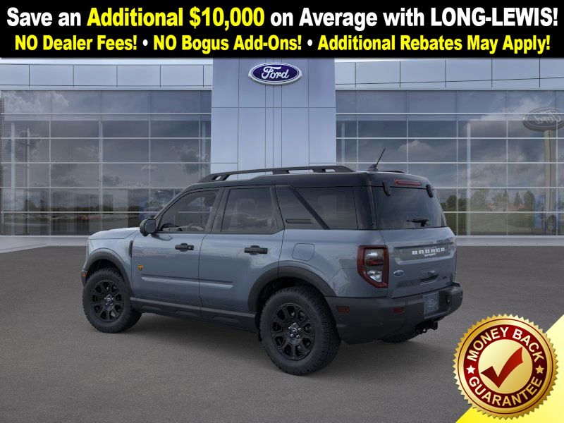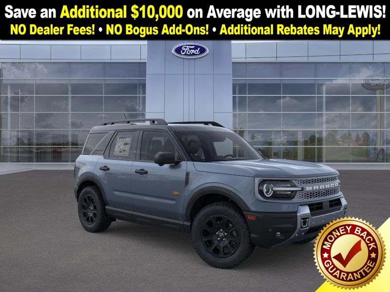 Badlands Tech Package (B&O Sound System by Bang & Olufsen, Connected Navigation, and HD Radio), Equipment Group 400A, 4-Wheel Disc Brakes, 6 Speakers, ABS brakes, Air Conditioning, Alloy wheels, AM/FM radio: SiriusXM, AM/FM Stereo, Auto High-beam Headlights, Auto-dimming Rear-View mirror, Automatic temperature control, Brake assist, Compass, Delay-off headlights, Driver door bin, Driver vanity mirror, Dual front impact airbags, Dual front side impact airbags, Electronic Stability Control, Emergency communication system: SYNC 4 911 Assist, Four wheel independent suspension, Front anti-roll bar, Front Bucket Seats, Front Center Armrest, Front fog lights, Front reading lights, Fully automatic headlights, Garage door transmitter, Heated door mirrors, Heated front seats, Heated steering wheel, Illuminated entry, Knee airbag, Leather Trimmed Front Bucket Seats, Low tire pressure warning, Memory seat, Occupant sensing airbag, Outside temperature display, Overhead airbag, Overhead console, Panic alarm, Passenger door bin, Passenger vanity mirror, Power door mirrors, Power driver seat, Power Moonroof, Power passenger seat, Power steering, Power windows, Radio data system, Rear anti-roll bar, Rear reading lights, Rear seat center armrest, Rear window defroster, Rear window wiper, Remote keyless entry, Security system, SiriusXM, Speed control, Speed-sensing steering, Speed-Sensitive Wipers, Split folding rear seat, Steering wheel mounted audio controls, SYNC 4 w/Enhanced Voice Recognition, Tachometer, Telescoping steering wheel, Tilt steering wheel, Traction control, Trip computer, Variably intermittent wipers, and Wheels: 17" Matte Black-Painted Aluminum. Price includes: $1000 - Final Days Mega Bonus Cash. Exp. 01/02/2026 $1500 - Retail Bonus Cash. Exp. 01/05/2026