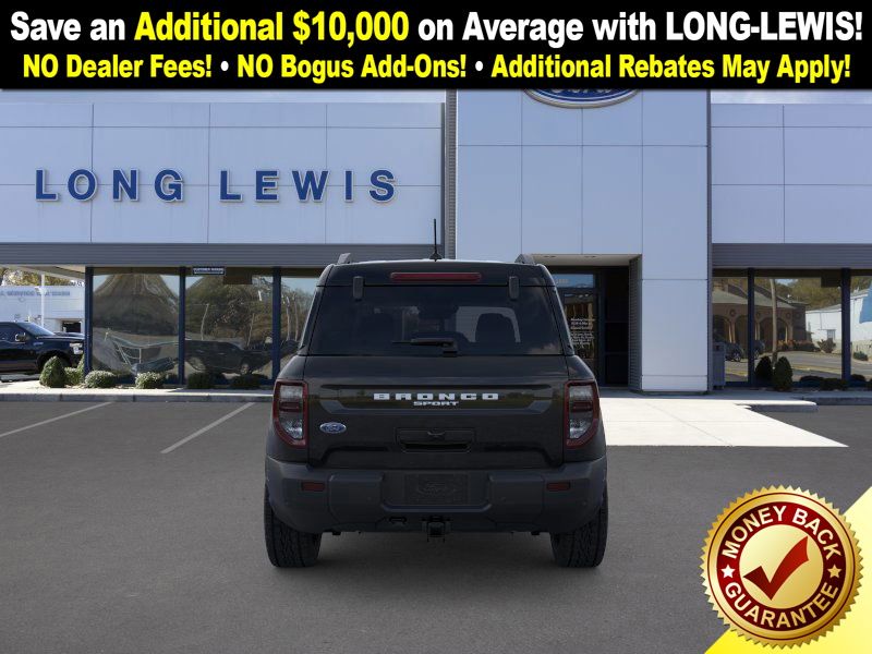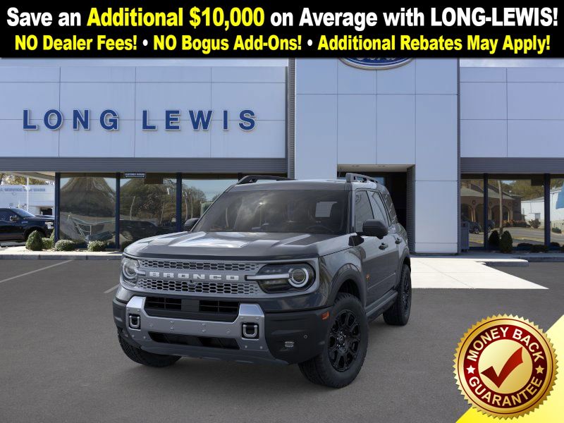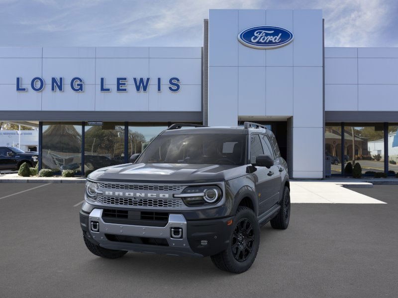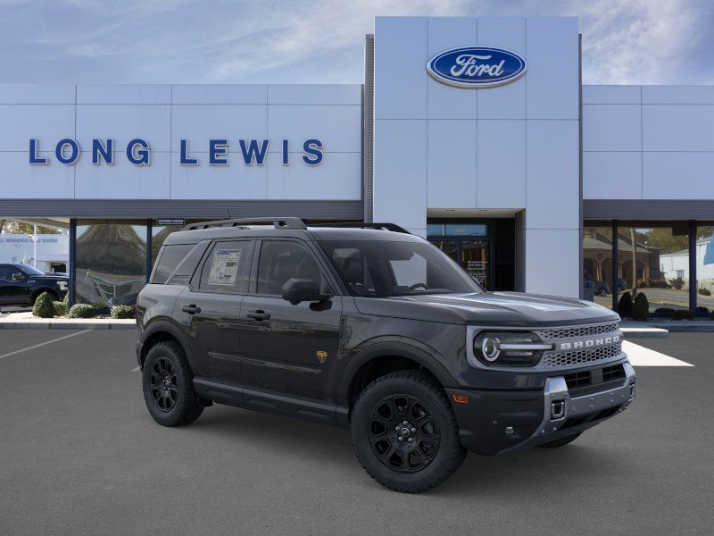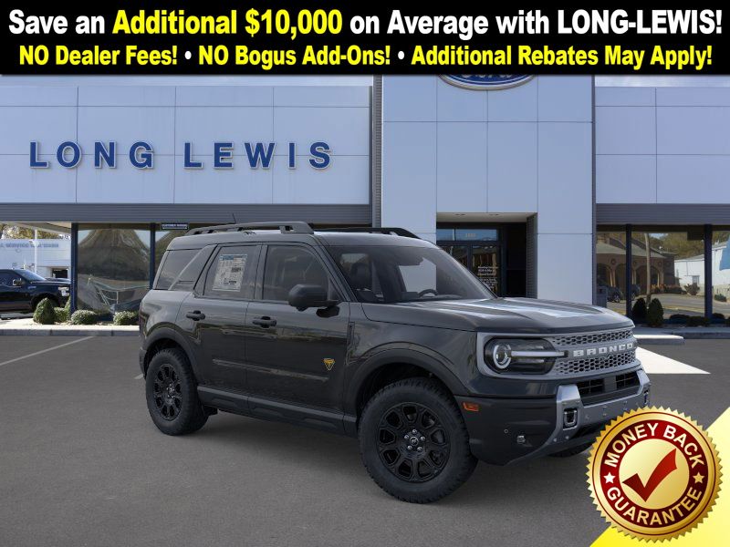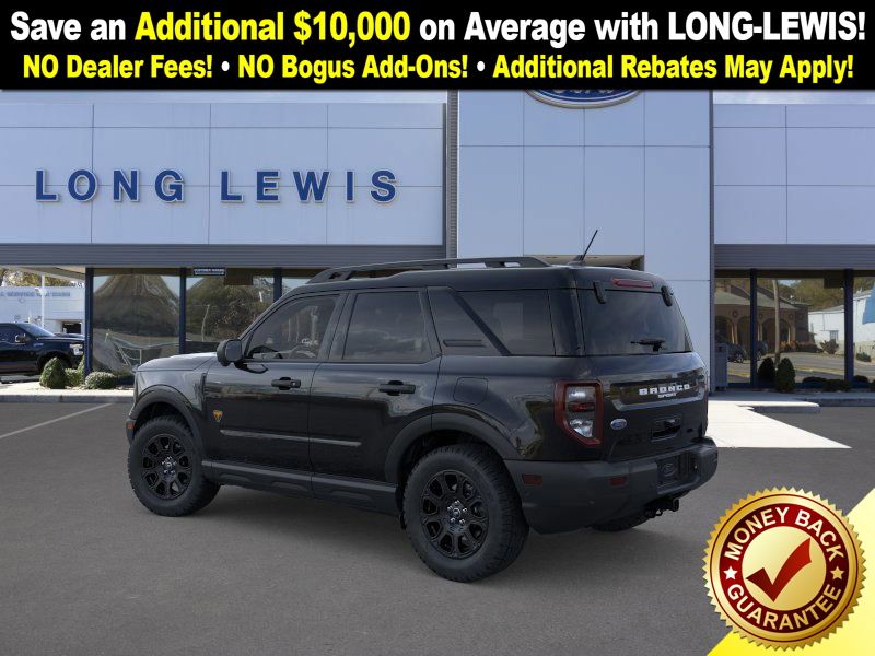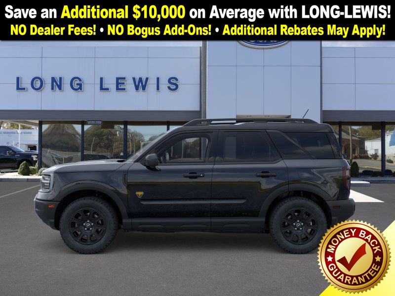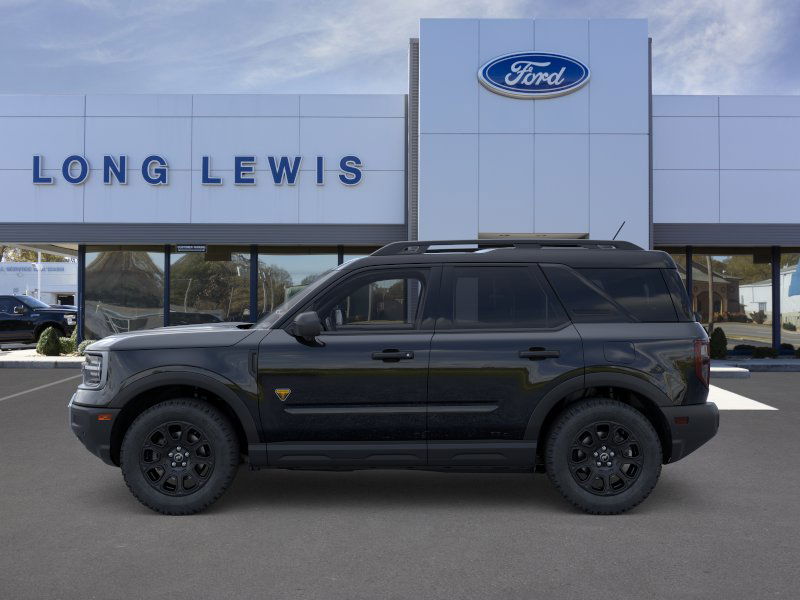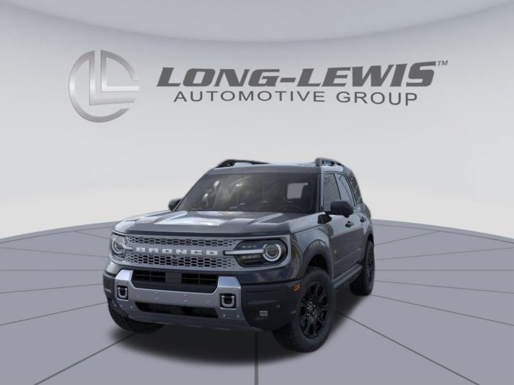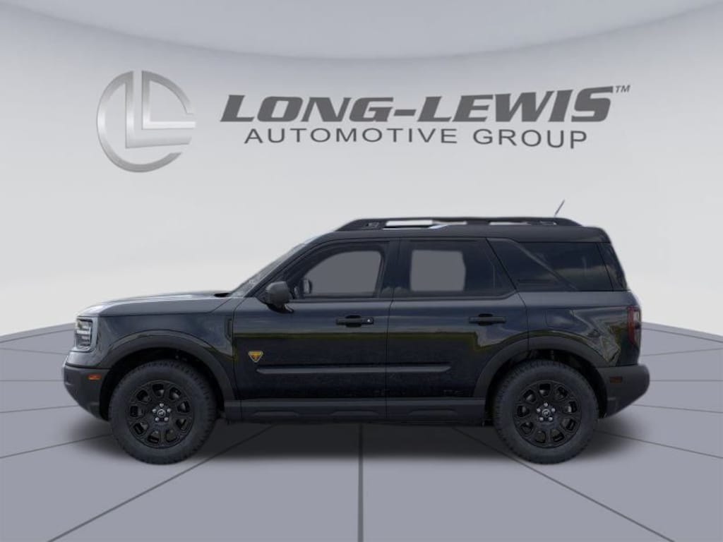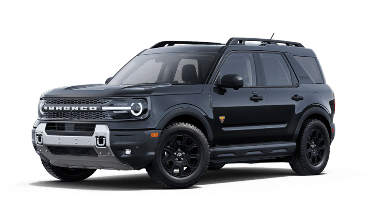 Shadow Black 2025 Ford Bronco Sport Badlands fctp 4WD 8-Speed Automatic EcoBoost 2.0L I4 GTDi DOHC Turbocharged VCT 4-Wheel Disc Brakes, 6 Speakers, ABS brakes, Air Conditioning, Alloy wheels, AM/FM radio: SiriusXM, AM/FM Stereo, Auto High-beam Headlights, Auto-dimming Rear-View mirror, Automatic temperature control, B&O Sound System by Bang & Olufsen, Badlands Tech Package, Brake assist, Compass, Connected Navigation, Delay-off headlights, Driver door bin, Driver vanity mirror, Dual front impact airbags, Dual front side impact airbags, Electronic Stability Control, Emergency communication system: SYNC 4 911 Assist, Four wheel independent suspension, Front anti-roll bar, Front Bucket Seats, Front Center Armrest, Front fog lights, Front License Plate Bracket, Front reading lights, Fully automatic headlights, Garage door transmitter, HD Radio, Heated door mirrors, Heated front seats, Heated steering wheel, Illuminated entry, Knee airbag, Leather Trimmed Front Bucket Seats, Low tire pressure warning, Memory seat, Occupant sensing airbag, Outside temperature display, Overhead airbag, Overhead console, Panic alarm, Passenger door bin, Passenger vanity mirror, Power door mirrors, Power driver seat, Power Moonroof, Power passenger seat, Power steering, Power windows, Radio data system, Rear anti-roll bar, Rear reading lights, Rear seat center armrest, Rear window defroster, Rear window wiper, Remote keyless entry, Security system, SiriusXM, Speed control, Speed-sensing steering, Speed-Sensitive Wipers, Split folding rear seat, Steering wheel mounted audio controls, SYNC 4 w/Enhanced Voice Recognition, Tachometer, Telescoping steering wheel, Tilt steering wheel, Traction control, Trip computer, Variably intermittent wipers, Wheels: 17" Matte Black-Painted Aluminum.