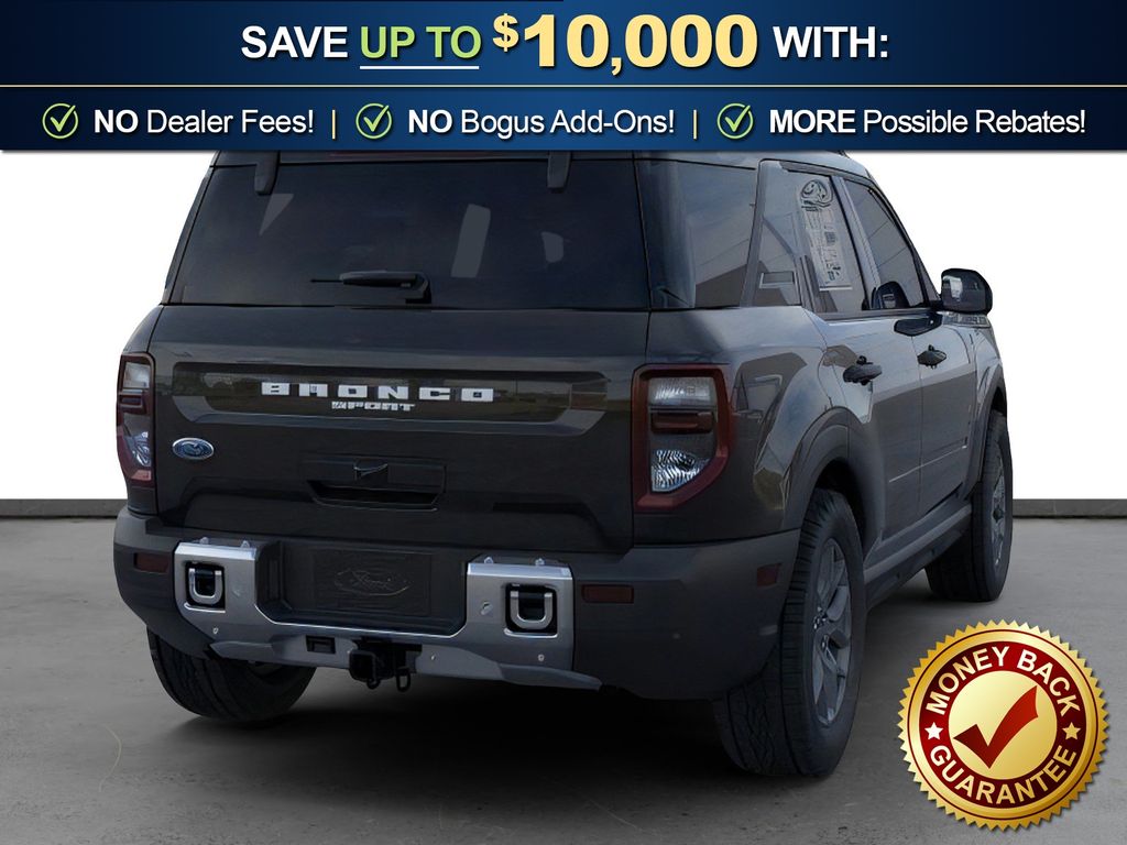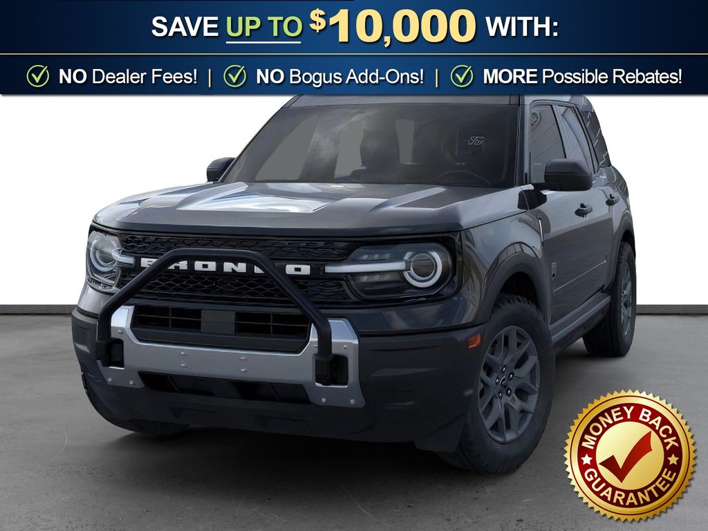 Shadow Black 2025 Ford Bronco Sport Big Bend FCT 4WD 8-Speed Automatic 1.5L EcoBoost 110V/400W AC Power Outlet, 2nd Row Carpeted Seatback, 4-Wheel Disc Brakes, 6 Speakers, ABS brakes, Air Conditioning, Alloy wheels, AM/FM radio: SiriusXM, AM/FM Stereo, Auto High-beam Headlights, Automatic temperature control, Auxiliary Switches & Wiring, Black Diamond Off-Road Package, Brake assist, Brush Guard, Cargo Management System (Shelf/Divider/Table), Cargo Mat, Class II Trailer Tow Pack w/Trailer Sway Control, Cloth w/Easy-to-Clean Front Bucket Seats, Compass, Delay-off headlights, Driver door bin, Driver vanity mirror, Dual front impact airbags, Dual front side impact airbags, Electronic Stability Control, Emergency communication system: SYNC 4 911 Assist, Equipment Group 200A, Fender Tie Downs, Four wheel independent suspension, Front & Rear Black Bumpers, Front anti-roll bar, Front Bucket Seats, Front Center Armrest, Front License Plate Bracket, Front reading lights, Fully automatic headlights, Heated door mirrors, Illuminated entry, Interior Grab Handle, Knee airbag, Low tire pressure warning, Occupant sensing airbag, Outside temperature display, Overhead airbag, Overhead console, Panic alarm, Passenger door bin, Passenger vanity mirror, Power door mirrors, Power steering, Power windows, Radio data system, Rear anti-roll bar, Rear Parking Sensors, Rear reading lights, Rear seat center armrest, Rear window defroster, Rear window wiper, Recovery Hooks, Remote keyless entry, Security system, SiriusXM, Speed control, Speed-sensing steering, Speed-Sensitive Wipers, Split folding rear seat, Steering wheel mounted audio controls, SYNC 4 w/Enhanced Voice Recognition, Tachometer, Telescoping steering wheel, Tilt steering wheel, Traction control, Trip computer, Variably intermittent wipers, Wheels: 17" Carbonized Gray Painted Aluminum, Wheels: 17" Carbonized Gray-Painted Aluminum.