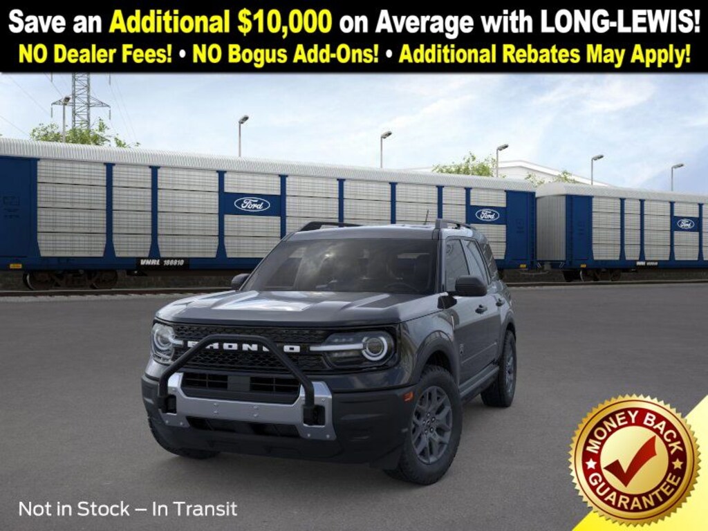 Dealer Discount of $2,261 off MSRP Priced below KBB Fair Purchase Price! Shadow Black 2025 Ford Bronco Sport Big Bend NFT 4WD 8-Speed Automatic 1.5L EcoBoost 110V/400W AC Power Outlet, 2nd Row Carpeted Seatback, 4-Wheel Disc Brakes, 6 Speakers, ABS brakes, Air Conditioning, Alloy wheels, AM/FM radio: SiriusXM, AM/FM Stereo, Auto High-beam Headlights, Automatic temperature control, Auxiliary Switches & Wiring, Black Diamond Off-Road Package, Brake assist, Brush Guard, Cargo Management System (Shelf/Divider/Table), Cargo Mat, Class II Trailer Tow Pack w/Trailer Sway Control, Cloth w/Easy-to-Clean Front Bucket Seats, Compass, Delay-off headlights, Driver door bin, Driver vanity mirror, Dual front impact airbags, Dual front side impact airbags, Electronic Stability Control, Emergency communication system: SYNC 4 911 Assist, Fender Tie Downs, Four wheel independent suspension, Front & Rear Black Bumpers, Front anti-roll bar, Front Bucket Seats, Front Center Armrest, Front License Plate Bracket, Front reading lights, Fully automatic headlights, Heated door mirrors, Illuminated entry, Interior Grab Handle, Knee airbag, Low tire pressure warning, Occupant sensing airbag, Outside temperature display, Overhead airbag, Overhead console, Panic alarm, Passenger door bin, Passenger vanity mirror, Power door mirrors, Power steering, Power windows, Radio data system, Rear anti-roll bar, Rear Parking Sensors, Rear reading lights, Rear seat center armrest, Rear window defroster, Rear window wiper, Recovery Hooks, Remote keyless entry, Security system, SiriusXM, Speed control, Speed-sensing steering, Speed-Sensitive Wipers, Split folding rear seat, Steering wheel mounted audio controls, SYNC 4 w/Enhanced Voice Recognition, Tachometer, Telescoping steering wheel, Tilt steering wheel, Traction control, Trip computer, Variably intermittent wipers, Wheels: 17" Carbonized Gray Painted Aluminum, Wheels: 17" Carbonized Gray-Painted Aluminum.