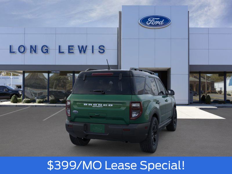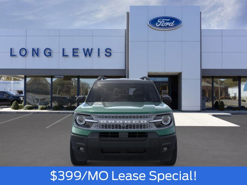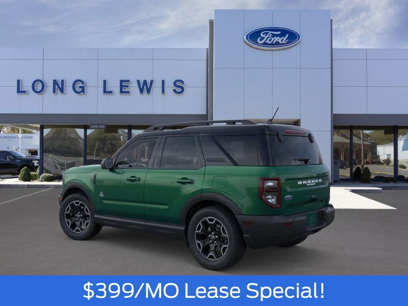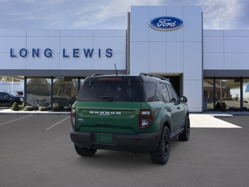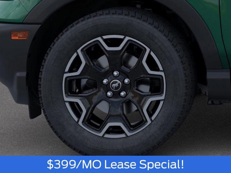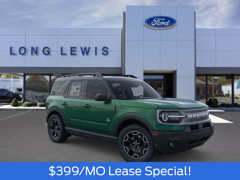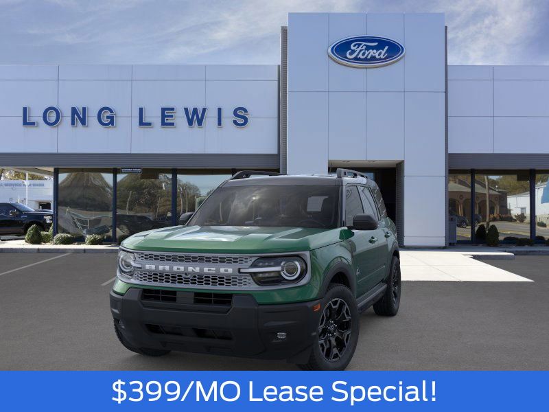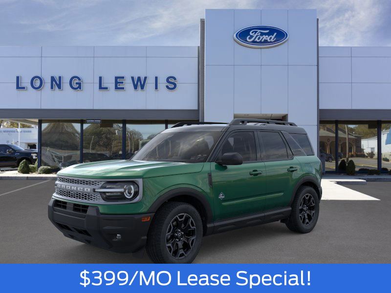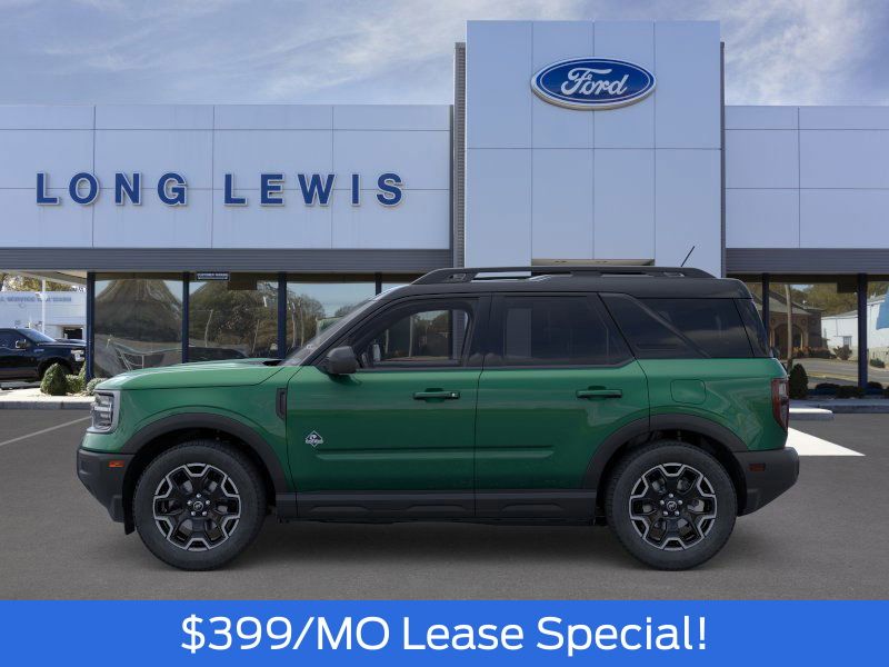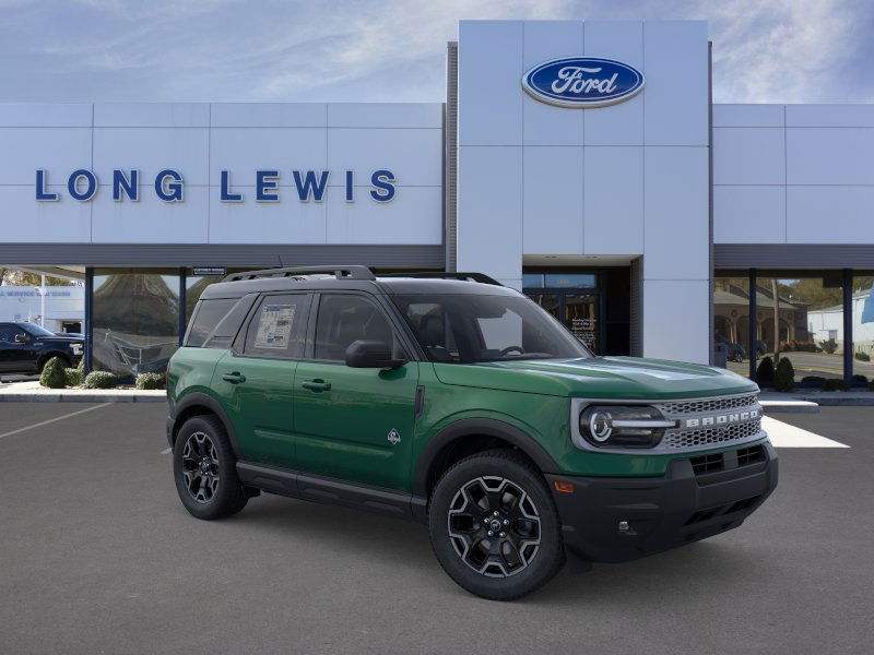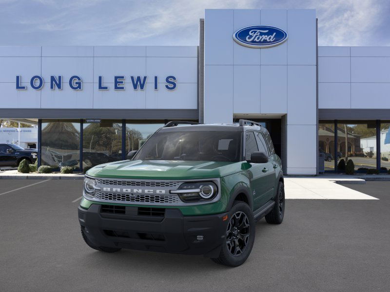 Eruption Green Metallic 2025 Ford Bronco Sport Outer Banks fctp 4WD 8-Speed Automatic 1.5L EcoBoost 4-Wheel Disc Brakes, 6 Speakers, ABS brakes, Air Conditioning, Alloy wheels, AM/FM radio: SiriusXM, AM/FM Stereo, Auto High-beam Headlights, Auto-dimming Rear-View mirror, Automatic temperature control, Brake assist, Compass, Delay-off headlights, Driver door bin, Driver vanity mirror, Dual front impact airbags, Dual front side impact airbags, Electronic Stability Control, Emergency communication system: SYNC 4 911 Assist, Four wheel independent suspension, Front anti-roll bar, Front Bucket Seats, Front Center Armrest, Front Driver/Passenger Seat Back Map Pockets, Front dual zone A/C, Front fog lights, Front License Plate Bracket, Front reading lights, Fully automatic headlights, Garage door transmitter, Heated door mirrors, Heated front seats, Heated steering wheel, Illuminated entry, Knee airbag, Low tire pressure warning, Memory seat, Occupant sensing airbag, Outside temperature display, Overhead airbag, Overhead console, Panic alarm, Passenger door bin, Passenger vanity mirror, Power door mirrors, Power driver seat, Power passenger seat, Power steering, Power windows, Premium Trimmed Front Bucket Seats w/Ebony/Roast, Radio data system, Rain sensing wipers, Rear anti-roll bar, Rear Parking Sensors, Rear reading lights, Rear seat center armrest, Rear window defroster, Rear window wiper, Remote keyless entry, Security system, SiriusXM, Speed control, Speed-sensing steering, Speed-Sensitive Wipers, Split folding rear seat, Steering wheel mounted audio controls, SYNC 4 w/Enhanced Voice Recognition, Tachometer, Telescoping steering wheel, Tilt steering wheel, Traction control, Trip computer, Variably intermittent wipers, Wheels: 18" Ebony Black-Painted Aluminum.