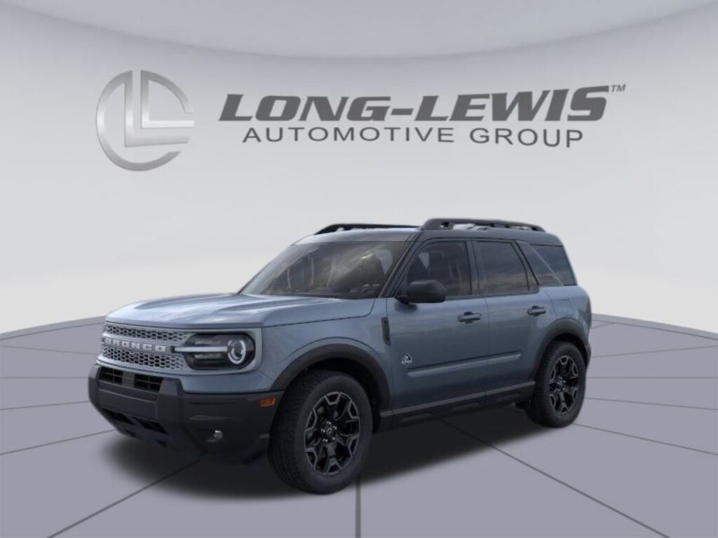 Azure Gray Metallic Tri-Coat 2025 Ford Bronco Sport Outer Banks 4WD 8-Speed Automatic 1.5L EcoBoost 4-Wheel Disc Brakes, 6 Speakers, ABS brakes, Air Conditioning, Alloy wheels, AM/FM radio: SiriusXM, AM/FM Stereo, Auto High-beam Headlights, Auto-dimming Rear-View mirror, Automatic temperature control, Brake assist, Compass, Delay-off headlights, Driver door bin, Driver vanity mirror, Dual front impact airbags, Dual front side impact airbags, Electronic Stability Control, Emergency communication system: SYNC 4 911 Assist, Four wheel independent suspension, Front anti-roll bar, Front Bucket Seats, Front Center Armrest, Front Driver/Passenger Seat Back Map Pockets, Front dual zone A/C, Front fog lights, Front License Plate Bracket, Front reading lights, Fully automatic headlights, Garage door transmitter, Heated door mirrors, Heated front seats, Heated steering wheel, Illuminated entry, Knee airbag, Low tire pressure warning, Memory seat, Occupant sensing airbag, Outside temperature display, Overhead airbag, Overhead console, Panic alarm, Passenger door bin, Passenger vanity mirror, Power door mirrors, Power driver seat, Power passenger seat, Power steering, Power windows, Premium Trimmed Front Bucket Seats w/Ebony/Roast, Premium Trimmed Front Bucket Seats w/Platinum Blue, Radio data system, Rain sensing wipers, Rear anti-roll bar, Rear Parking Sensors, Rear reading lights, Rear seat center armrest, Rear window defroster, Rear window wiper, Remote keyless entry, Security system, SiriusXM, Speed control, Speed-sensing steering, Speed-Sensitive Wipers, Split folding rear seat, Steering wheel mounted audio controls, SYNC 4 w/Enhanced Voice Recognition, Tachometer, Telescoping steering wheel, Tilt steering wheel, Traction control, Trip computer, Variably intermittent wipers, Wheels: 18" Ebony Black-Painted Aluminum.