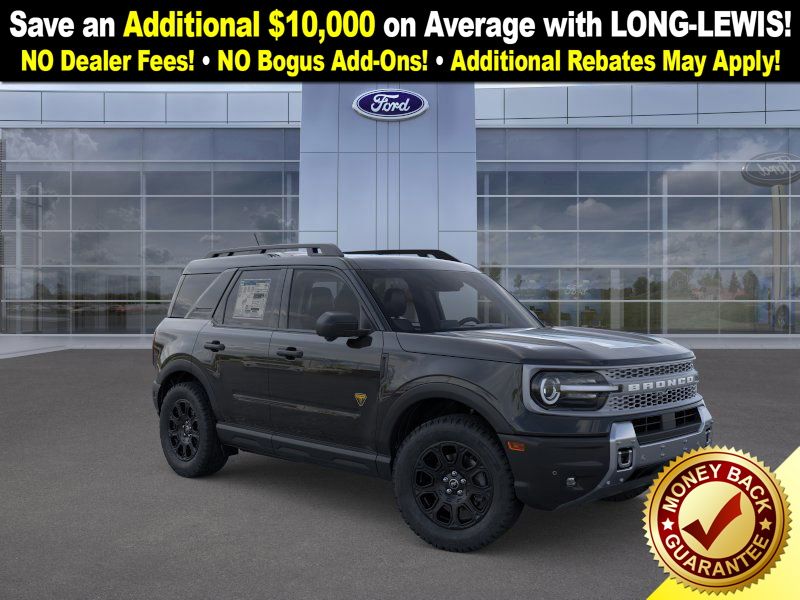 Badlands Tech Package (B&O Sound System by Bang & Olufsen, Connected Navigation, and HD Radio), Equipment Group 400A, 4-Wheel Disc Brakes, 6 Speakers, ABS brakes, Air Conditioning, Alloy wheels, AM/FM radio: SiriusXM, AM/FM Stereo, Auto High-beam Headlights, Auto-dimming Rear-View mirror, Automatic temperature control, Brake assist, Compass, Delay-off headlights, Driver door bin, Driver vanity mirror, Dual front impact airbags, Dual front side impact airbags, Electronic Stability Control, Emergency communication system: SYNC 4 911 Assist, Four wheel independent suspension, Front anti-roll bar, Front Bucket Seats, Front Center Armrest, Front fog lights, Front reading lights, Fully automatic headlights, Garage door transmitter, Heated door mirrors, Heated front seats, Heated steering wheel, Illuminated entry, Knee airbag, Leather Trimmed Front Bucket Seats, Low tire pressure warning, Memory seat, Occupant sensing airbag, Outside temperature display, Overhead airbag, Overhead console, Panic alarm, Passenger door bin, Passenger vanity mirror, Power door mirrors, Power driver seat, Power passenger seat, Power steering, Power windows, Radio data system, Rear anti-roll bar, Rear reading lights, Rear seat center armrest, Rear window defroster, Rear window wiper, Remote keyless entry, Security system, SiriusXM, Speed control, Speed-sensing steering, Speed-Sensitive Wipers, Split folding rear seat, Steering wheel mounted audio controls, SYNC 4 w/Enhanced Voice Recognition, Tachometer, Telescoping steering wheel, Tilt steering wheel, Traction control, Trip computer, Variably intermittent wipers, and Wheels: 17" Matte Black-Painted Aluminum. Price includes: $1000 - Final Days Mega Bonus Cash. Exp. 01/02/2026 $1500 - Retail Bonus Cash. Exp. 01/05/2026
