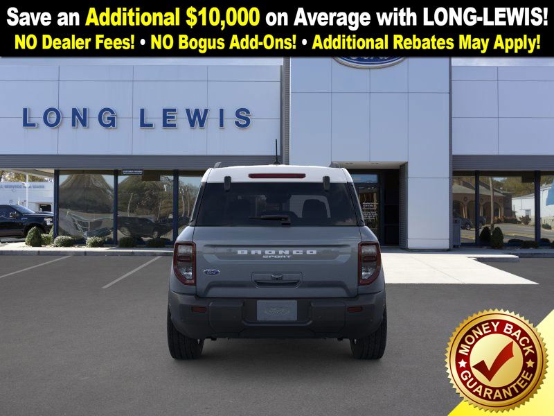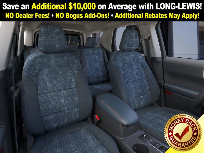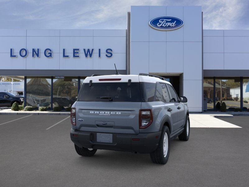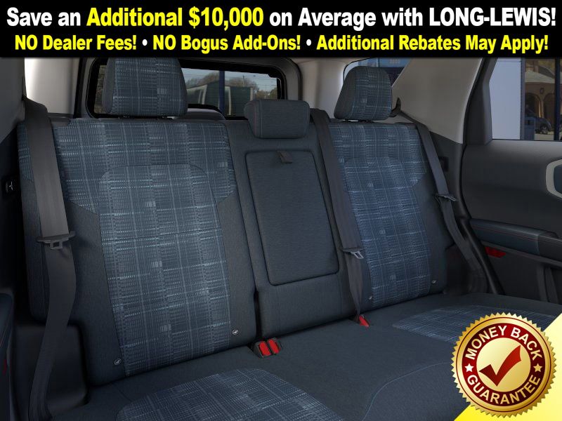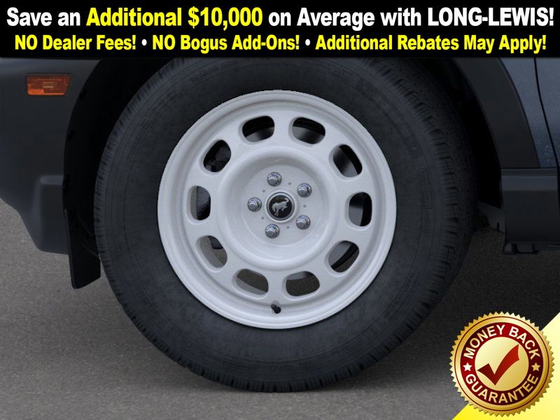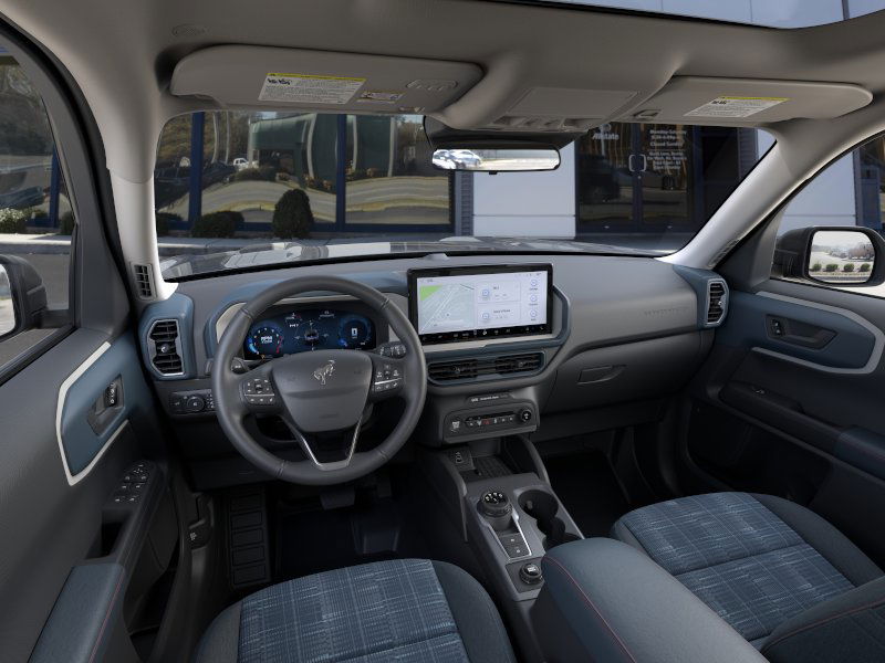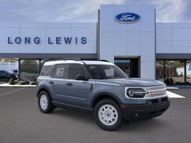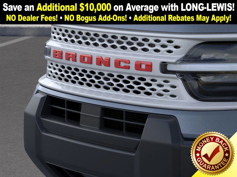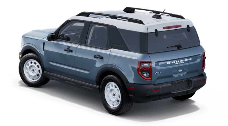 Azure Gray Metallic Tri-Coat 2025 Ford Bronco Sport Heritage fctp 4WD 8-Speed Automatic 1.5L EcoBoost 4-Wheel Disc Brakes, 6 Speakers, ABS brakes, Air Conditioning, Alloy wheels, AM/FM radio: SiriusXM, AM/FM Stereo, Auto High-beam Headlights, Automatic temperature control, Brake assist, Compass, Convenience Package, Delay-off headlights, Driver door bin, Driver vanity mirror, Dual front impact airbags, Dual front side impact airbags, Electronic Stability Control, Emergency communication system: SYNC 4 911 Assist, Four wheel independent suspension, Front anti-roll bar, Front Bucket Seats, Front Center Armrest, Front License Plate Bracket, Front reading lights, Fully automatic headlights, Heated 8-Way Power Driver's Seat, Heated door mirrors, Illuminated entry, Knee airbag, LED Fog Lamps, Low tire pressure warning, Occupant sensing airbag, Outside temperature display, Overhead airbag, Overhead console, Panic alarm, Passenger door bin, Passenger vanity mirror, Plaid Cloth Front Bucket Seats, Power door mirrors, Power Moonroof, Power steering, Power windows, Premium Wrapped Steering Wheel, Radio data system, Rear anti-roll bar, Rear Parking Sensors, Rear reading lights, Rear seat center armrest, Rear window defroster, Rear window wiper, Remote keyless entry, Security system, SiriusXM, Speed control, Speed-sensing steering, Speed-Sensitive Wipers, Split folding rear seat, Steering wheel mounted audio controls, SYNC 4 w/Enhanced Voice Recognition, Tachometer, Telescoping steering wheel, Tilt steering wheel, Traction control, Trip computer, Universal Garage Door Opener (UGDO), Variably intermittent wipers, Wheels: 17" Oxford White-Painted Aluminum.