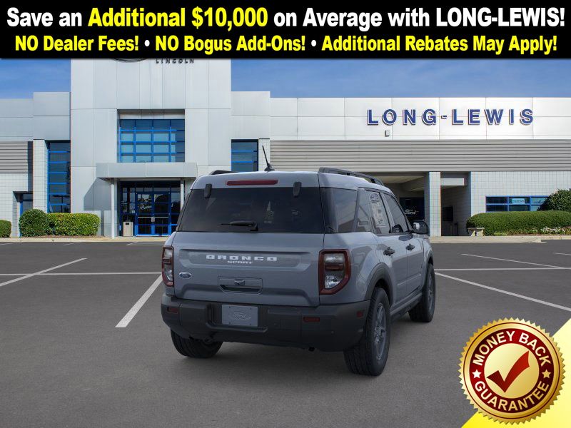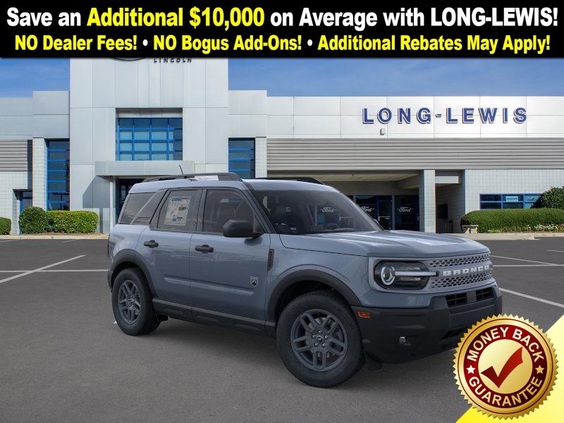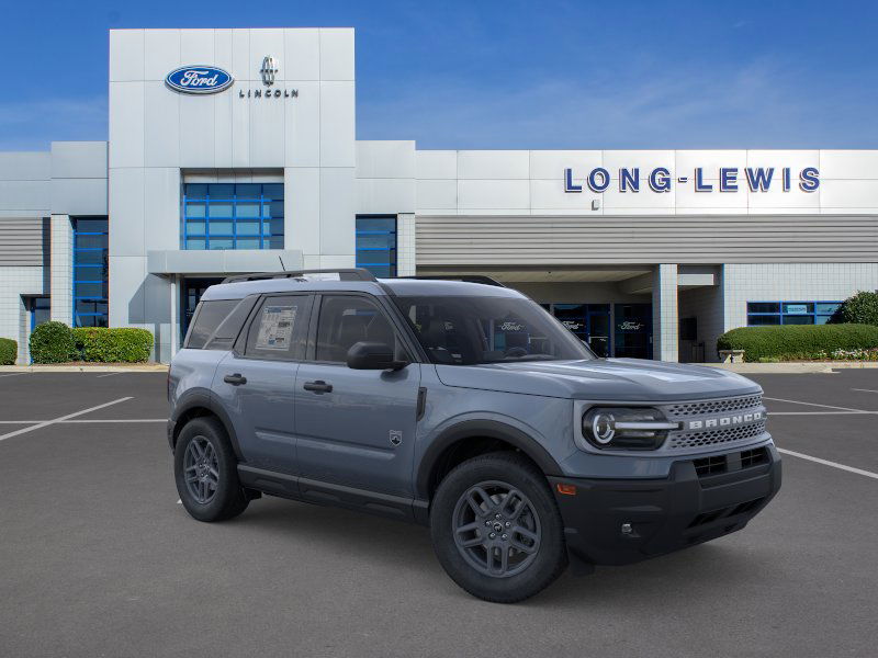Azure Gray Metallic Tri-Coat 2025 Ford Bronco Sport Big Bend FCT 4WD 8-Speed Automatic 1.5L EcoBoost 4-Wheel Disc Brakes, 6 Speakers, ABS brakes, Air Conditioning, Alloy wheels, AM/FM radio: SiriusXM, AM/FM Stereo, Auto High-beam Headlights, Automatic temperature control, Brake assist, Cloth w/Easy-to-Clean Front Bucket Seats, Compass, Convenience Package, Delay-off headlights, Driver door bin, Driver vanity mirror, Dual front impact airbags, Dual front side impact airbags, Electronic Stability Control, Emergency communication system: SYNC 4 911 Assist, Four wheel independent suspension, Front anti-roll bar, Front Bucket Seats, Front Center Armrest, Front Driver/Passenger Seat Back Map Pockets, Front License Plate Bracket, Front reading lights, Fully automatic headlights, Heated 8-Way Power Driver's Seat, Heated door mirrors, Illuminated entry, Knee airbag, LED Fog Lamps, Low tire pressure warning, Occupant sensing airbag, Outside temperature display, Overhead airbag, Overhead console, Panic alarm, Passenger door bin, Passenger vanity mirror, Power door mirrors, Power steering, Power windows, Premium Wrapped Steering Wheel, Radio data system, Rear anti-roll bar, Rear Parking Sensors, Rear reading lights, Rear seat center armrest, Rear window defroster, Rear window wiper, Remote keyless entry, Security system, SiriusXM, Speed control, Speed-sensing steering, Speed-Sensitive Wipers, Split folding rear seat, Steering wheel mounted audio controls, SYNC 4 w/Enhanced Voice Recognition, Tachometer, Telescoping steering wheel, Tilt steering wheel, Traction control, Trip computer, Universal Garage Door Opener (UGDO), Variably intermittent wipers, Wheels: 17" Carbonized Gray-Painted Aluminum.