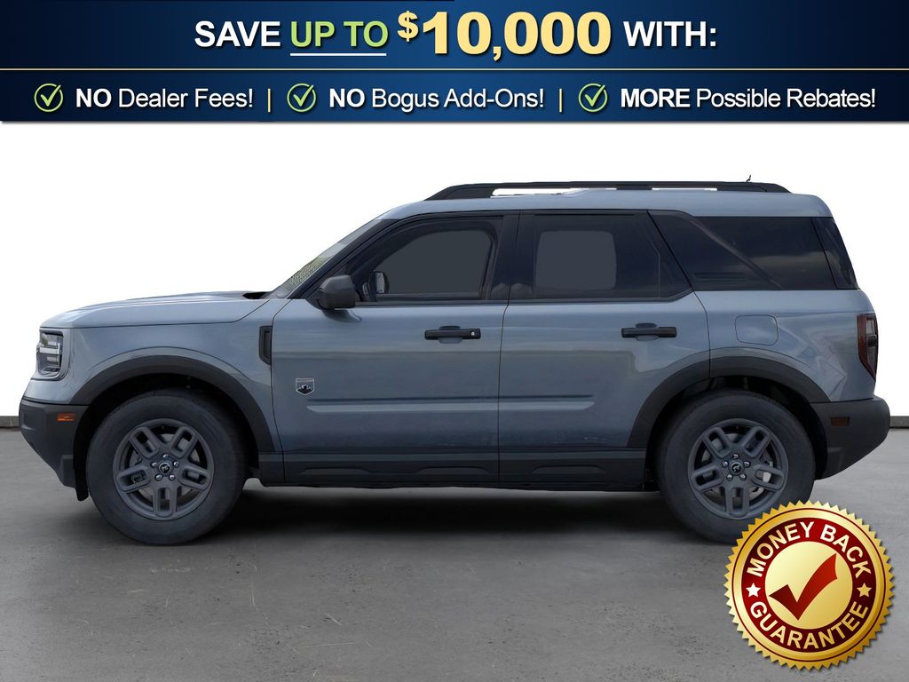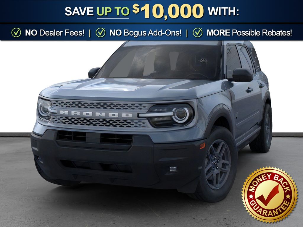 Dealer Discount of $1,590 off MSRP Azure Gray Metallic Tri-Coat 2025 Ford Bronco Sport Big Bend fctp 4WD 8-Speed Automatic 1.5L EcoBoost 4-Wheel Disc Brakes, 6 Speakers, ABS brakes, Air Conditioning, Alloy wheels, AM/FM radio: SiriusXM, AM/FM Stereo, Auto High-beam Headlights, Automatic temperature control, Brake assist, Cloth w/Easy-to-Clean Front Bucket Seats, Compass, Convenience Package, Delay-off headlights, Driver door bin, Driver vanity mirror, Dual front impact airbags, Dual front side impact airbags, Electronic Stability Control, Emergency communication system: SYNC 4 911 Assist, Equipment Group 200A, Four wheel independent suspension, Front anti-roll bar, Front Bucket Seats, Front Center Armrest, Front Driver/Passenger Seat Back Map Pockets, Front License Plate Bracket, Front reading lights, Fully automatic headlights, Heated 8-Way Power Driver's Seat, Heated door mirrors, Illuminated entry, Knee airbag, LED Fog Lamps, Low tire pressure warning, Occupant sensing airbag, Outside temperature display, Overhead airbag, Overhead console, Panic alarm, Passenger door bin, Passenger vanity mirror, Power door mirrors, Power steering, Power windows, Premium Wrapped Steering Wheel, Radio data system, Rear anti-roll bar, Rear Parking Sensors, Rear reading lights, Rear seat center armrest, Rear window defroster, Rear window wiper, Remote keyless entry, Security system, SiriusXM, Speed control, Speed-sensing steering, Speed-Sensitive Wipers, Split folding rear seat, Steering wheel mounted audio controls, SYNC 4 w/Enhanced Voice Recognition, Tachometer, Telescoping steering wheel, Tilt steering wheel, Traction control, Trip computer, Universal Garage Door Opener (UGDO), Variably intermittent wipers, Wheels: 17" Carbonized Gray-Painted Aluminum.