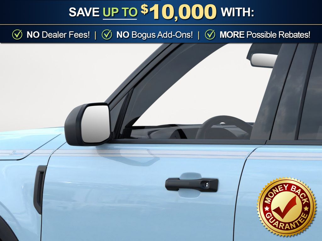 Robins Egg Blue 2025 Ford Bronco Sport Heritage fctp 4WD 8-Speed Automatic 1.5L EcoBoost 4-Wheel Disc Brakes, 6 Speakers, ABS brakes, Air Conditioning, Alloy wheels, AM/FM radio: SiriusXM, AM/FM Stereo, Auto High-beam Headlights, Automatic temperature control, Brake assist, Compass, Convenience Package, Delay-off headlights, Driver door bin, Driver vanity mirror, Dual front impact airbags, Dual front side impact airbags, Electronic Stability Control, Emergency communication system: SYNC 4 911 Assist, Four wheel independent suspension, Front anti-roll bar, Front Bucket Seats, Front Center Armrest, Front Driver/Passenger Seat Back Map Pockets, Front License Plate Bracket, Front reading lights, Fully automatic headlights, Heated 8-Way Power Driver's Seat, Heated door mirrors, Illuminated entry, Knee airbag, LED Fog Lamps, Low tire pressure warning, Occupant sensing airbag, Outside temperature display, Overhead airbag, Overhead console, Panic alarm, Passenger door bin, Passenger vanity mirror, Plaid Cloth Front Bucket Seats, Power door mirrors, Power Moonroof, Power steering, Power windows, Premium Wrapped Steering Wheel, Radio data system, Rear anti-roll bar, Rear Parking Sensors, Rear reading lights, Rear seat center armrest, Rear window defroster, Rear window wiper, Remote keyless entry, Security system, SiriusXM, Speed control, Speed-sensing steering, Speed-Sensitive Wipers, Split folding rear seat, Steering wheel mounted audio controls, SYNC 4 w/Enhanced Voice Recognition, Tachometer, Telescoping steering wheel, Tilt steering wheel, Traction control, Trip computer, Universal Garage Door Opener (UGDO), Variably intermittent wipers, Wheels: 17" Oxford White-Painted Aluminum.