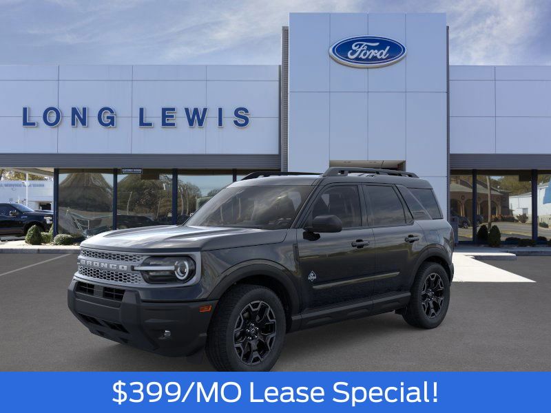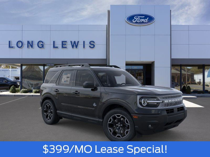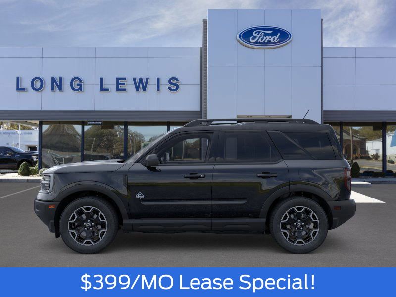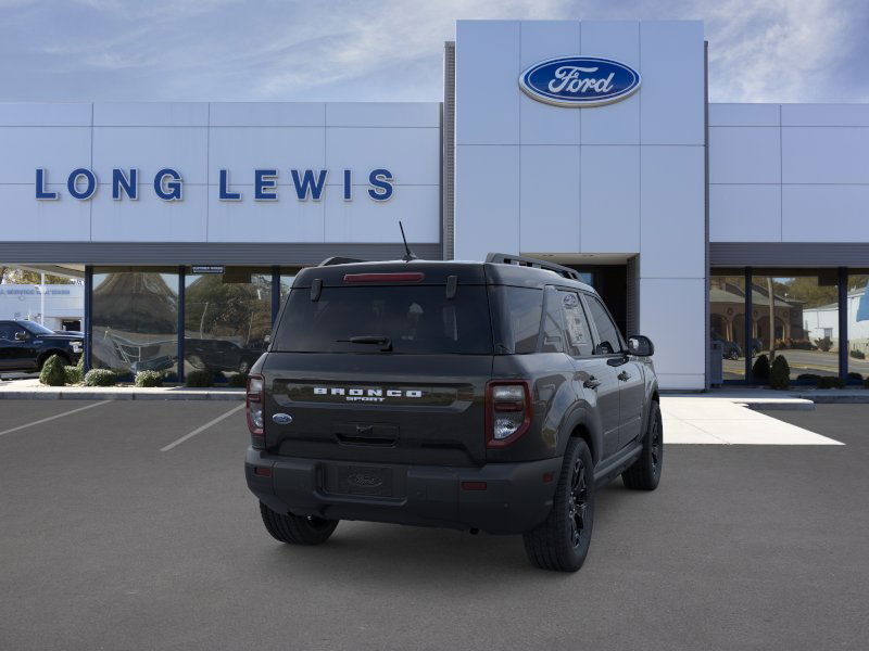 Shadow Black 2025 Ford Bronco Sport Outer Banks fctp 4WD 8-Speed Automatic 1.5L EcoBoost 4-Wheel Disc Brakes, 6 Speakers, ABS brakes, Air Conditioning, Alloy wheels, AM/FM radio: SiriusXM, AM/FM Stereo, Auto High-beam Headlights, Auto-dimming Rear-View mirror, Automatic temperature control, Brake assist, Compass, Delay-off headlights, Driver door bin, Driver vanity mirror, Dual front impact airbags, Dual front side impact airbags, Electronic Stability Control, Emergency communication system: SYNC 4 911 Assist, Four wheel independent suspension, Front anti-roll bar, Front Bucket Seats, Front Center Armrest, Front Driver/Passenger Seat Back Map Pockets, Front dual zone A/C, Front fog lights, Front License Plate Bracket, Front reading lights, Fully automatic headlights, Garage door transmitter, Heated door mirrors, Heated front seats, Heated steering wheel, Illuminated entry, Knee airbag, Low tire pressure warning, Memory seat, Occupant sensing airbag, Outside temperature display, Overhead airbag, Overhead console, Panic alarm, Passenger door bin, Passenger vanity mirror, Power door mirrors, Power driver seat, Power passenger seat, Power steering, Power windows, Premium Trimmed Front Bucket Seats w/Ebony/Roast, Radio data system, Rain sensing wipers, Rear anti-roll bar, Rear Parking Sensors, Rear reading lights, Rear seat center armrest, Rear window defroster, Rear window wiper, Remote keyless entry, Security system, SiriusXM, Speed control, Speed-sensing steering, Speed-Sensitive Wipers, Split folding rear seat, Steering wheel mounted audio controls, SYNC 4 w/Enhanced Voice Recognition, Tachometer, Telescoping steering wheel, Tilt steering wheel, Traction control, Trip computer, Variably intermittent wipers, Wheels: 18" Ebony Black-Painted Aluminum.