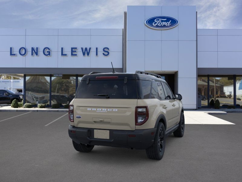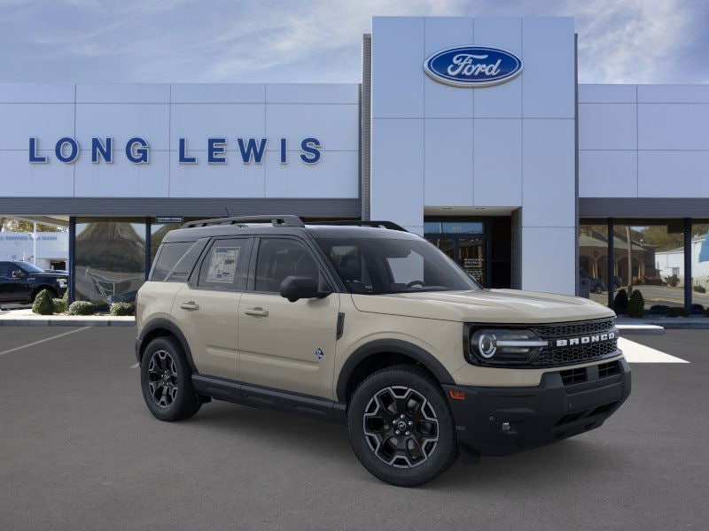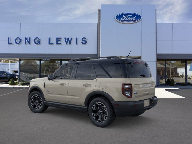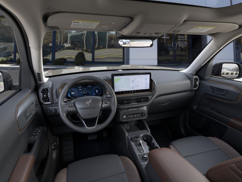 Desert Sand 2025 Ford Bronco Sport Outer Banks fctp 4WD 8-Speed Automatic 1.5L EcoBoost 360-Degree Camera w/Trail & Split View, 4-Wheel Disc Brakes, 6 Speakers, ABS brakes, Air Conditioning, Alloy wheels, AM/FM radio: SiriusXM, AM/FM Stereo, Auto High-beam Headlights, Auto-dimming Rear-View mirror, Automatic temperature control, B&O Sound System by Bang & Olufsen, Brake assist, Compass, Connected Navigation, Delay-off headlights, Driver door bin, Driver vanity mirror, Dual front impact airbags, Dual front side impact airbags, Electronic Stability Control, Emergency communication system: SYNC 4 911 Assist, Equipment Group 300A, Four wheel independent suspension, Front anti-roll bar, Front Bucket Seats, Front Center Armrest, Front Driver/Passenger Seat Back Map Pockets, Front dual zone A/C, Front fog lights, Front License Plate Bracket, Front Parking Sensors, Front reading lights, Fully automatic headlights, Garage door transmitter, HD Radio, Heated door mirrors, Heated front seats, Heated steering wheel, Illuminated entry, Knee airbag, Low tire pressure warning, Memory seat, Occupant sensing airbag, Outer Banks Tech Package+, Outside temperature display, Overhead airbag, Overhead console, Panic alarm, Passenger door bin, Passenger vanity mirror, Power door mirrors, Power driver seat, Power Moonroof, Power passenger seat, Power steering, Power windows, Premium Trimmed Front Bucket Seats w/Ebony/Roast, Radio data system, Rain sensing wipers, Rear anti-roll bar, Rear Parking Sensors, Rear reading lights, Rear seat center armrest, Rear window defroster, Rear window wiper, Remote keyless entry, Reverse Brake Assist, Security system, SiriusXM, Speed control, Speed-sensing steering, Speed-Sensitive Wipers, Split folding rear seat, Steering wheel mounted audio controls, SYNC 4 w/Enhanced Voice Recognition, Tachometer, Telescoping steering wheel, Tilt steering wheel, Traction control, Trip computer, Variably intermittent wipers, Wheels: 18" Ebony Black-Painted Aluminum.