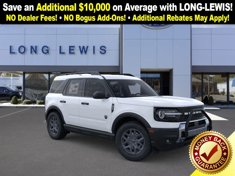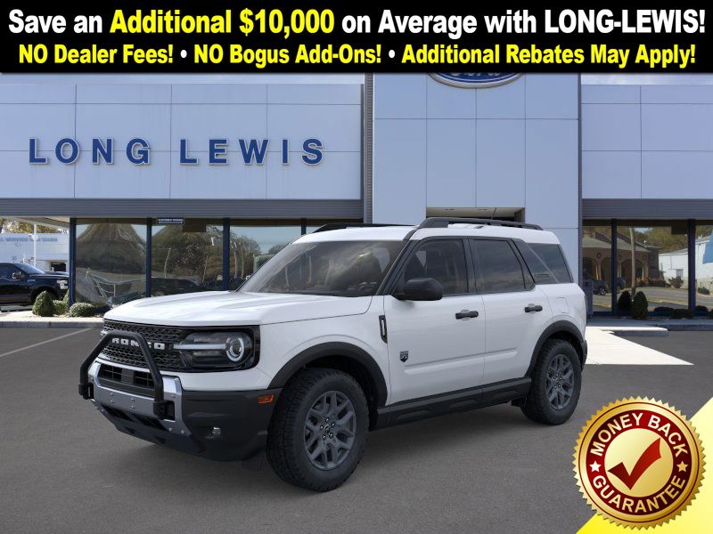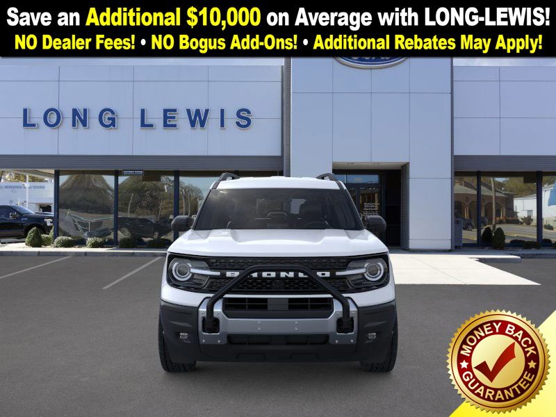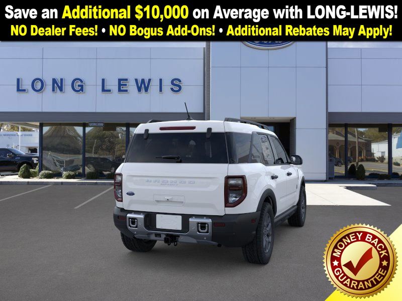 Oxford White 2025 Ford Bronco Sport Big Bend NFT 4WD 8-Speed Automatic 1.5L EcoBoost 110V/400W AC Power Outlet, 2nd Row Carpeted Seatback, 4-Wheel Disc Brakes, 6 Speakers, ABS brakes, Air Conditioning, Alloy wheels, AM/FM radio: SiriusXM, AM/FM Stereo, Auto High-beam Headlights, Automatic temperature control, Auxiliary Switches & Wiring, Black Diamond Off-Road Package, Brake assist, Brush Guard, Cargo Management System (Shelf/Divider/Table), Cargo Mat, Class II Trailer Tow Pack w/Trailer Sway Control, Cloth w/Easy-to-Clean Front Bucket Seats, Compass, Convenience Package, Delay-off headlights, Driver door bin, Driver vanity mirror, Dual front impact airbags, Dual front side impact airbags, Electronic Stability Control, Emergency communication system: SYNC 4 911 Assist, Fender Tie Downs, Four wheel independent suspension, Front & Rear Black Bumpers, Front anti-roll bar, Front Bucket Seats, Front Center Armrest, Front Driver/Passenger Seat Back Map Pockets, Front License Plate Bracket, Front reading lights, Fully automatic headlights, Heated 8-Way Power Driver's Seat, Heated door mirrors, Illuminated entry, Interior Grab Handle, Knee airbag, LED Fog Lamps, Low tire pressure warning, Occupant sensing airbag, Outside temperature display, Overhead airbag, Overhead console, Panic alarm, Passenger door bin, Passenger vanity mirror, Power door mirrors, Power steering, Power windows, Premium Wrapped Steering Wheel, Radio data system, Rear anti-roll bar, Rear Parking Sensors, Rear reading lights, Rear seat center armrest, Rear window defroster, Rear window wiper, Recovery Hooks, Remote keyless entry, Security system, SiriusXM, Speed control, Speed-sensing steering, Speed-Sensitive Wipers, Split folding rear seat, Steering wheel mounted audio controls, SYNC 4 w/Enhanced Voice Recognition, Tachometer, Telescoping steering wheel, Tilt steering wheel, Traction control, Trip computer, Universal Garage Door Opener (UGDO), Variably intermittent wipers, Wheels: 17" Carbonized Gray Painted Aluminum, Wheels: 17" Carbonized Gray-Painted Aluminum.