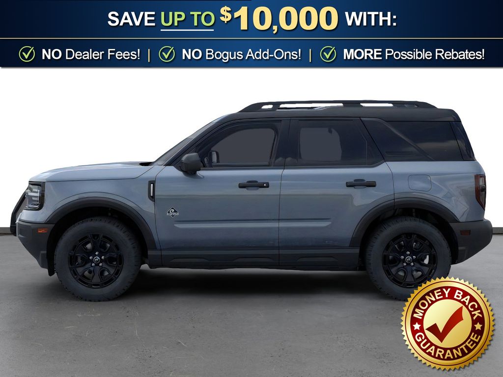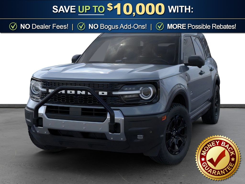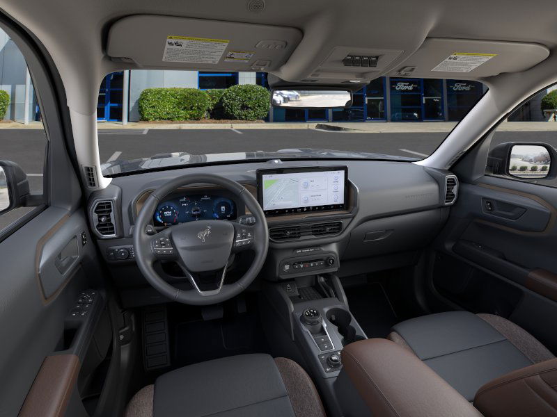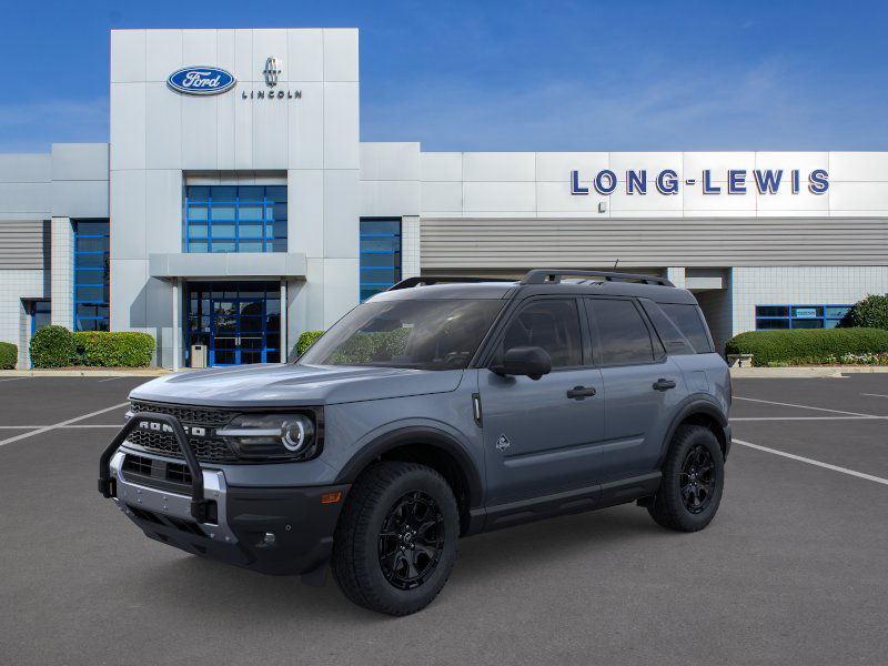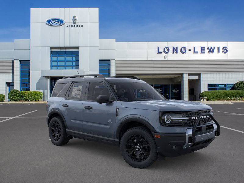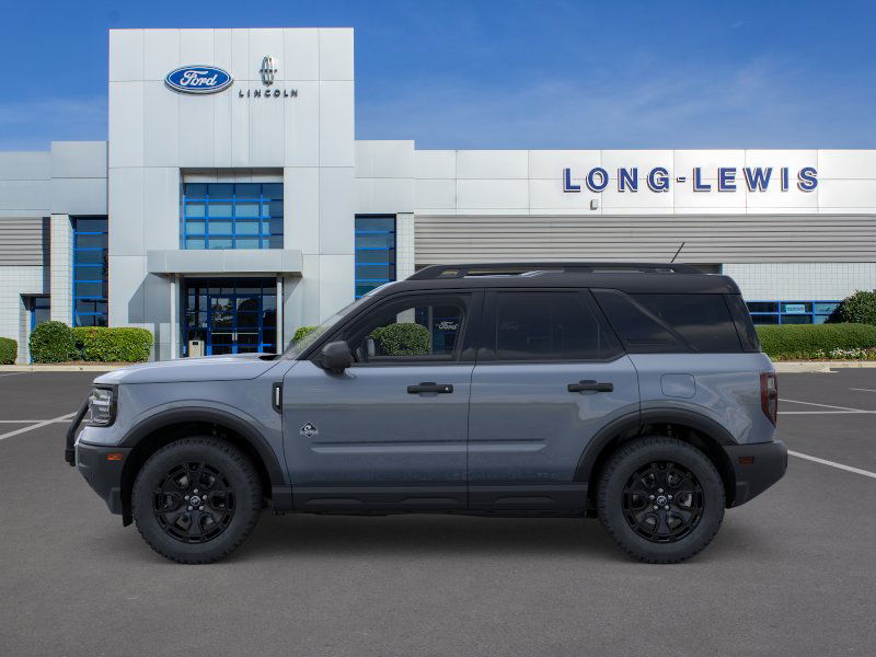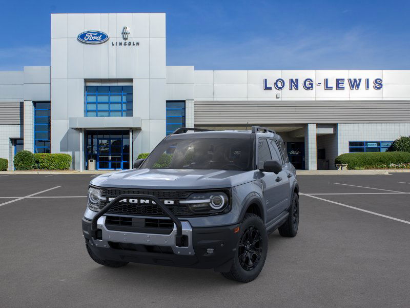 Azure Gray Metallic Tri-Coat 2025 Ford Bronco Sport Outer Banks FCT 4WD 8-Speed Automatic 1.5L EcoBoost 110V/400W AC Power Outlet, 2nd Row Carpeted Seatback, 360-Degree Camera w/Trail & Split View, 4-Wheel Disc Brakes, 6 Speakers, ABS brakes, Air Conditioning, Alloy wheels, AM/FM radio: SiriusXM, AM/FM Stereo, Auto High-beam Headlights, Auto-dimming Rear-View mirror, Automatic temperature control, Auxiliary Switches & Wiring, B&O Sound System by Bang & Olufsen, Brake assist, Brush Guard, Class II Trailer Tow Pack w/Trailer Sway Control, Compass, Connected Navigation, Delay-off headlights, Driver door bin, Driver vanity mirror, Dual front impact airbags, Dual front side impact airbags, Electronic Stability Control, Emergency communication system: SYNC 4 911 Assist, Equipment Group 300A, Fender Tie Downs, Four wheel independent suspension, Front & Rear Black Bumpers, Front anti-roll bar, Front Bucket Seats, Front Center Armrest, Front Driver/Passenger Seat Back Map Pockets, Front dual zone A/C, Front fog lights, Front License Plate Bracket, Front Parking Sensors, Front reading lights, Fully automatic headlights, Garage door transmitter, HD Radio, Heated door mirrors, Heated front seats, Heated steering wheel, High Clearance Fender Flares, HOSS 2.0 Off-Road Suspension, Illuminated entry, Interior Grab Handle, Knee airbag, Low tire pressure warning, Memory seat, Occupant sensing airbag, Outer Banks Tech Package+, Outside temperature display, Overhead airbag, Overhead console, Panic alarm, Passenger door bin, Passenger vanity mirror, Power door mirrors, Power driver seat, Power passenger seat, Power steering, Power windows, Premium Trimmed Front Bucket Seats w/Ebony/Roast, Radio data system, Rain sensing wipers, Rear anti-roll bar, Rear Parking Sensors, Rear reading lights, Rear seat center armrest, Rear window defroster, Rear window wiper, Recovery Hooks, Remote keyless entry, Reverse Brake Assist, Sasquatch Outer Banks Package, Security system, SiriusXM, Speed control, Speed-sensing steering, Speed-Sensitive Wipers, Split folding rear seat, Steering wheel mounted audio controls, SYNC 4 w/Enhanced Voice Recognition, Tachometer, Telescoping steering wheel, Tilt steering wheel, Traction control, Trail Control for Off-Road, Trip computer, Variably intermittent wipers, Wheels: 17" Ebony Black-Painted Aluminum, Wheels: 18" Ebony Black-Painted Aluminum.