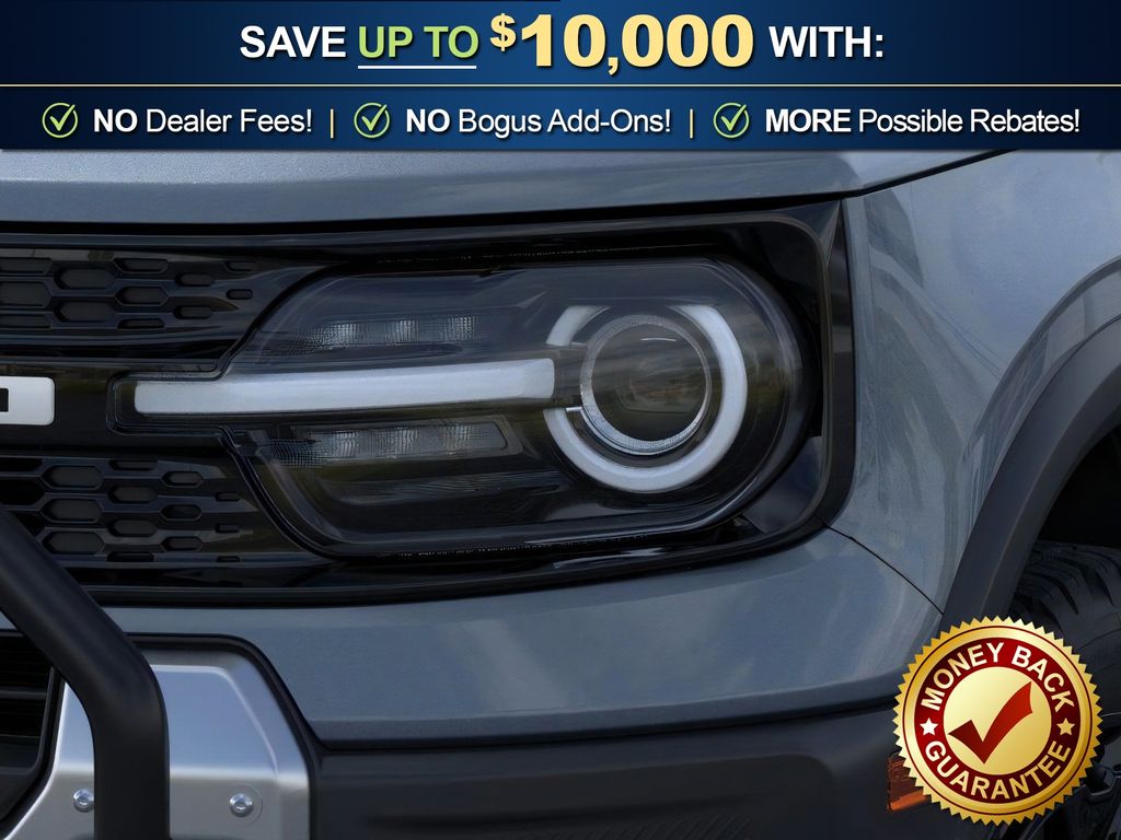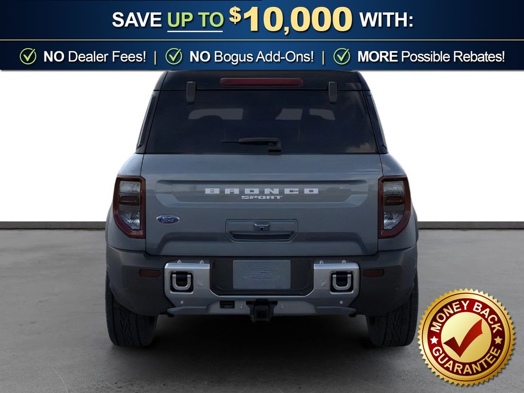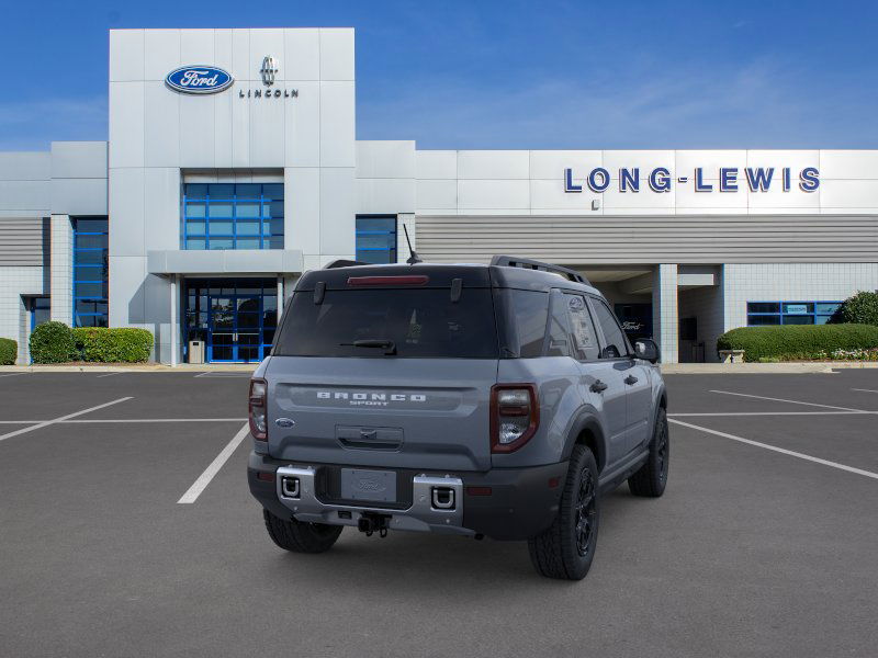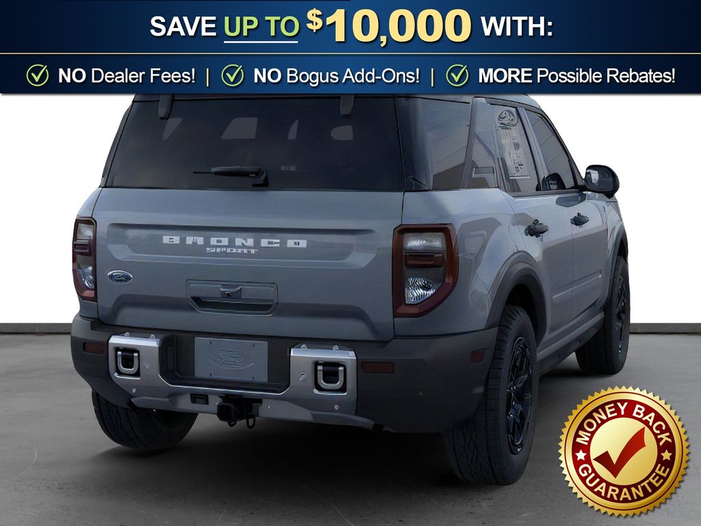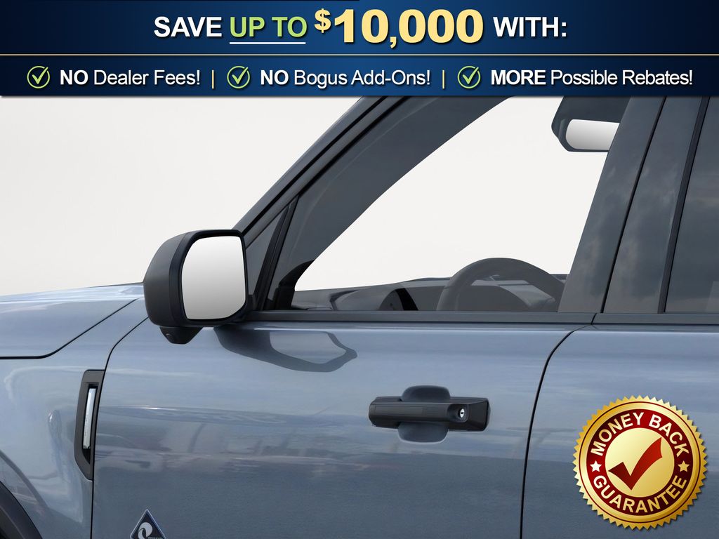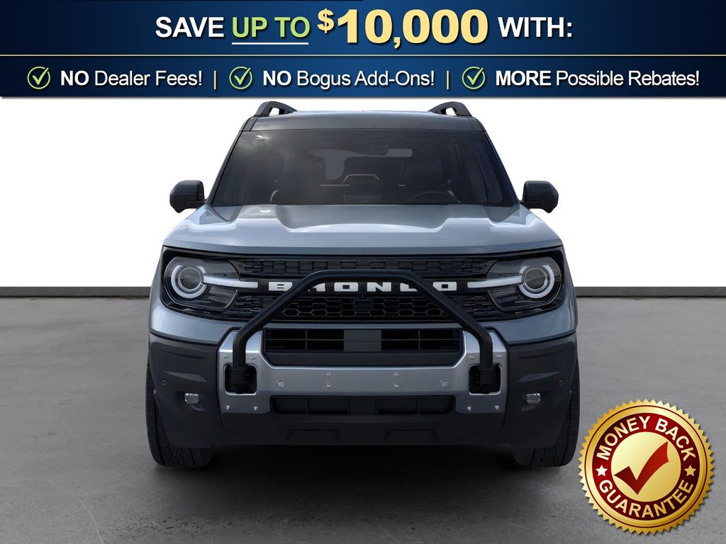Azure Gray Metallic Tri-Coat 2025 Ford Bronco Sport Outer Banks FCT 4WD 8-Speed Automatic 1.5L EcoBoost 110V/400W AC Power Outlet, 2nd Row Carpeted Seatback, 360-Degree Camera w/Trail & Split View, 4-Wheel Disc Brakes, 6 Speakers, ABS brakes, Air Conditioning, Alloy wheels, AM/FM radio: SiriusXM, AM/FM Stereo, Auto High-beam Headlights, Auto-dimming Rear-View mirror, Automatic temperature control, Auxiliary Switches & Wiring, B&O Sound System by Bang & Olufsen, Brake assist, Brush Guard, Class II Trailer Tow Pack w/Trailer Sway Control, Compass, Connected Navigation, Delay-off headlights, Driver door bin, Driver vanity mirror, Dual front impact airbags, Dual front side impact airbags, Electronic Stability Control, Emergency communication system: SYNC 4 911 Assist, Equipment Group 300A, Fender Tie Downs, Four wheel independent suspension, Front & Rear Black Bumpers, Front anti-roll bar, Front Bucket Seats, Front Center Armrest, Front Driver/Passenger Seat Back Map Pockets, Front dual zone A/C, Front fog lights, Front License Plate Bracket, Front Parking Sensors, Front reading lights, Fully automatic headlights, Garage door transmitter, HD Radio, Heated door mirrors, Heated front seats, Heated steering wheel, High Clearance Fender Flares, HOSS 2.0 Off-Road Suspension, Illuminated entry, Interior Grab Handle, Knee airbag, Low tire pressure warning, Memory seat, Occupant sensing airbag, Outer Banks Tech Package+, Outside temperature display, Overhead airbag, Overhead console, Panic alarm, Passenger door bin, Passenger vanity mirror, Power door mirrors, Power driver seat, Power passenger seat, Power steering, Power windows, Premium Trimmed Front Bucket Seats w/Ebony/Roast, Radio data system, Rain sensing wipers, Rear anti-roll bar, Rear Parking Sensors, Rear reading lights, Rear seat center armrest, Rear window defroster, Rear window wiper, Recovery Hooks, Remote keyless entry, Reverse Brake Assist, Sasquatch Outer Banks Package, Security system, SiriusXM, Speed control, Speed-sensing steering, Speed-Sensitive Wipers, Split folding rear seat, Steering wheel mounted audio controls, SYNC 4 w/Enhanced Voice Recognition, Tachometer, Telescoping steering wheel, Tilt steering wheel, Traction control, Trail Control for Off-Road, Trip computer, Variably intermittent wipers, Wheels: 17" Ebony Black-Painted Aluminum, Wheels: 18" Ebony Black-Painted Aluminum.