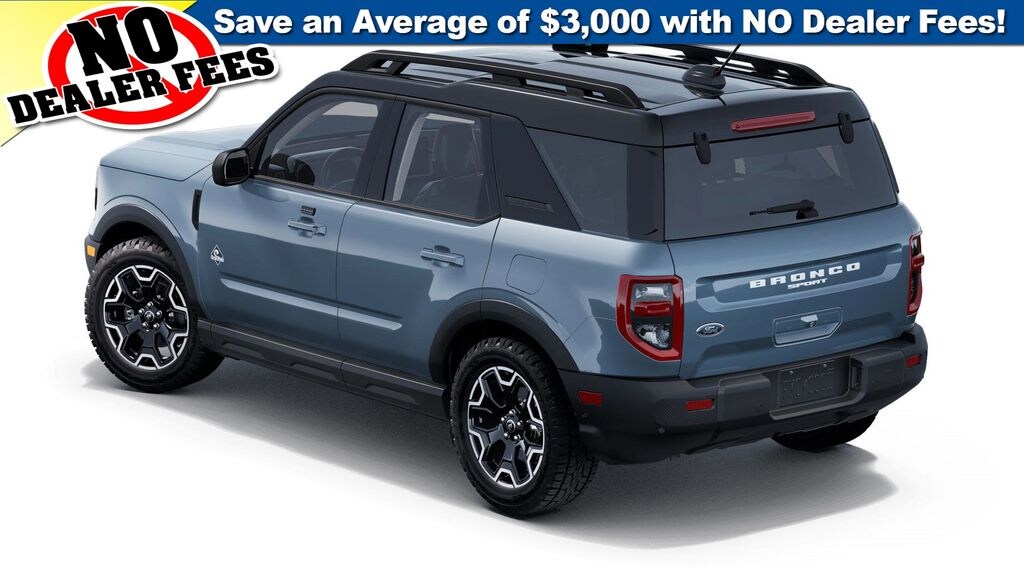 Azure Gray Metallic Tri-Coat 2025 Ford Bronco Sport Outer Banks 4WD 8-Speed Automatic 1.5L EcoBoost 4-Wheel Disc Brakes, 6 Speakers, ABS brakes, Air Conditioning, Alloy wheels, AM/FM radio: SiriusXM, AM/FM Stereo, Auto High-beam Headlights, Auto-dimming Rear-View mirror, Automatic temperature control, Brake assist, Compass, Delay-off headlights, Driver door bin, Driver vanity mirror, Dual front impact airbags, Dual front side impact airbags, Electronic Stability Control, Emergency communication system: SYNC 4 911 Assist, Four wheel independent suspension, Front anti-roll bar, Front Bucket Seats, Front Center Armrest, Front Driver/Passenger Seat Back Map Pockets, Front dual zone A/C, Front fog lights, Front License Plate Bracket, Front reading lights, Fully automatic headlights, Garage door transmitter, Heated door mirrors, Heated front seats, Heated steering wheel, Illuminated entry, Knee airbag, Low tire pressure warning, Memory seat, Occupant sensing airbag, Outside temperature display, Overhead airbag, Overhead console, Panic alarm, Passenger door bin, Passenger vanity mirror, Power door mirrors, Power driver seat, Power passenger seat, Power steering, Power windows, Premium Trimmed Front Bucket Seats w/Ebony/Roast, Radio data system, Rain sensing wipers, Rear anti-roll bar, Rear Parking Sensors, Rear reading lights, Rear seat center armrest, Rear window defroster, Rear window wiper, Remote keyless entry, Security system, SiriusXM, Speed control, Speed-sensing steering, Speed-Sensitive Wipers, Split folding rear seat, Steering wheel mounted audio controls, SYNC 4 w/Enhanced Voice Recognition, Tachometer, Telescoping steering wheel, Tilt steering wheel, Traction control, Trip computer, Variably intermittent wipers, Wheels: 18" Ebony Black-Painted Aluminum.