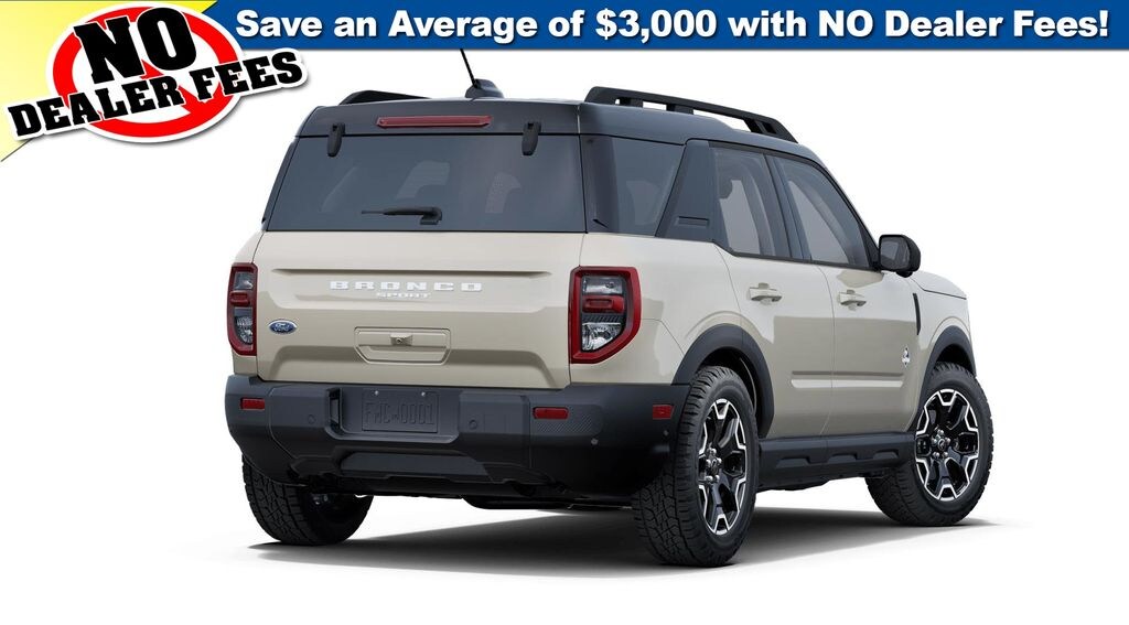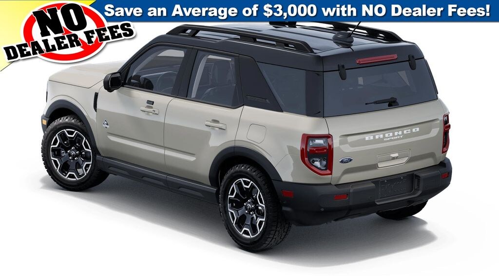 Desert Sand 2025 Ford Bronco Sport Outer Banks 4WD 8-Speed Automatic 1.5L EcoBoost 360-Degree Camera w/Trail & Split View, 4-Wheel Disc Brakes, 6 Speakers, ABS brakes, Air Conditioning, Alloy wheels, AM/FM radio: SiriusXM, AM/FM Stereo, Auto High-beam Headlights, Auto-dimming Rear-View mirror, Automatic temperature control, B&O Sound System by Bang & Olufsen, Brake assist, Compass, Connected Navigation, Delay-off headlights, Driver door bin, Driver vanity mirror, Dual front impact airbags, Dual front side impact airbags, Electronic Stability Control, Emergency communication system: SYNC 4 911 Assist, Four wheel independent suspension, Front anti-roll bar, Front Bucket Seats, Front Center Armrest, Front Driver/Passenger Seat Back Map Pockets, Front dual zone A/C, Front fog lights, Front License Plate Bracket, Front Parking Sensors, Front reading lights, Fully automatic headlights, Garage door transmitter, HD Radio, Heated door mirrors, Heated front seats, Heated steering wheel, Illuminated entry, Knee airbag, Low tire pressure warning, Memory seat, Occupant sensing airbag, Outer Banks Tech Package+, Outside temperature display, Overhead airbag, Overhead console, Panic alarm, Passenger door bin, Passenger vanity mirror, Power door mirrors, Power driver seat, Power passenger seat, Power steering, Power windows, Premium Trimmed Front Bucket Seats w/Ebony/Roast, Premium Trimmed Front Bucket Seats w/Platinum Blue, Radio data system, Rain sensing wipers, Rear anti-roll bar, Rear Parking Sensors, Rear reading lights, Rear seat center armrest, Rear window defroster, Rear window wiper, Remote keyless entry, Reverse Brake Assist, Security system, SiriusXM, Speed control, Speed-sensing steering, Speed-Sensitive Wipers, Split folding rear seat, Steering wheel mounted audio controls, SYNC 4 w/Enhanced Voice Recognition, Tachometer, Telescoping steering wheel, Tilt steering wheel, Traction control, Trip computer, Variably intermittent wipers, Wheels: 18" Ebony Black-Painted Aluminum.