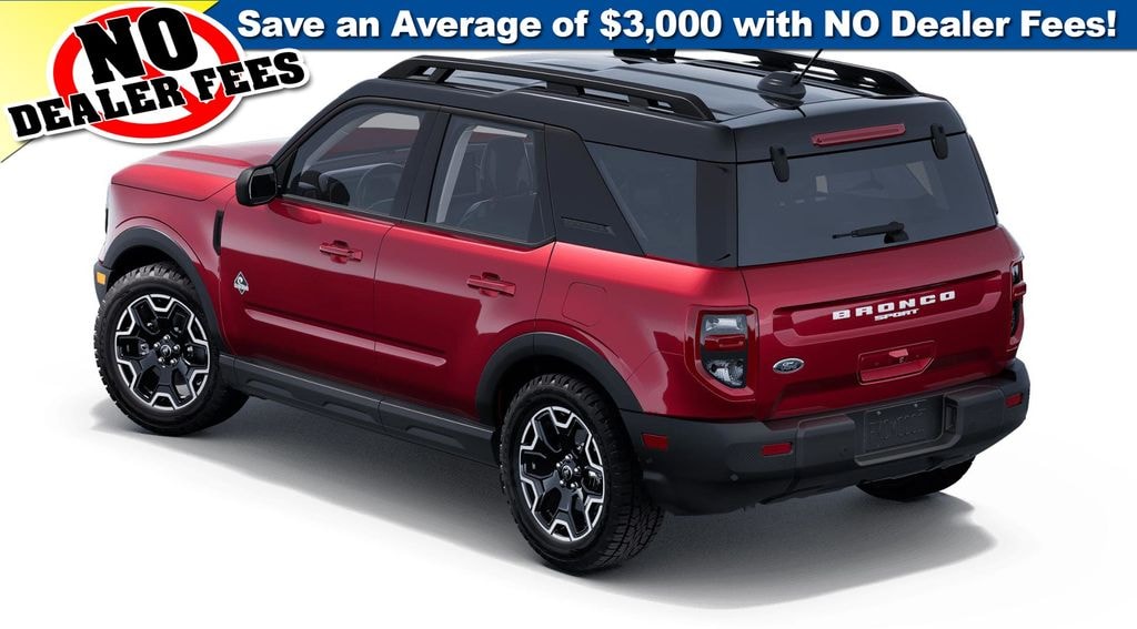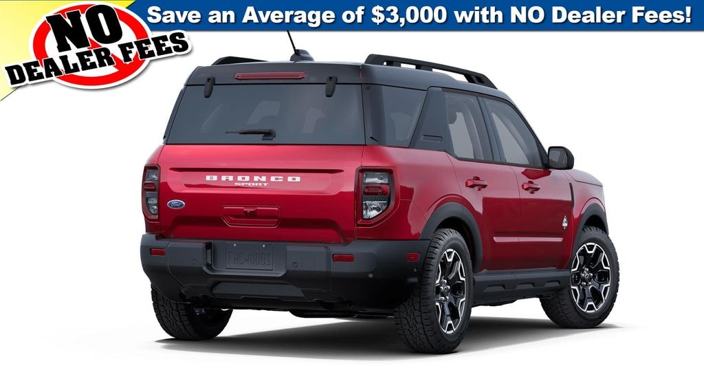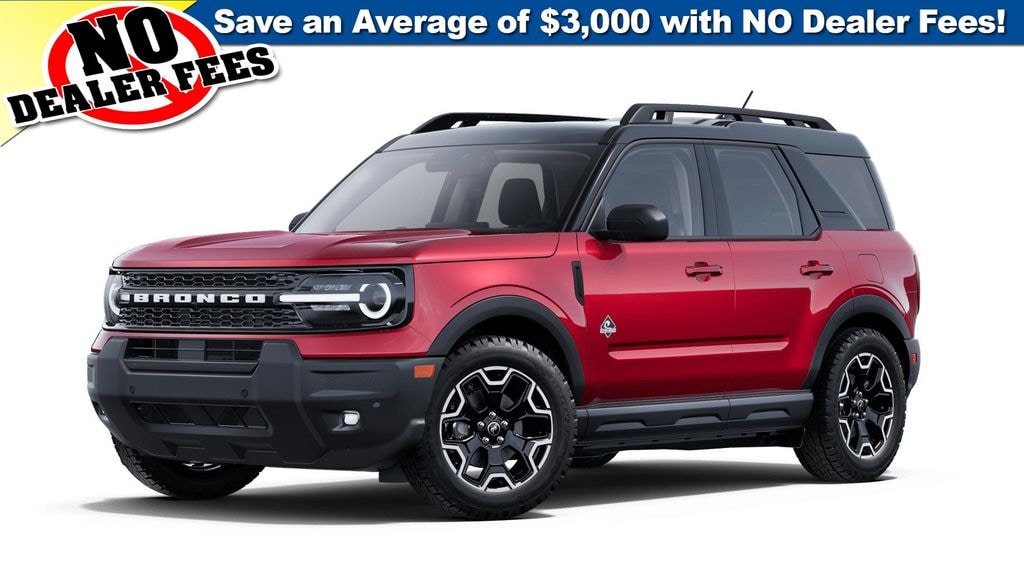 Dealer Discount of $1,994 off MSRP Ruby Red Metallic Tinted Clearcoat 2025 Ford Bronco Sport Outer Banks 4WD 8-Speed Automatic 1.5L EcoBoost 4-Wheel Disc Brakes, 6 Speakers, ABS brakes, Air Conditioning, Alloy wheels, AM/FM radio: SiriusXM, AM/FM Stereo, Auto High-beam Headlights, Auto-dimming Rear-View mirror, Automatic temperature control, Brake assist, Compass, Delay-off headlights, Driver door bin, Driver vanity mirror, Dual front impact airbags, Dual front side impact airbags, Electronic Stability Control, Emergency communication system: SYNC 4 911 Assist, Four wheel independent suspension, Front anti-roll bar, Front Bucket Seats, Front Center Armrest, Front Driver/Passenger Seat Back Map Pockets, Front dual zone A/C, Front fog lights, Front License Plate Bracket, Front reading lights, Fully automatic headlights, Garage door transmitter, Heated door mirrors, Heated front seats, Heated steering wheel, Illuminated entry, Knee airbag, Low tire pressure warning, Memory seat, Occupant sensing airbag, Outside temperature display, Overhead airbag, Overhead console, Panic alarm, Passenger door bin, Passenger vanity mirror, Power door mirrors, Power driver seat, Power passenger seat, Power steering, Power windows, Premium Trimmed Front Bucket Seats w/Ebony/Roast, Radio data system, Rain sensing wipers, Rear anti-roll bar, Rear Parking Sensors, Rear reading lights, Rear seat center armrest, Rear window defroster, Rear window wiper, Remote keyless entry, Security system, SiriusXM, Speed control, Speed-sensing steering, Speed-Sensitive Wipers, Split folding rear seat, Steering wheel mounted audio controls, SYNC 4 w/Enhanced Voice Recognition, Tachometer, Telescoping steering wheel, Tilt steering wheel, Traction control, Trip computer, Variably intermittent wipers, Wheels: 18" Ebony Black-Painted Aluminum.