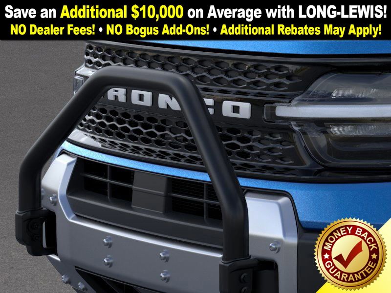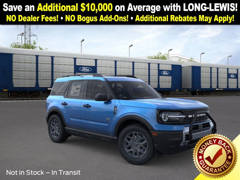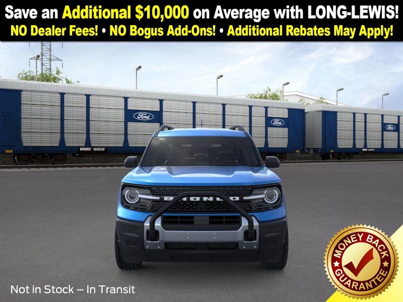 Velocity Blue Metallic 2025 Ford Bronco Sport Big Bend NFT 4WD 8-Speed Automatic 1.5L EcoBoost 110V/400W AC Power Outlet, 2nd Row Carpeted Seatback, 4-Wheel Disc Brakes, 6 Speakers, ABS brakes, Air Conditioning, Alloy wheels, AM/FM radio: SiriusXM, AM/FM Stereo, Auto High-beam Headlights, Automatic temperature control, Auxiliary Switches & Wiring, Black Diamond Off-Road Package, Brake assist, Brush Guard, Cargo Management System (Shelf/Divider/Table), Cargo Mat, Class II Trailer Tow Pack w/Trailer Sway Control, Cloth w/Easy-to-Clean Front Bucket Seats, Compass, Delay-off headlights, Driver door bin, Driver vanity mirror, Dual front impact airbags, Dual front side impact airbags, Electronic Stability Control, Emergency communication system: SYNC 4 911 Assist, Fender Tie Downs, Four wheel independent suspension, Front & Rear Black Bumpers, Front anti-roll bar, Front Bucket Seats, Front Center Armrest, Front License Plate Bracket, Front reading lights, Fully automatic headlights, Heated door mirrors, Illuminated entry, Interior Grab Handle, Knee airbag, Low tire pressure warning, Occupant sensing airbag, Outside temperature display, Overhead airbag, Overhead console, Panic alarm, Passenger door bin, Passenger vanity mirror, Power door mirrors, Power steering, Power windows, Radio data system, Rear anti-roll bar, Rear Parking Sensors, Rear reading lights, Rear seat center armrest, Rear window defroster, Rear window wiper, Recovery Hooks, Remote keyless entry, Security system, SiriusXM, Speed control, Speed-sensing steering, Speed-Sensitive Wipers, Split folding rear seat, Steering wheel mounted audio controls, SYNC 4 w/Enhanced Voice Recognition, Tachometer, Telescoping steering wheel, Tilt steering wheel, Traction control, Trip computer, Variably intermittent wipers, Wheels: 17" Carbonized Gray Painted Aluminum, Wheels: 17" Carbonized Gray-Painted Aluminum.