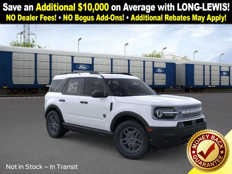 Oxford White 2025 Ford Bronco Sport Big Bend NFT 4WD 8-Speed Automatic 1.5L EcoBoost 4-Wheel Disc Brakes, 6 Speakers, ABS brakes, Air Conditioning, Alloy wheels, AM/FM radio: SiriusXM, AM/FM Stereo, Auto High-beam Headlights, Automatic temperature control, Brake assist, Cloth w/Easy-to-Clean Front Bucket Seats, Compass, Delay-off headlights, Driver door bin, Driver vanity mirror, Dual front impact airbags, Dual front side impact airbags, Electronic Stability Control, Emergency communication system: SYNC 4 911 Assist, Four wheel independent suspension, Front anti-roll bar, Front Bucket Seats, Front Center Armrest, Front License Plate Bracket, Front reading lights, Fully automatic headlights, Heated door mirrors, Illuminated entry, Knee airbag, Low tire pressure warning, Occupant sensing airbag, Outside temperature display, Overhead airbag, Overhead console, Panic alarm, Passenger door bin, Passenger vanity mirror, Power door mirrors, Power steering, Power windows, Radio data system, Rear anti-roll bar, Rear Parking Sensors, Rear reading lights, Rear seat center armrest, Rear window defroster, Rear window wiper, Remote keyless entry, Security system, SiriusXM, Speed control, Speed-sensing steering, Speed-Sensitive Wipers, Split folding rear seat, Steering wheel mounted audio controls, SYNC 4 w/Enhanced Voice Recognition, Tachometer, Telescoping steering wheel, Tilt steering wheel, Traction control, Trip computer, Variably intermittent wipers, Wheels: 17" Carbonized Gray Painted Aluminum, Wheels: 17" Carbonized Gray-Painted Aluminum.