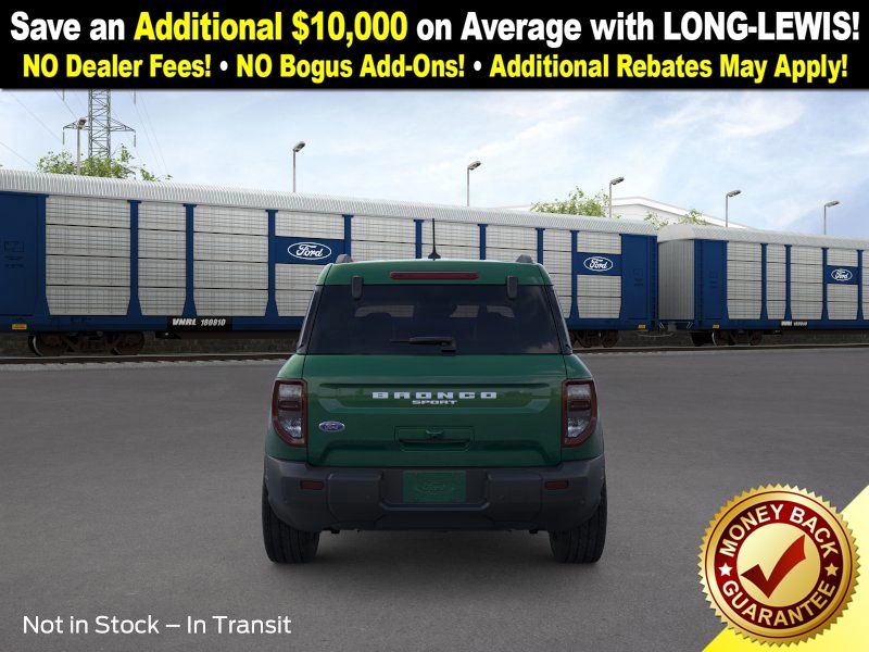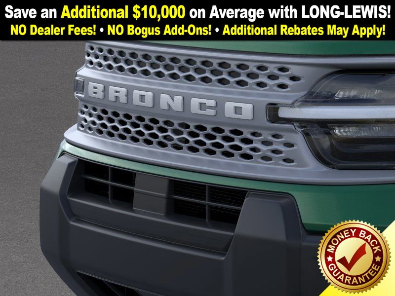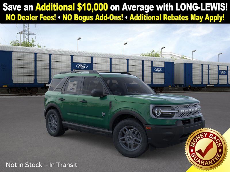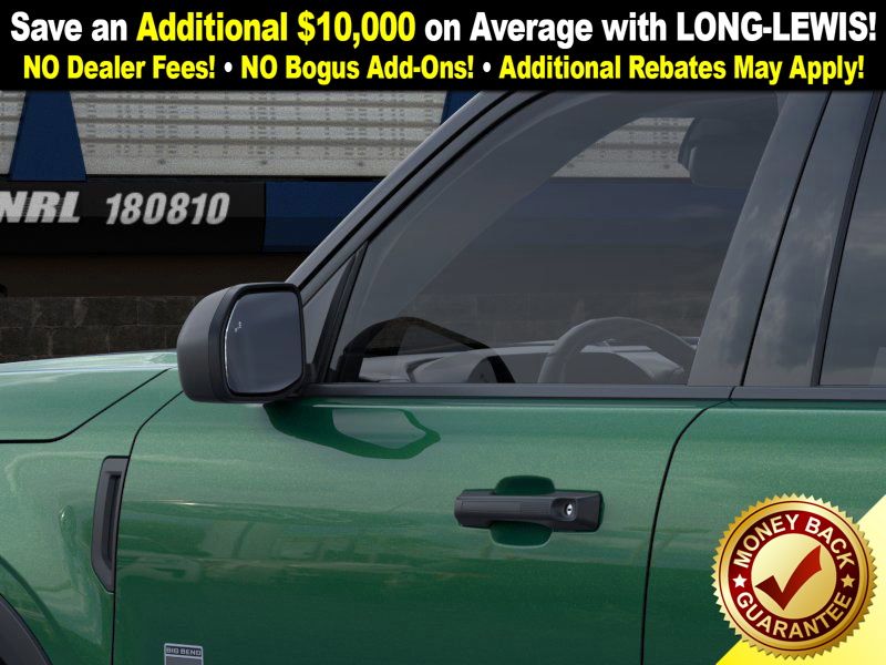 Eruption Green Metallic 2025 Ford Bronco Sport Big Bend NFT 4WD 8-Speed Automatic 1.5L EcoBoost 4-Wheel Disc Brakes, 6 Speakers, ABS brakes, Air Conditioning, Alloy wheels, AM/FM radio: SiriusXM, AM/FM Stereo, Auto High-beam Headlights, Automatic temperature control, Brake assist, Cloth w/Easy-to-Clean Front Bucket Seats, Compass, Delay-off headlights, Driver door bin, Driver vanity mirror, Dual front impact airbags, Dual front side impact airbags, Electronic Stability Control, Emergency communication system: SYNC 4 911 Assist, Four wheel independent suspension, Front anti-roll bar, Front Bucket Seats, Front Center Armrest, Front License Plate Bracket, Front reading lights, Fully automatic headlights, Heated door mirrors, Illuminated entry, Knee airbag, Low tire pressure warning, Occupant sensing airbag, Outside temperature display, Overhead airbag, Overhead console, Panic alarm, Passenger door bin, Passenger vanity mirror, Power door mirrors, Power steering, Power windows, Radio data system, Rear anti-roll bar, Rear Parking Sensors, Rear reading lights, Rear seat center armrest, Rear window defroster, Rear window wiper, Remote keyless entry, Security system, SiriusXM, Speed control, Speed-sensing steering, Speed-Sensitive Wipers, Split folding rear seat, Steering wheel mounted audio controls, SYNC 4 w/Enhanced Voice Recognition, Tachometer, Telescoping steering wheel, Tilt steering wheel, Traction control, Trip computer, Variably intermittent wipers, Wheels: 17" Carbonized Gray Painted Aluminum, Wheels: 17" Carbonized Gray-Painted Aluminum.