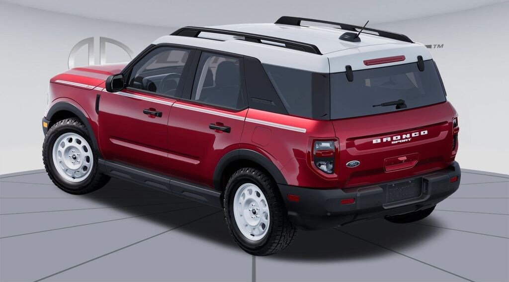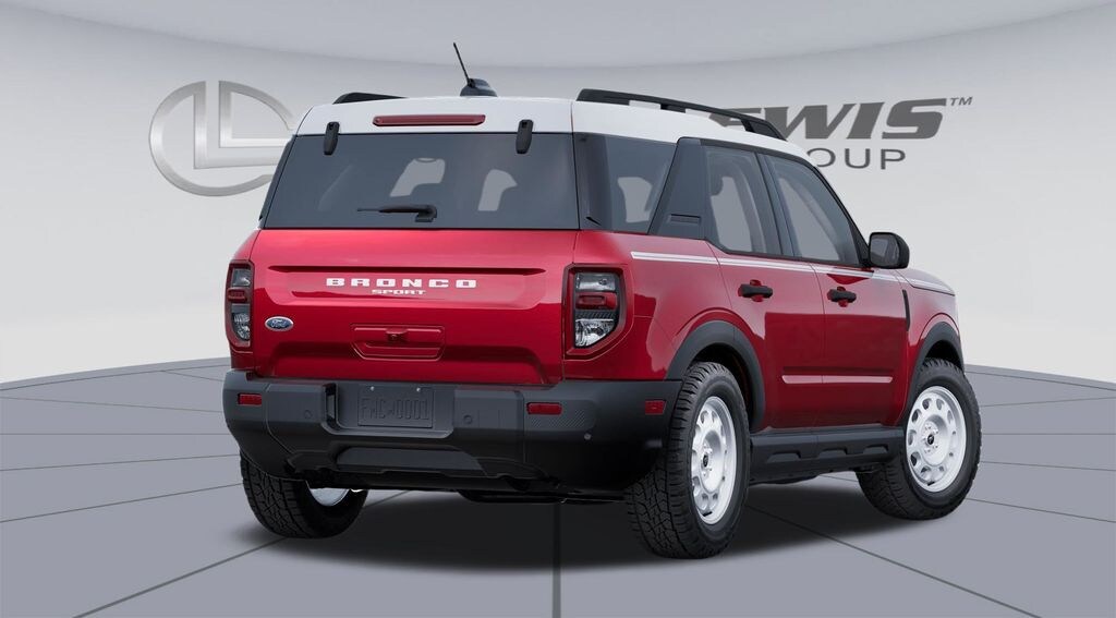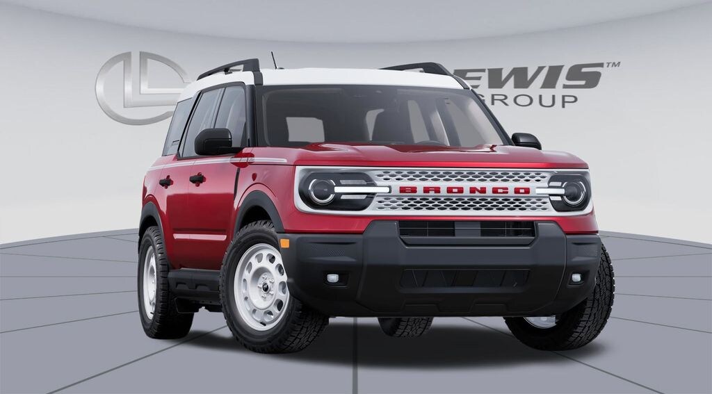 Ruby Red Metallic Tinted Clearcoat 2025 Ford Bronco Sport Heritage fctp 4WD 8-Speed Automatic 1.5L EcoBoost 4-Wheel Disc Brakes, 6 Speakers, ABS brakes, Air Conditioning, Alloy wheels, AM/FM radio: SiriusXM, AM/FM Stereo, Auto High-beam Headlights, Automatic temperature control, Brake assist, Compass, Convenience Package, Delay-off headlights, Driver door bin, Driver vanity mirror, Dual front impact airbags, Dual front side impact airbags, Electronic Stability Control, Emergency communication system: SYNC 4 911 Assist, Equipment Group 250A, Four wheel independent suspension, Front anti-roll bar, Front Bucket Seats, Front Center Armrest, Front Driver/Passenger Seat Back Map Pockets, Front reading lights, Fully automatic headlights, Heated 8-Way Power Driver's Seat, Heated door mirrors, Illuminated entry, Knee airbag, LED Fog Lamps, Low tire pressure warning, Occupant sensing airbag, Outside temperature display, Overhead airbag, Overhead console, Panic alarm, Passenger door bin, Passenger vanity mirror, Plaid Cloth Front Bucket Seats, Power door mirrors, Power steering, Power windows, Premium Wrapped Steering Wheel, Radio data system, Rear anti-roll bar, Rear Parking Sensors, Rear reading lights, Rear seat center armrest, Rear window defroster, Rear window wiper, Remote keyless entry, Security system, SiriusXM, Speed control, Speed-sensing steering, Speed-Sensitive Wipers, Split folding rear seat, Steering wheel mounted audio controls, SYNC 4 w/Enhanced Voice Recognition, Tachometer, Telescoping steering wheel, Tilt steering wheel, Traction control, Trip computer, Universal Garage Door Opener (UGDO), Variably intermittent wipers, Wheels: 17" Oxford White-Painted Aluminum.