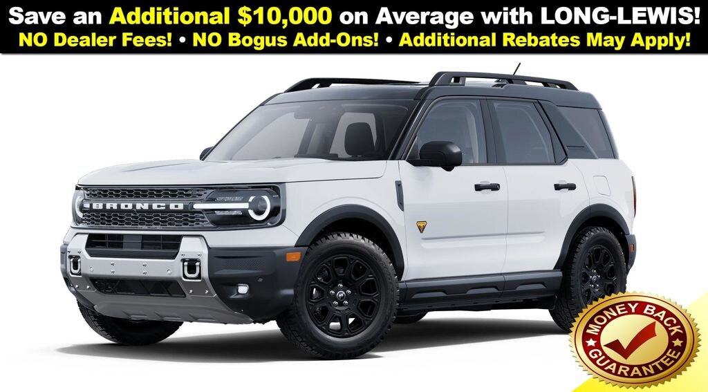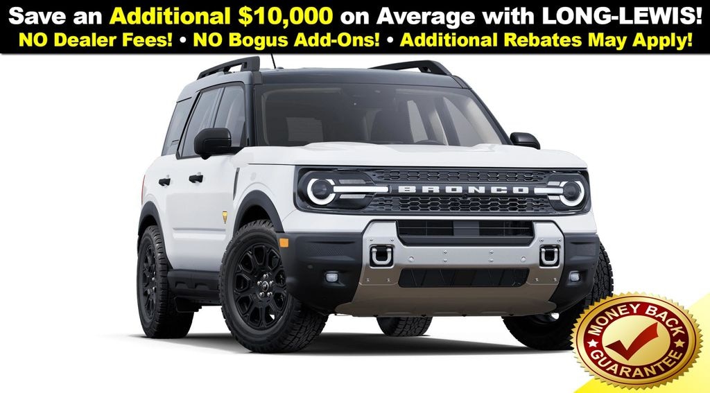 Dealer Discount of $2,292 off MSRP Priced below KBB Fair Purchase Price! Oxford White 2025 Ford Bronco Sport Badlands 4WD 8-Speed Automatic EcoBoost 2.0L I4 GTDi DOHC Turbocharged VCT 4-Wheel Disc Brakes, 6 Speakers, ABS brakes, Air Conditioning, Alloy wheels, AM/FM radio: SiriusXM, AM/FM Stereo, Auto High-beam Headlights, Auto-dimming Rear-View mirror, Automatic temperature control, B&O Sound System by Bang & Olufsen, Badlands Tech Package, Brake assist, Compass, Connected Navigation, Delay-off headlights, Driver door bin, Driver vanity mirror, Dual front impact airbags, Dual front side impact airbags, Electronic Stability Control, Emergency communication system: SYNC 4 911 Assist, Four wheel independent suspension, Front anti-roll bar, Front Bucket Seats, Front Center Armrest, Front fog lights, Front License Plate Bracket, Front reading lights, Fully automatic headlights, Garage door transmitter, HD Radio, Heated door mirrors, Heated front seats, Heated steering wheel, Illuminated entry, Knee airbag, Leather Trimmed Front Bucket Seats, Low tire pressure warning, Memory seat, Occupant sensing airbag, Outside temperature display, Overhead airbag, Overhead console, Panic alarm, Passenger door bin, Passenger vanity mirror, Power door mirrors, Power driver seat, Power Moonroof, Power passenger seat, Power steering, Power windows, Radio data system, Rear anti-roll bar, Rear reading lights, Rear seat center armrest, Rear window defroster, Rear window wiper, Remote keyless entry, Security system, SiriusXM, Speed control, Speed-sensing steering, Speed-Sensitive Wipers, Split folding rear seat, Steering wheel mounted audio controls, SYNC 4 w/Enhanced Voice Recognition, Tachometer, Telescoping steering wheel, Tilt steering wheel, Traction control, Trip computer, Variably intermittent wipers, Wheels: 17" Matte Black-Painted Aluminum.