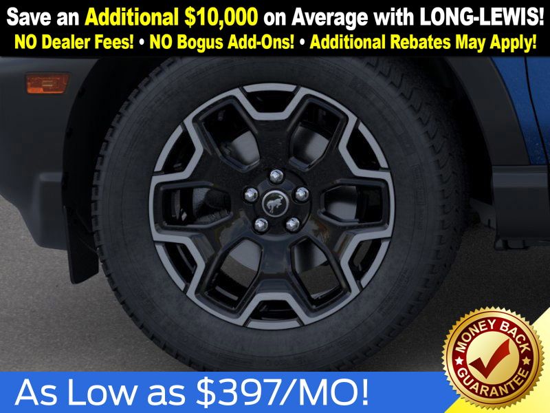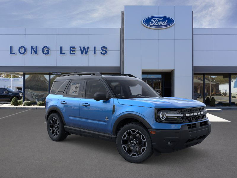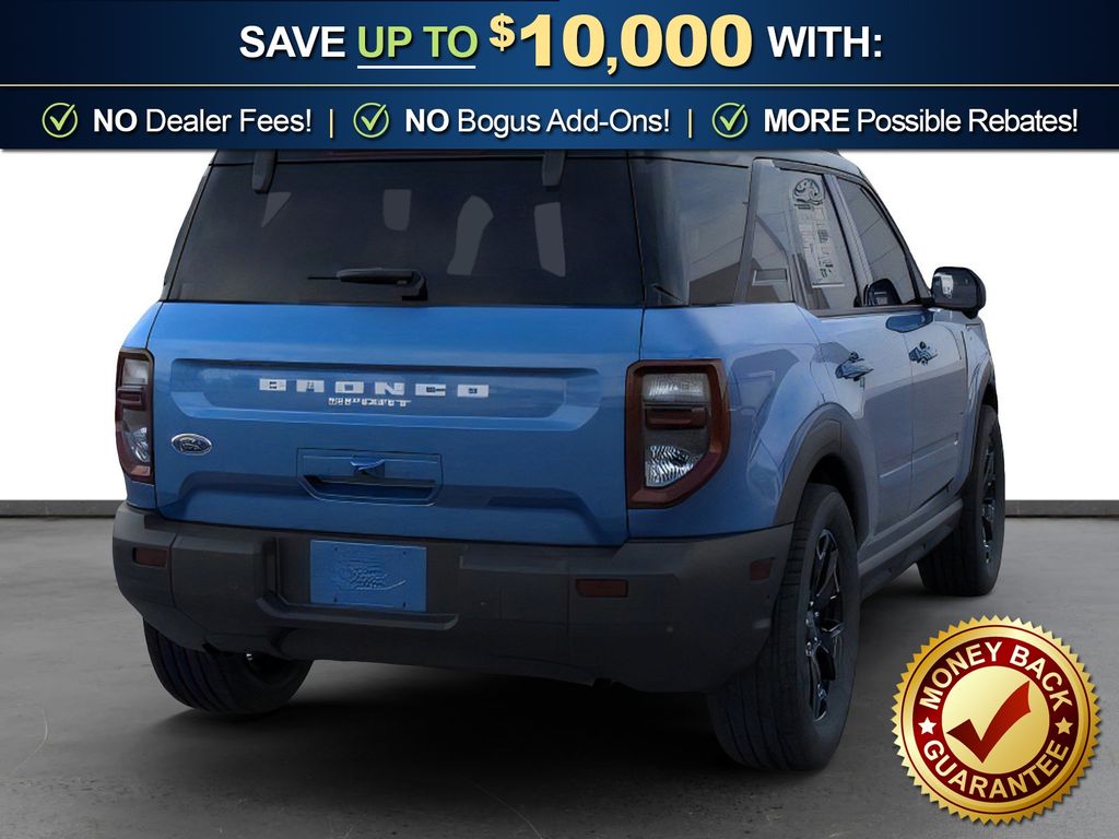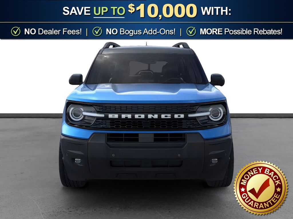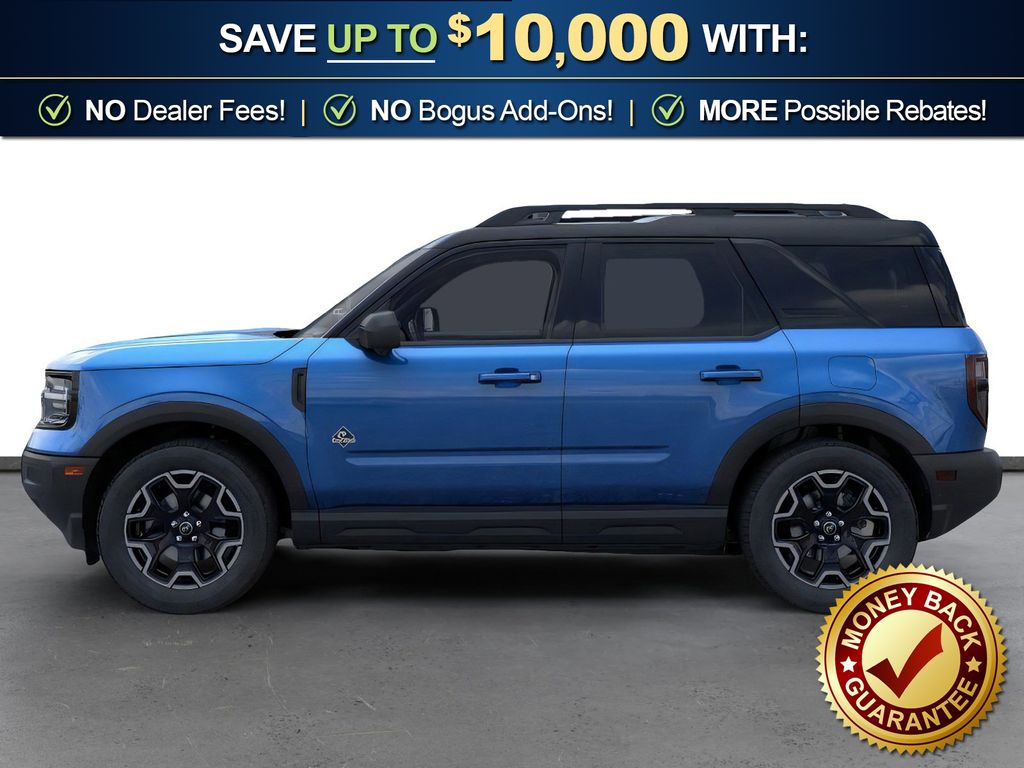 Velocity Blue Metallic 2025 Ford Bronco Sport Outer Banks fctp 4WD 8-Speed Automatic 1.5L EcoBoost 360-Degree Camera w/Trail & Split View, 4-Wheel Disc Brakes, 6 Speakers, ABS brakes, Air Conditioning, Alloy wheels, AM/FM radio: SiriusXM, AM/FM Stereo, Auto High-beam Headlights, Auto-dimming Rear-View mirror, Automatic temperature control, B&O Sound System by Bang & Olufsen, Brake assist, Compass, Connected Navigation, Delay-off headlights, Driver door bin, Driver vanity mirror, Dual front impact airbags, Dual front side impact airbags, Electronic Stability Control, Emergency communication system: SYNC 4 911 Assist, Four wheel independent suspension, Front anti-roll bar, Front Bucket Seats, Front Center Armrest, Front Driver/Passenger Seat Back Map Pockets, Front dual zone A/C, Front fog lights, Front License Plate Bracket, Front Parking Sensors, Front reading lights, Fully automatic headlights, Garage door transmitter, HD Radio, Heated door mirrors, Heated front seats, Heated steering wheel, Illuminated entry, Knee airbag, Low tire pressure warning, Memory seat, Occupant sensing airbag, Outer Banks Tech Package+, Outside temperature display, Overhead airbag, Overhead console, Panic alarm, Passenger door bin, Passenger vanity mirror, Power door mirrors, Power driver seat, Power Moonroof, Power passenger seat, Power steering, Power windows, Premium Trimmed Front Bucket Seats w/Ebony/Roast, Radio data system, Rain sensing wipers, Rear anti-roll bar, Rear Parking Sensors, Rear reading lights, Rear seat center armrest, Rear window defroster, Rear window wiper, Remote keyless entry, Reverse Brake Assist, Security system, SiriusXM, Speed control, Speed-sensing steering, Speed-Sensitive Wipers, Split folding rear seat, Steering wheel mounted audio controls, SYNC 4 w/Enhanced Voice Recognition, Tachometer, Telescoping steering wheel, Tilt steering wheel, Traction control, Trip computer, Variably intermittent wipers, Wheels: 18" Ebony Black-Painted Aluminum.