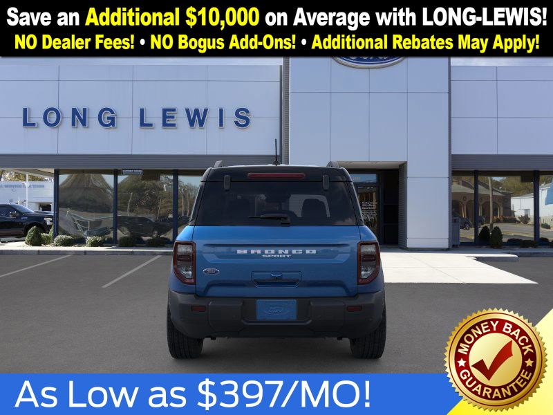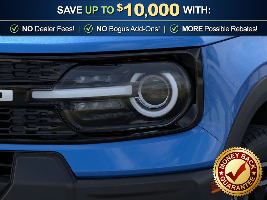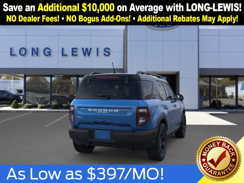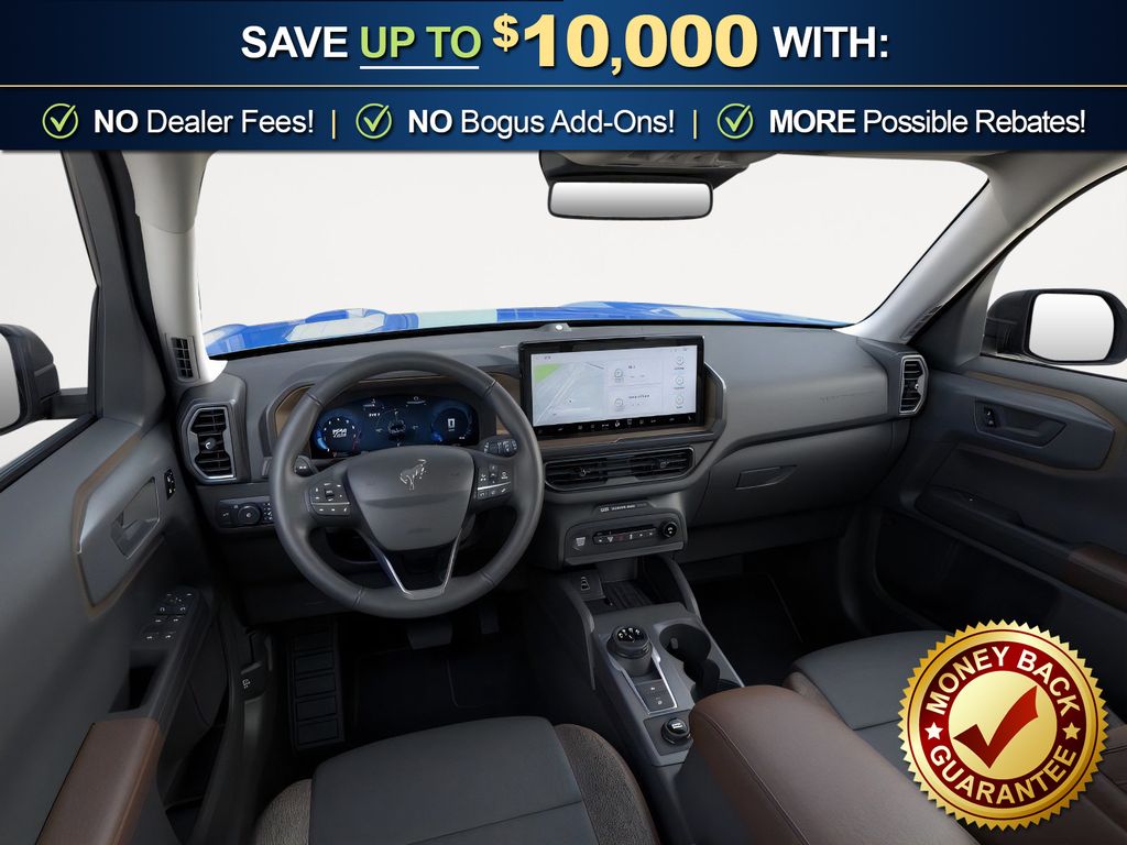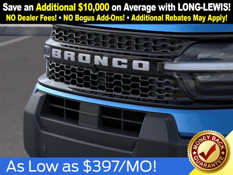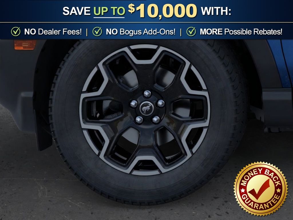 Velocity Blue Metallic 2025 Ford Bronco Sport Outer Banks fctp 4WD 8-Speed Automatic 1.5L EcoBoost 360-Degree Camera w/Trail & Split View, 4-Wheel Disc Brakes, 6 Speakers, ABS brakes, Air Conditioning, Alloy wheels, AM/FM radio: SiriusXM, AM/FM Stereo, Auto High-beam Headlights, Auto-dimming Rear-View mirror, Automatic temperature control, B&O Sound System by Bang & Olufsen, Brake assist, Compass, Connected Navigation, Delay-off headlights, Driver door bin, Driver vanity mirror, Dual front impact airbags, Dual front side impact airbags, Electronic Stability Control, Emergency communication system: SYNC 4 911 Assist, Four wheel independent suspension, Front anti-roll bar, Front Bucket Seats, Front Center Armrest, Front Driver/Passenger Seat Back Map Pockets, Front dual zone A/C, Front fog lights, Front License Plate Bracket, Front Parking Sensors, Front reading lights, Fully automatic headlights, Garage door transmitter, HD Radio, Heated door mirrors, Heated front seats, Heated steering wheel, Illuminated entry, Knee airbag, Low tire pressure warning, Memory seat, Occupant sensing airbag, Outer Banks Tech Package+, Outside temperature display, Overhead airbag, Overhead console, Panic alarm, Passenger door bin, Passenger vanity mirror, Power door mirrors, Power driver seat, Power Moonroof, Power passenger seat, Power steering, Power windows, Premium Trimmed Front Bucket Seats w/Ebony/Roast, Radio data system, Rain sensing wipers, Rear anti-roll bar, Rear Parking Sensors, Rear reading lights, Rear seat center armrest, Rear window defroster, Rear window wiper, Remote keyless entry, Reverse Brake Assist, Security system, SiriusXM, Speed control, Speed-sensing steering, Speed-Sensitive Wipers, Split folding rear seat, Steering wheel mounted audio controls, SYNC 4 w/Enhanced Voice Recognition, Tachometer, Telescoping steering wheel, Tilt steering wheel, Traction control, Trip computer, Variably intermittent wipers, Wheels: 18" Ebony Black-Painted Aluminum.