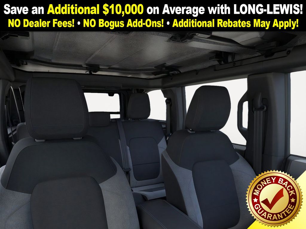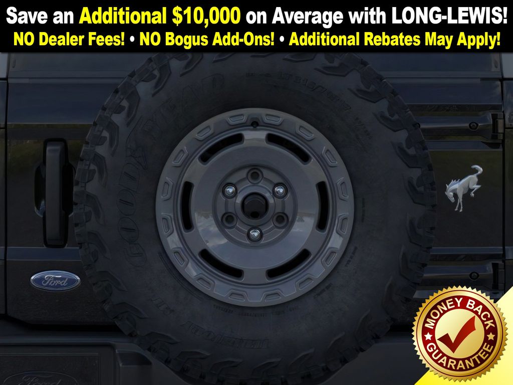 Sasquatch Package (High Clearance Fender Flares, High Clearance Suspension, Position-Sensitive Bilstein Shock Absorbers, and Wheels: 17" Carbonized Gray Painted Aluminum), 4-Wheel Disc Brakes, 7 Speakers, ABS brakes, Air Conditioning, AM/FM radio: SiriusXM with 360L, AM/FM Stereo, Auto High-beam Headlights, Brake assist, Carbonized Gray Molded-In-Color Hard Top, Cloth Bucket Seats, Compass, Delay-off headlights, Driver door bin, Driver vanity mirror, Dual front impact airbags, Dual front side impact airbags, Electronic Stability Control, Emergency communication system: 911 Assist, Exterior Parking Camera Rear, Front anti-roll bar, Front Bucket Seats, Front Center Armrest, Front reading lights, Front wheel independent suspension, Fully automatic headlights, Hard Top Sound Deadening Headliner, Heated door mirrors, Illuminated entry, Integrated roll-over protection, Internet access capable: FordPass Connect, Low tire pressure warning, Occupant sensing airbag, Outside temperature display, Overhead airbag, Overhead console, Panic alarm, Passenger door bin, Passenger vanity mirror, Power door mirrors, Power steering, Power windows, Radio data system, Rear-Window Defroster & Washer, Remote keyless entry, Security system, SiriusXM w/360L, Speed control, Split folding rear seat, Steering wheel mounted audio controls, SYNC 4, Tachometer, Telescoping steering wheel, Tilt steering wheel, Traction control, Trip computer, Variably intermittent wipers, and Wheels: 16" Bright Polished Silver-Painted Steel. Price includes: $1000 - Final Days Mega Bonus Cash. Exp. 01/02/2026 $2000 - Retail Bonus Cash. Exp. 01/05/2026