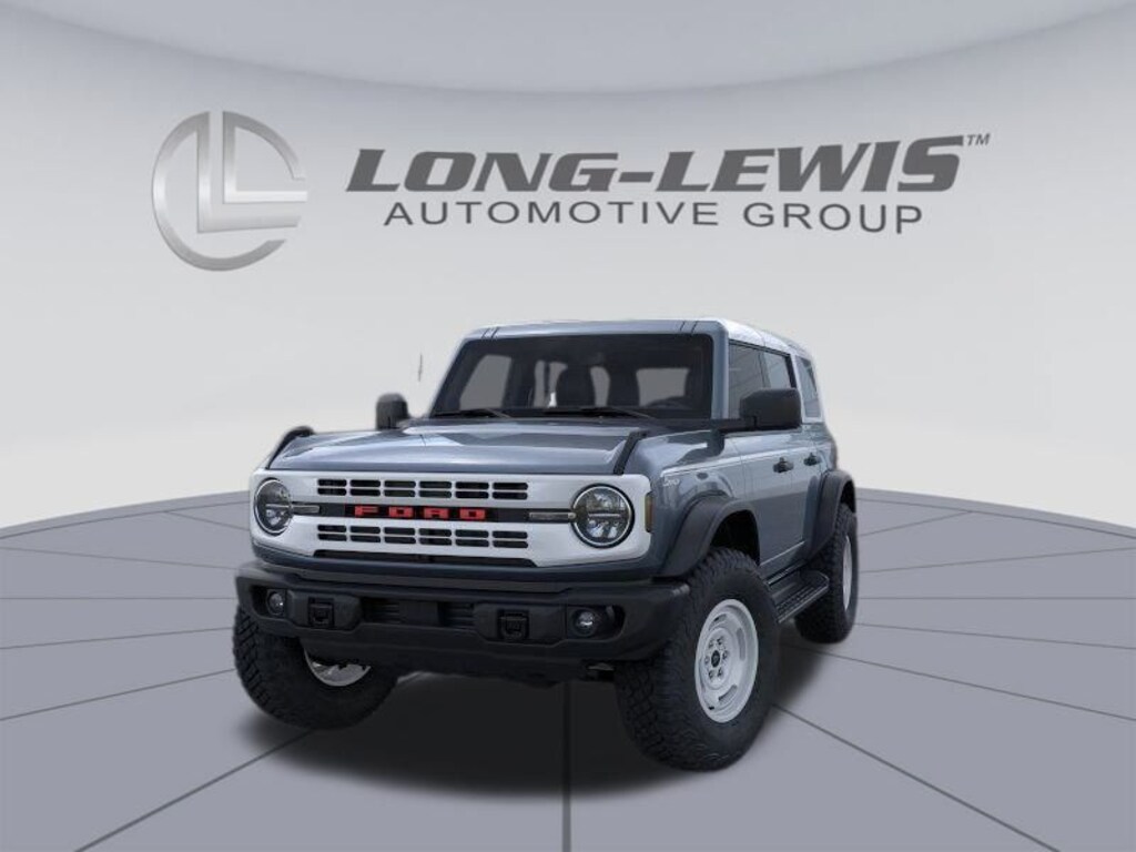 Azure Gray Metallic Tri-Coat 2025 Ford Bronco Heritage Edition 4WD 10-Speed Automatic 2.7L EcoBoost V6 4-Wheel Disc Brakes, 7 Speakers, ABS brakes, Air Conditioning, Alloy wheels, AM/FM radio: SiriusXM with 360L, AM/FM Stereo, Auto High-beam Headlights, Auto-dimming Rear-View mirror, Automatic temperature control, Brake assist, Compass, Connected Navigation, Convertible HardTop, Convertible roof lining, Delay-off headlights, Driver door bin, Driver vanity mirror, Dual front impact airbags, Dual front side impact airbags, Electronic Stability Control, Emergency communication system: 911 Assist, Exterior Parking Camera Rear, Front anti-roll bar, Front Bucket Seats, Front Center Armrest, Front dual zone A/C, Front fog lights, Front reading lights, Front wheel independent suspension, Fully automatic headlights, Glass rear window, Heated door mirrors, Heated front seats, Heated steering wheel, Illuminated entry, Integrated roll-over protection, Leather Shift Knob, Low tire pressure warning, Navigation system: Connected Navigation, Occupant sensing airbag, Outside temperature display, Overhead airbag, Overhead console, Panic alarm, Passenger door bin, Passenger vanity mirror, Plaid Cloth Front Heated Bucket Seats, Power door mirrors, Power steering, Power windows, Radio data system, Rear window defroster, Rear window wiper, Remote keyless entry, Security system, SiriusXM w/360L, Speed control, Split folding rear seat, Steering wheel mounted audio controls, SYNC 4, Tachometer, Telescoping steering wheel, Tilt steering wheel, Traction control, Trip computer, Variably intermittent wipers, Wheels: 17" Unique White.