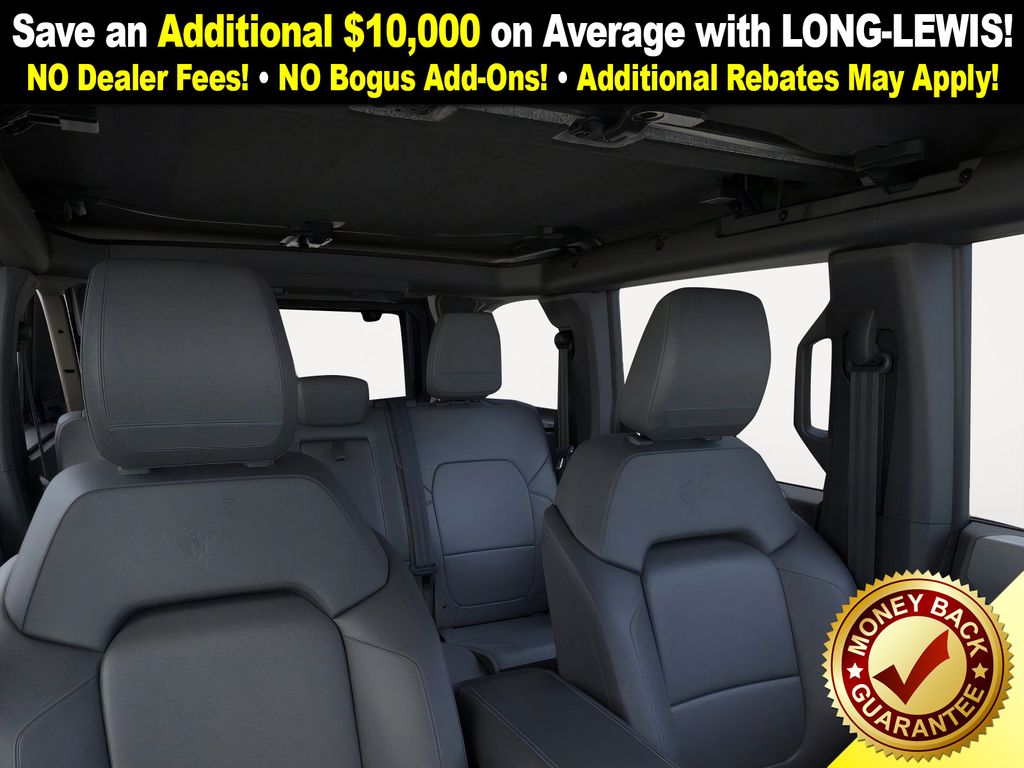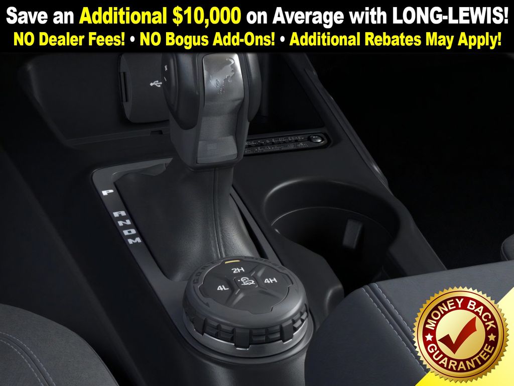 4-Wheel Disc Brakes, 4.46 Axle Ratio, 7 Speakers, ABS brakes, Air Conditioning, Alloy wheels, AM/FM radio: SiriusXM with 360L, AM/FM Stereo, Auto High-beam Headlights, Brake assist, Carbonized Gray Molded-In-Color Hard Top, Cloth Bucket Seats, Compass, Delay-off headlights, Driver door bin, Driver vanity mirror, Dual front impact airbags, Dual front side impact airbags, Electronic Stability Control, Emergency communication system: 911 Assist, Exterior Parking Camera Rear, Front anti-roll bar, Front Bucket Seats, Front Center Armrest, Front reading lights, Front wheel independent suspension, Fully automatic headlights, Hard Top Sound Deadening Headliner, Heated door mirrors, Illuminated entry, Integrated roll-over protection, Internet access capable: FordPass Connect, Leather Shift Knob, Low tire pressure warning, Occupant sensing airbag, Outside temperature display, Overhead airbag, Overhead console, Panic alarm, Passenger door bin, Passenger vanity mirror, Power door mirrors, Power steering, Power windows, Radio data system, Rear-Window Defroster & Washer, Remote keyless entry, Security system, SiriusXM w/360L, Speed control, Split folding rear seat, Steering wheel mounted audio controls, SYNC 4, Tachometer, Telescoping steering wheel, Tilt steering wheel, Traction control, Trip computer, Variably intermittent wipers, and Wheels: 17" Carbonized Gray-Painted Aluminum.