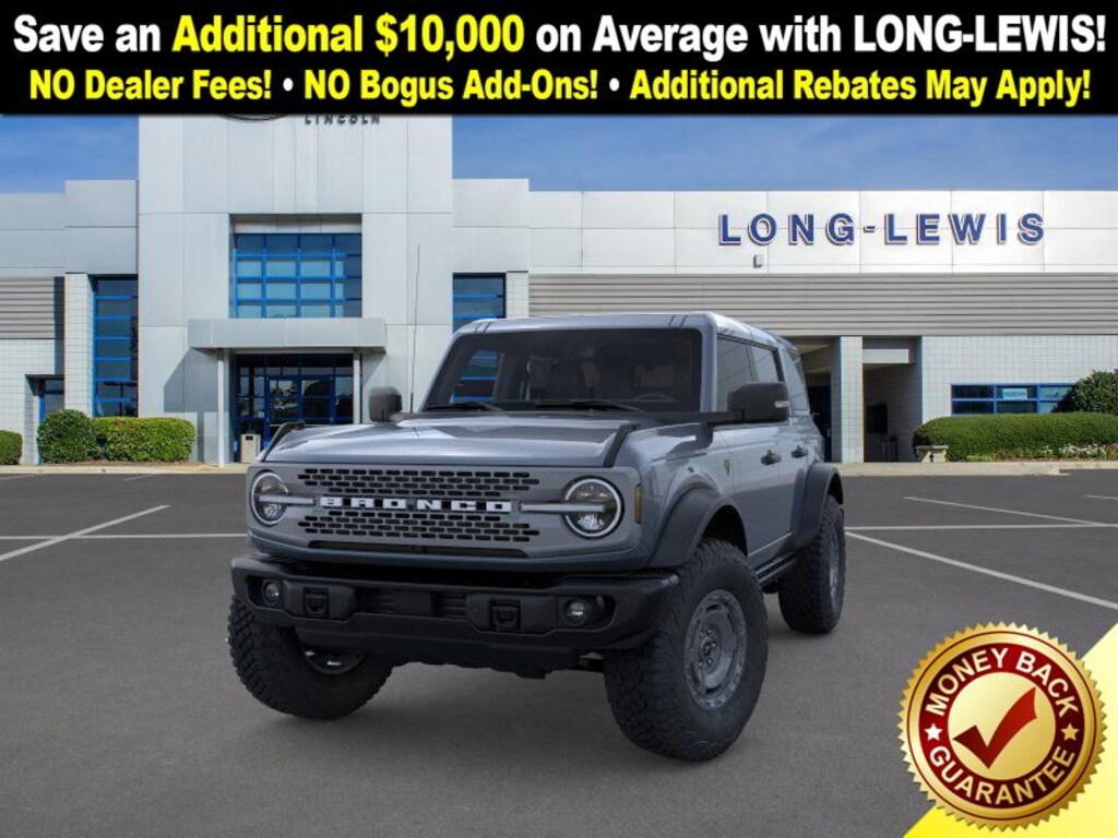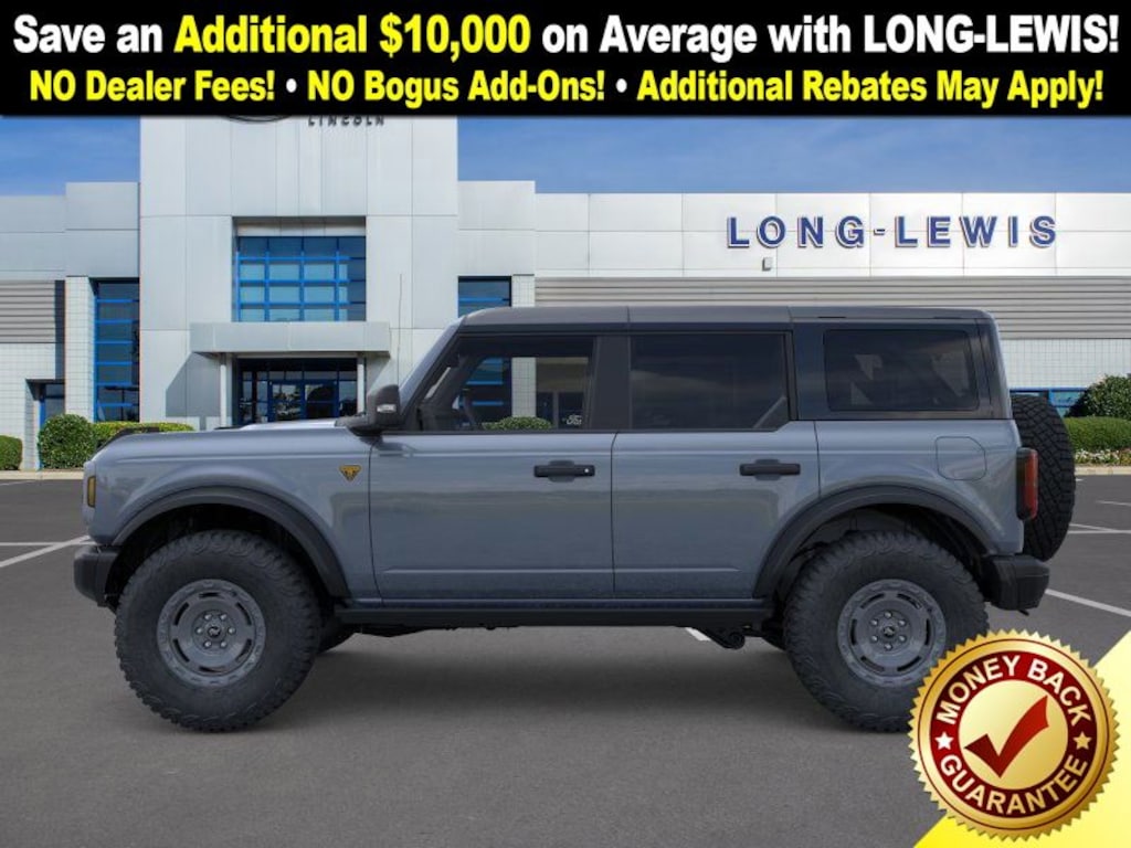 Dealer Discount of $3,810 off MSRP Azure Gray Metallic Tri-Coat 2025 Ford Bronco Badlands NFT 4WD 10-Speed Automatic 2.7L EcoBoost V6 4-Wheel Disc Brakes, 7 Speakers, ABS brakes, Air Conditioning, Alloy wheels, AM/FM radio: SiriusXM with 360L, AM/FM Stereo, Auto High-beam Headlights, Auto-dimming Rear-View mirror, Brake assist, Compass, Delay-off headlights, Driver door bin, Driver vanity mirror, Dual front impact airbags, Dual front side impact airbags, Electronic Stability Control, Emergency communication system: 911 Assist, Exterior Parking Camera Rear, Front anti-roll bar, Front Bucket Seats, Front Center Armrest, Front fog lights, Front License Plate Bracket, Front reading lights, Front wheel independent suspension, Fully automatic headlights, Hard Top Sound Deadening Headliner, Heated door mirrors, Heated front seats, Heated steering wheel, High Clearance Fender Flares, High Clearance Suspension, Illuminated entry, Integrated roll-over protection, Leather Shift Knob, Low tire pressure warning, Marine Grade Vinyl Heated Bucket Seats, Occupant sensing airbag, Outside temperature display, Overhead airbag, Overhead console, Panic alarm, Passenger door bin, Passenger vanity mirror, Position-Sensitive Bilstein Shock Absorbers, Power door mirrors, Power steering, Power windows, Radio data system, Rear-Window Defroster & Washer, Remote keyless entry, Sasquatch Package, Security system, Shadow Black Painted Hard Top, SiriusXM w/360L, Speed control, Split folding rear seat, Steering wheel mounted audio controls, SYNC 4, Tachometer, Telescoping steering wheel, Tilt steering wheel, Traction control, Trip computer, Variably intermittent wipers, Voltmeter, Wheels: 17" Carbonized Gray Painted Aluminum, Wheels: 17" Carbonized Gray-Painted Aluminum. Price includes: $2000 - Retail Bonus Cash. Exp. 01/05/2026